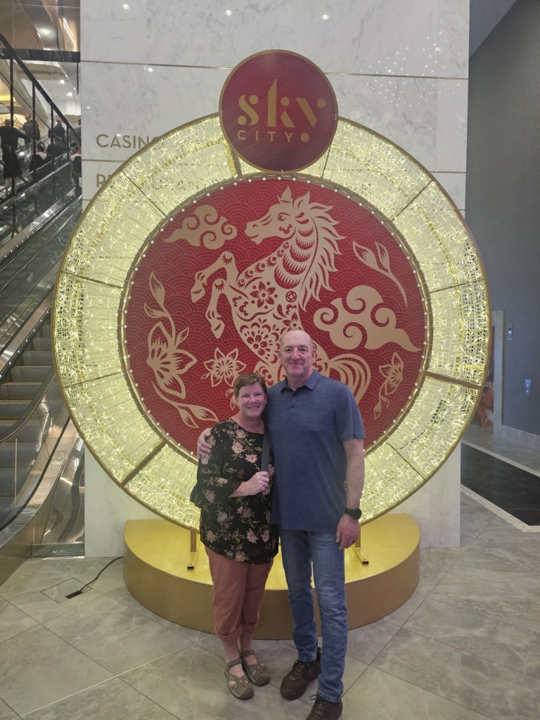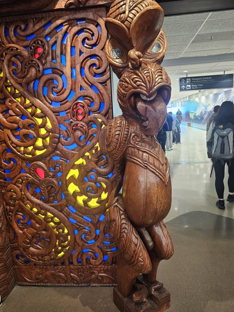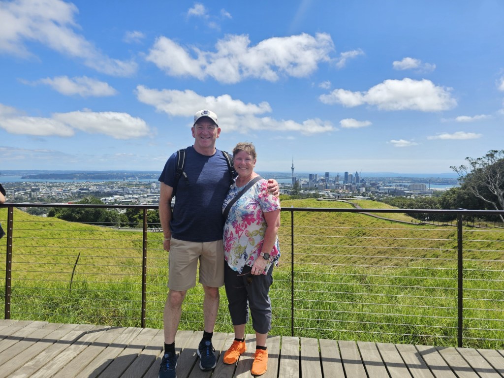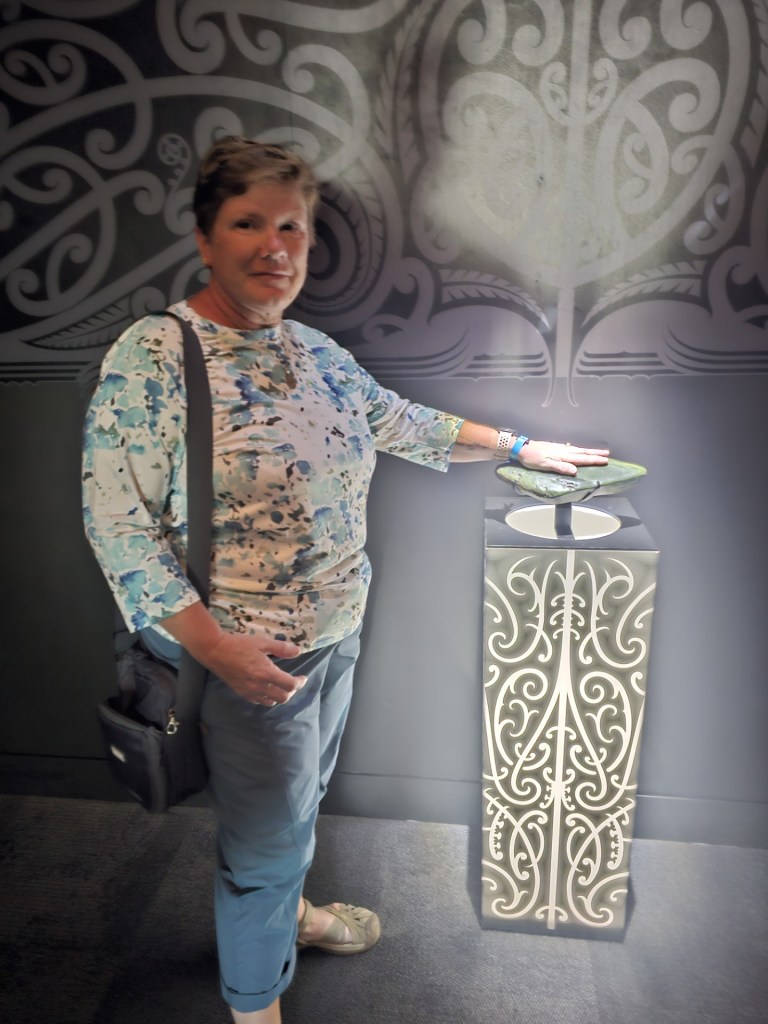Our first stop of the day was at Kuirau Park. This area of Rotorua is where there is a lot of geothermal activity – lots of boiling mud pits and steaming lakes. There is a public park where you can walk around on a board walk amongst the steam and even a place for you to sit down and put your feet and calves into the warm water. I sat pretty close to an inlet pipe which was allowing the natural hot water into the foot pool. I am pretty sensitive on my hands and feet due to chemotherapy in the past. It was pretty hot for me! Rich traded spots with me and it was much better. He felt it was pretty hot too. We sat for about 10-15 minutes and I was amazed at how good my feet and lower legs felt the rest of the day. We then also stopped at another geothermal park called Sulphur Point on the edge of Lake Rotorua. Rotorua is known for its sulphur smell. Tauranga is the port we docked in and Rotorua is the nearby city. Lake Rotorua is a caldera filled with water. The volcano erupted 250,000 years ago. There are 10 lakes in this area caused by volcanoes. There are currently only 2 active volcanoes in all of New Zealand. The last eruption was on White Island in 2019 and 21 people were killed. There are lots of earthquakes in New Zealand. The South Island, especially, has some major fault lines running through it. There are an average of 14-15,000 earthquakes per year in New Zealand. Most are not even noticed. During COVID, New Zealand had one of the lowest mortality rates in the world. They closed their borders for a year. This was horrible on their economy because they deal mostly in tourism.