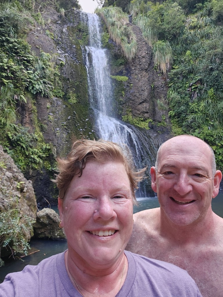 Richie was a principal, so we got some low down on education in New Zealand. Kids start school on their 5th birthday. Literally on the day they turn 5. That makes it a hot mess for that level teacher – having kids that have been in school for months with kids who have been there a day. Ideally, they will go to preschool first, to give them some sort of idea of what school is about. They have preschool available for 3 and 4 year olds for 20 hours a week. If you want them to go longer, the extra time will cost you $4/hr. Primary school is age 5 to 11/12 years old. There are no private primary schools, they are all state funded. Secondary schools are about 5 years and you can go to private or public schools. There are no private secondary (high schools) in Tauranga. Private schools are expensive. They average $30,000/yr and $12,000 a year additional for boarding. Going to the other end of the spectrum, when a New Zealander turns 65 years old, they are automatically put on pension. It is not dependent on the money you earned in your lifetime. Everyone gets the same pension. Each person would get approximately $830 every 2 weeks. You can choose to still work and also get your universal pension. Everyone pays into the ACC tax, which will pay out 80% of your medical bills. All in all, a pretty sound system. We had a really good time traveling through the area and walking through the giant redwoods.