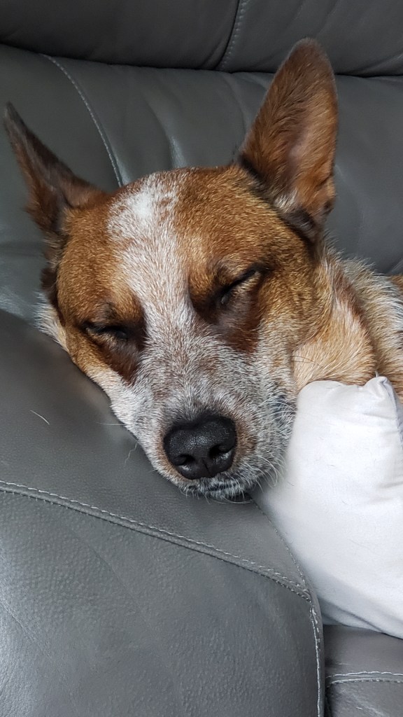 I went for a long walk in the evening with Tallinn, Rich and Lily. I thought for sure that after playing a couple of rounds of a board game, which we do almost every night after dinner (Settlers of Catan), that I would just be spent. I felt pretty tired. Rich and I watched a couple of episodes of Madam Secretary (one of my favorite shows that we are re-watching in anticipation of the last season being released – which it was this week). We went to bed and I read a bit then thought I would sack right out. Rich did…snoring loudly. I woke him up twice to roll him over. No joy. I finally got out of bed and moved to the couch. Even though I was exhausted , the steroids I got in my IV late that morning were doing their thing and not letting me sleep. My mind was going a mile a minute and I couldn’t settle. Tallinn sleeps on my side of the love seat on his dog pad at night after he feels we are asleep. He stays in our room by my bed on the floor for about an hour before padding out to the family room to sleep in a more comfy spot. He hopped down and came over to me on the couch and put his paws on my chest and nuzzled his head into my neck to give me a hug (he loves to do this to his humans – give hugs) and then went back to his spot on the loveseat and sighed loudly. (he has very deep, loud, vocal sighs) It took me awhile to turn off my brain…this is when praying really helps. I had a lot to pray about. Anyhow, Tallinn was thrilled to wake me up earlier than normal this morning to let him out and feed him since I was conveniently right next to him. Still managed to get in my miles last night and this morning.