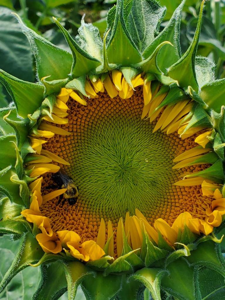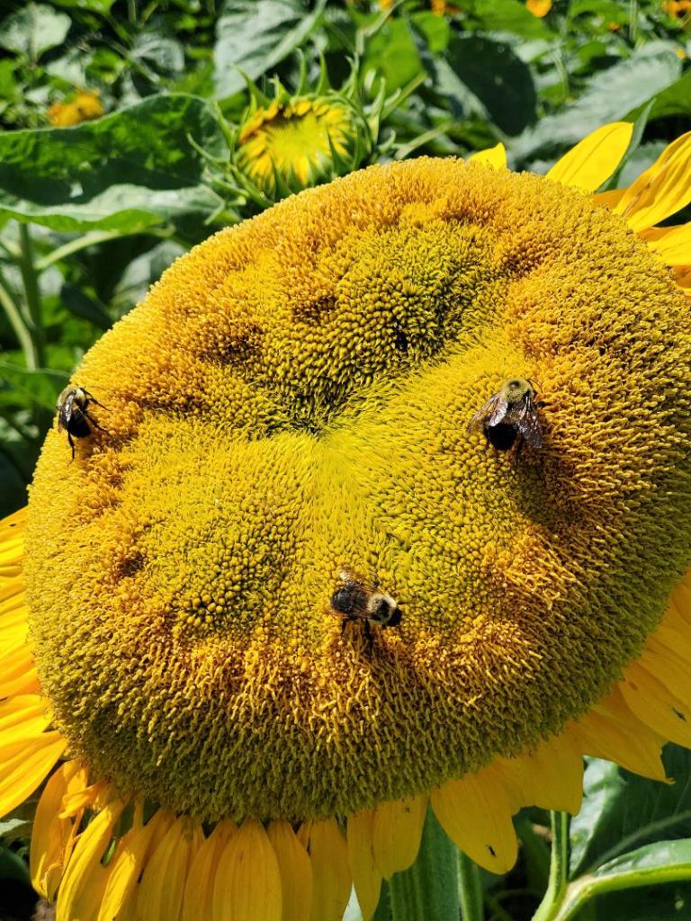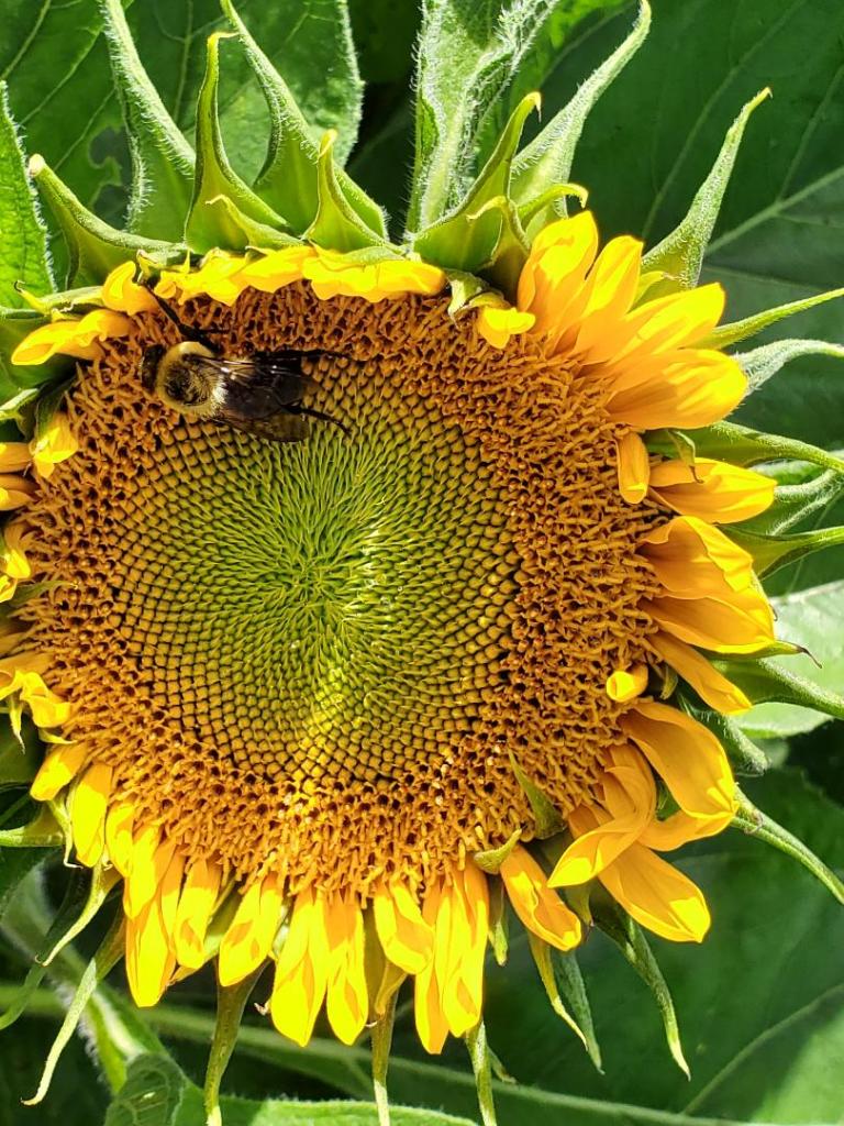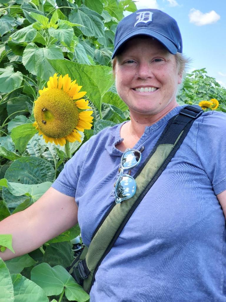 Well, this was NOT where we were last year. This was definitely closer but the photos online where very misleading. The place we went last year and loved was Pam Nelson’s farm in Valley, Nebraska. It was at the beginning to middle of September though….so I am not sure where they are at right now. Lily and I did get a bit of a hike in to get to the sunflowers. There were not many left and they were covered in bees. I think that is cool but Lily is not a big bug or bee lover. We were out and back within the hour. Something else to look forward to in the coming weeks…the real sunflower farms blooming!