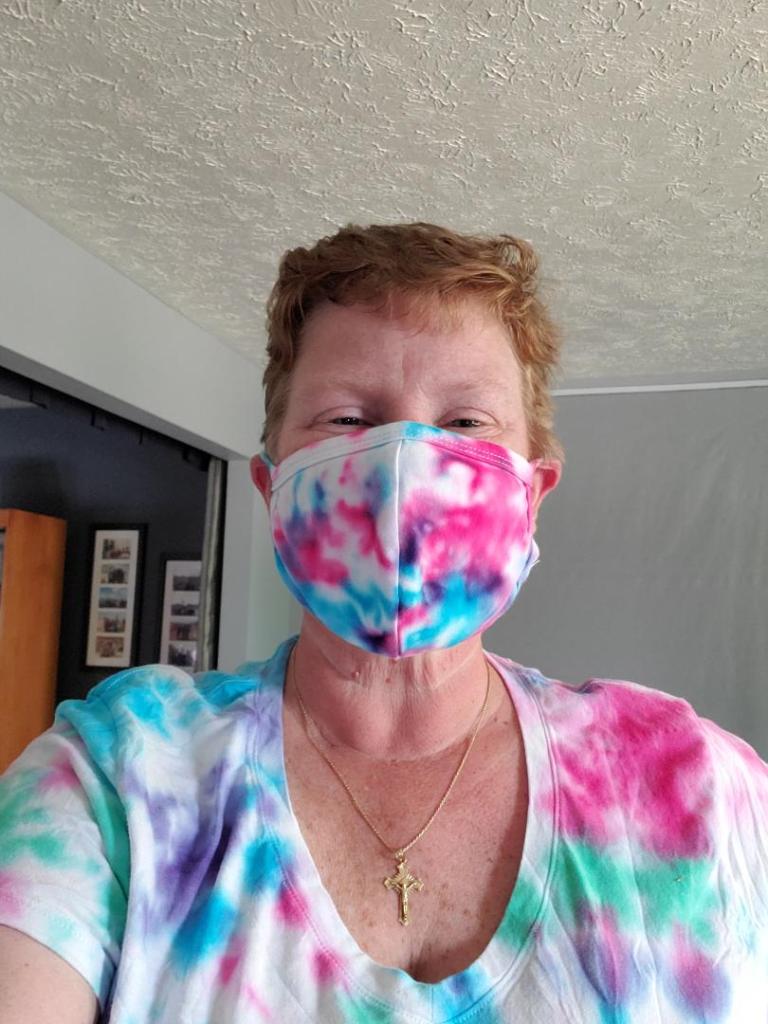 I love to tie-dye, but I agree that it does make quite a mess! Your mask and shirt look great!