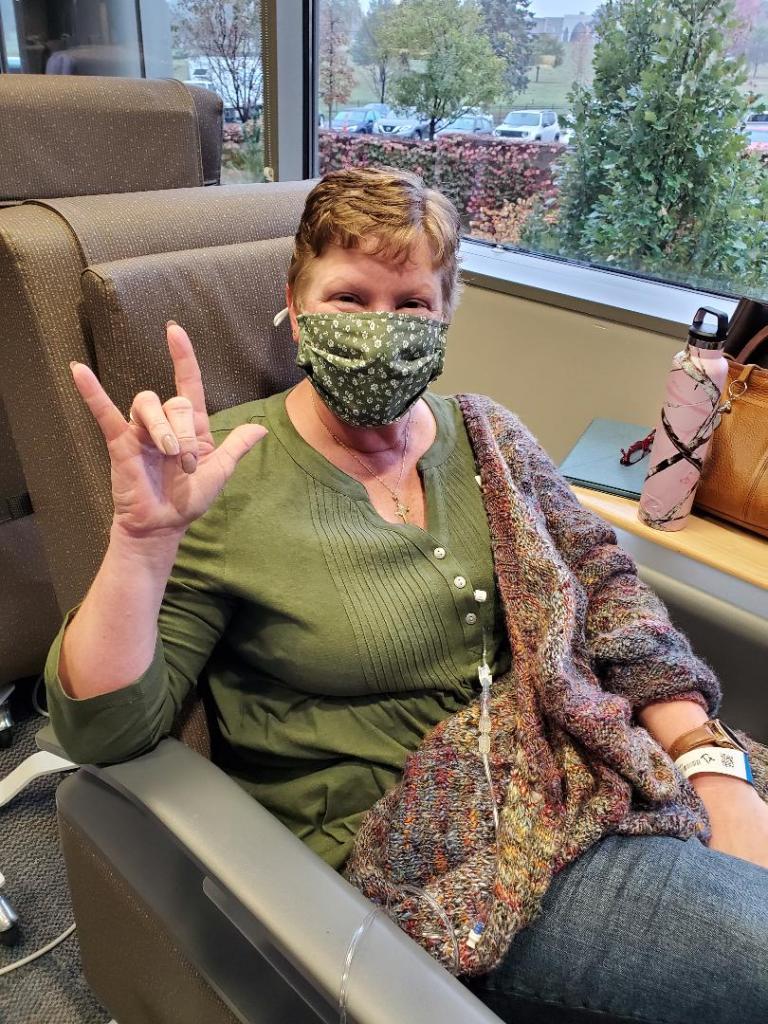 I am trying to play catch up right now! I have had company at my house since October 7th and tried to spend time with them rather than being on my computer too much, so I am behind in everything….blogging, work…life in general. However, I will blog it all out, just not all right at once. I wanted to put up my chemo treatment from this past Thursday, October 22nd. It was a big one…Doxil round #8, my bone medication infusion, Zometa, the IV steriods and anti-emetics, and then a flu shot to top it all off. It was 4 hours but no real side effects other than being a little tired that afternoon. Having company to occupy your mind is helpful! I had a few blisters on my feet this round, so I am starting to get toxic again…but it wasn’t too bad and there was no rash, which is so much harder to deal with. I will be having a echocardiogram on Monday morning to check the status of my heart, as doxil tends to do heart damage along the way if not carefully monitored. I made it to my first HUGE goal since being diagnosed and that was the wedding of my son and daughter-in-law. That will be a separate post (or 4) as it was a wonderful time had by all. Made the top five days of my life.