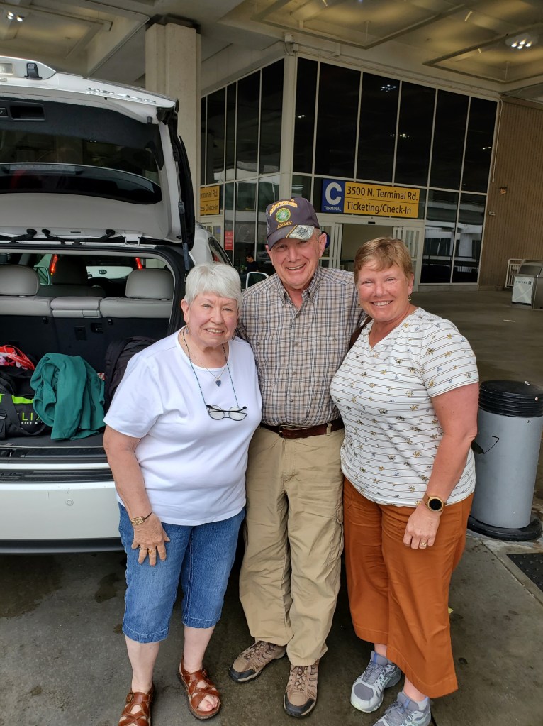 I told you I had been busy! less than 36 hours after my sister left from Omaha, I got on a plane in Omaha and my son, Joe, got on a plane in Kansas City, and we both flew to Houston to surprise my mom for her 75th birthday, which was Tuesday, April 13th. We arrived pretty early in the morning on Monday. My brother, Craig, picked us up and we went over to his house for a little while before he dropped us off at my parents’ house. My mom volunteers at the church on Monday mornings, so Joe and I were able to spend some time with my dad. My dad’s mind has been failing him over the last decade and it was hard to know he would have never known who we were if my brother hadn’t yelled out the truck window that he had “Joe, his grandson, and Cyndi, his daughter” in the truck with him. His eyesight is really going (although for some reason he always gets a clean bill of health from his eye doctor). He is typically pretty quiet, willing to just sit and listen to conversations. However, when he is out walking the loop of his neighborhood, which he does 3-4 times a day, he is pretty chatty….although he has a hard time finding his words now. I know how that is…chemo has done a number on my brain and some days are harder than others. He now wears an ID bracelet with his name and my mom’s name and phone number on it so if he finds himself lost, he can show it to someone. It was very hard to watch him be so lost…even in his own home surroundings this time. I was thankful that Joe was there to also spend some time with him. We definitely surprised my mom and had a great couple of days with her. We flew in on Monday morning and left Wednesday afternoon. It was quick but fun. I always enjoy spending time with Craig and his wife and son as well. I had not flown in over 2 years. The planes I was on were completely full. I double masked for the planes and tried not to touch much…just read my kindle for the 90 minute or so flights. It was a great trip and I am so glad we went!