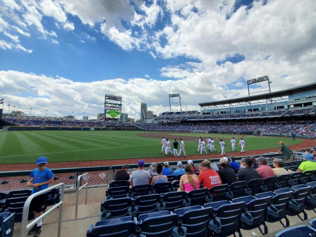 Okay folks, I am playing catch up now! Nothing bad has happened…I have just been out living my best life and got behind on posting here! Here are some pictures from our game at CWS. For those of you not from Omaha, the College World Series of Baseball is played here in Omaha during the last third of the month of June. The top 12 college baseball teams meet together to play in a tournament to see who is crowned the best in college baseball. We ended up going to one of the first days of play. Rich then took a coworker and went to game 3 of the finals and watched the Mississippi State Bulldogs win the national title. The CWS tournament has been played in Omaha since 1950. It was sorely missed last year when it was cancelled due to COVID. We have a huge influx of visitors from the fan base of the teams who come to compete and also just baseball enthusiasts from all over. We had the pleasure of meeting lots of out-of-state visitors at our store looking to buy baseball gear. (They know where to go to get the best deals!) We had hot dogs and dippin’ dots and had a fantastic time cheering these young men on! If you ever get a chance to go, you should! It is such a fabulous time and we try to go to at least one game every year. It is called (appropriately) “The Greatest Show on Dirt.”