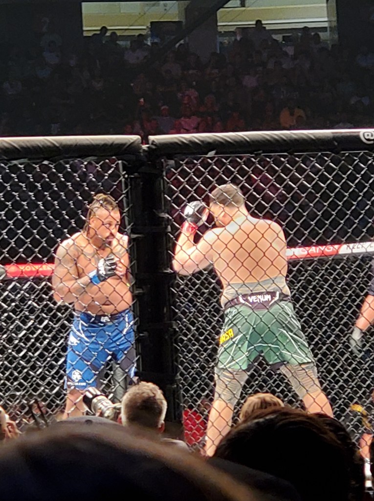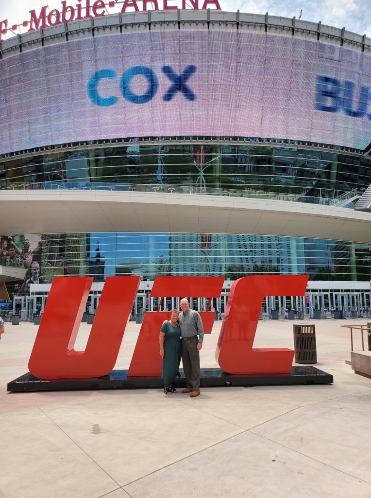 In Feb 2020, for my birthday, Rich got me tickets to go see a UFC event in Lincoln in March. I was pretty sick at the time from the chemo and COVID cancelled the event anyhow. We didn’t get our money back but got a credit. Fastforward a year and we needed to use our credit or lose it. Rich shelled out some extra money and we got tickets for the first open UFC PPV fights in Vegas which were open to the public. This happened to be a huge card….with Conor McGregor fighting Dustin Poirier for a trilogy thriller. UFC 264 was the place to be on Saturday night if you were in Las Vegas….unless of course you were at the Bruno Mars concert or the Garth Brooks concert. So there were 3 big events going on after Vegas had just reopened with live shows and everything. Unfortunately, the state is still paying unemployment to people like taxi drivers. Only 30% of them were working as the others chose to collect $900/week to sit at home. Las Vegas, which is a place that thrives on customer service, was having issues everywhere we turned – hotel service, taxis, food service…everywhere. It was 117 degrees on Saturday….and cooled to 110 as the sun set and we waited in line with hundreds of others to catch rides back to our hotels. 117 degrees….it is a dry heat, I will give you that. But so is an oven or a hairdryer on high heat. It is still hot. We did spend some time in the pool. We stayed at Trump Plaza. The rooms were awesome. The pool felt like bath water but was somewhat refreshing because it was wet. We did a lot of walking….a LOT of people watching….(there is no other place to people watch than Las Vegas on a busy weekend). The fights were amazing. Rich and I had 7th row seats so had a pretty good view of the octagon. For the prelims and the first few main card fights, we sat even closer as the ultra rich folks didn’t come until later. (I don’t understand that at all.) We got there 30 minutes before the fights began so I could walk right up close to the octagon and see the commentators getting ready to broadcast. Little known fact…Bruce Buffer (the announcer on the microphone from the octagon) dances a lot to the walk in music. He also does a series of stretches in the octagon before the first fight. It was pretty neat to see things live and behind the scenes. I did miss being able to hear the commentators but my son, Tim, was filling me in on the main stuff I might have been missing. I have been a UFC fan forever…Tim and I rarely miss watching the fights and listening to MMA podcasts during the week. There were quite a few famous people there watching. President Trump was one of them. Paul Pierce (aka “The Truth”) from the Celtics was there. He is retired now but was one of the Big Three back when the Celtics were great a few years back. We are big fans. He took photos with us. The owners of the Raiders and Patriots football franchises were there as well as some other fighters and Hollywood celebs. This was a bucket list item for me that Rich has helped me check off. On to the next bucket list item….which happens in the next couple of weeks.