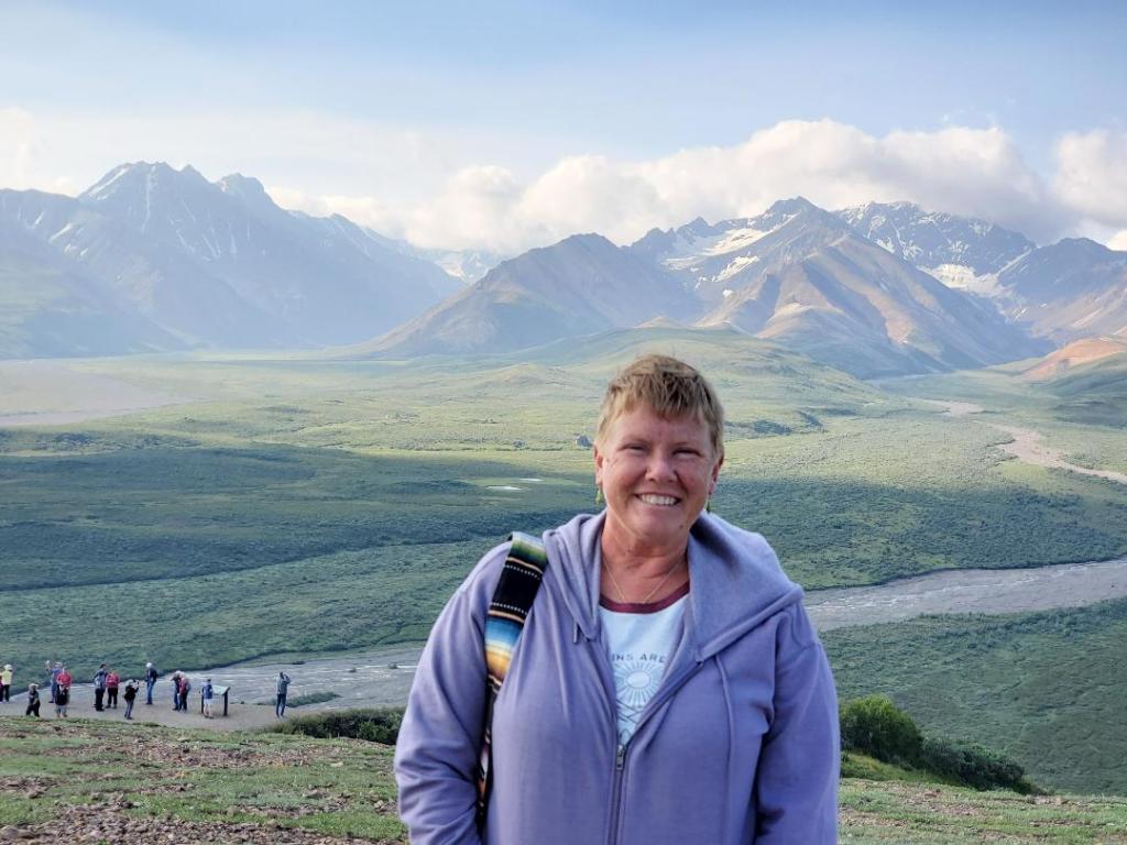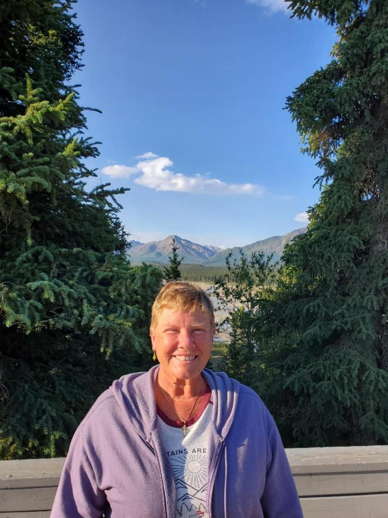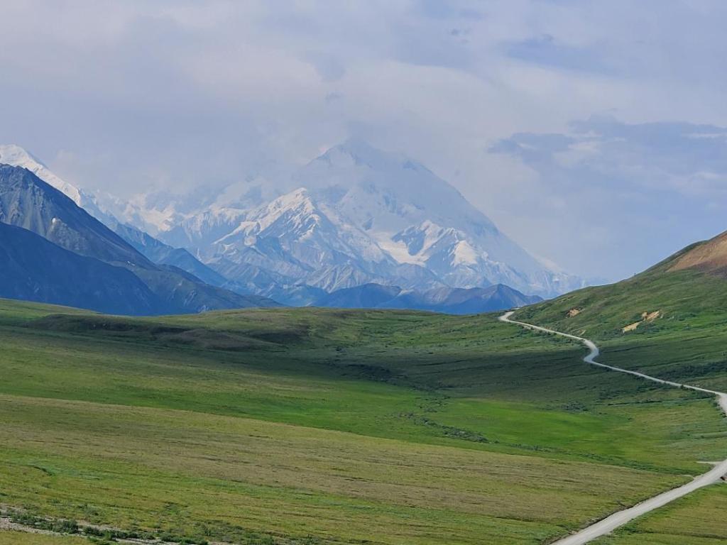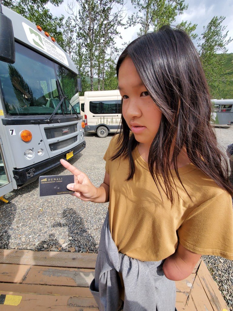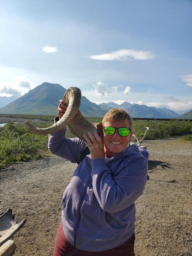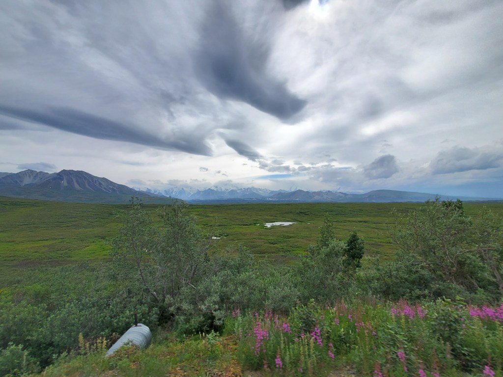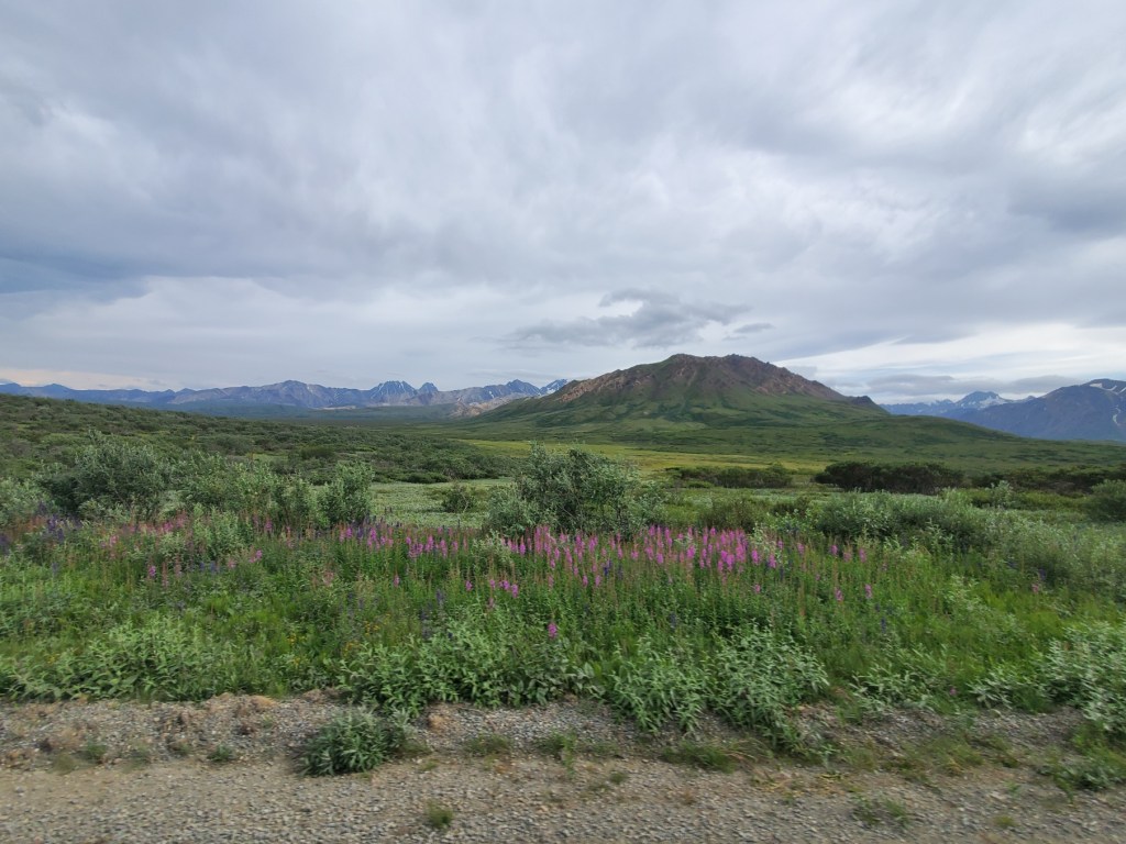Sorry folks! I have been crazy busy trying to catch up at home and even put a short trip in to Colorado…but that’s for another post! Our last full day in Denali was spent on a 13 hour bus tour that took us 92 miles into Denali National Park. It is the furthest you can go on a tour bus and it did not disappoint! I know what you are thinking….how can a 13 hour day on a bus seem like any fun at all? Well, I have to say that God was certainly shining on us that day…not that He doesn’t everyday…but this day was extra special. First off, it wasn’t a school bus. You may laugh but 13 hours on bumpy roads on a school bus sounds kinda miserable to me. We had bucket seats in a school bus shell. Second of all, we had a fabulous driver! His name was Erik. He is originally from Washington state, but lives his winters in Colorado…near the mountains in the cities of Breckenridge, Telluride, etc. Swanky ski towns. During those winters he drives school buses for the local elementary school kids. He had a shirt on that simply said, “Listen to Erik” It was his only rule for the day. Of course a lot of rules can stem from that simple concept – this was not lost on me. I would say that Erik was in his 30’s, and man, does he love his job. First, he told us about his job as a school bus driver in Colorado. He knows each of his student riders by name. He goes to their sporting events and goes to their music concerts. They, in return, sounded like they were enamored with him Erik”. They would organize days where the whole bus would wear their shirts and he would come in and eat lunch in the school cafeteria with them. He had a long school bus-esque rectangular rearview mirror to keep an eye on all of us. We, in turn, could see his face as well. There was a time when we were all ogling at a big grizzly bear that was only a few yards from our bus and he said what was even better than watching the bear was watching all of our faces as WE watched the bear. Erik spends his summers driving tour buses in Denali National Park and he really knows his stuff. He was able to talk about the flora and fauna of Alaska, history, the wildlife, rock and mountain formations, and hiking techniques for those who try to summit Denali. (About 5 years ago they changed the name of Mt. McKinley back to Denali-meaning the ‘great one’). He has climbed Mt. Rainier in Washington state in the hopes of someday getting a chance to hike Denali. So Erik was enthusiastic about what he was sharing with us and he went the extra distance to help each side of the bus get good photos and opportunities to see scenery and wildlife. We were very fortunate that we were able to see Denali that day. The smoke from wildfires were in the air much of the time we were in Alaska, but we had a couple of clear days that we got to see Denali, so we are in the 30% club….because that’s about the percentage of people who get to see her when they come…30%. I would be remiss if I didn’t mention some pretty scary roads we had to traverse in order to get to the lodge at the end of the road. After 15 miles into the park, the farthest you can go in a personal vehicle with a park pass, the road becomes a gravel/dirt road and the further you go, the skinnier it gets. When there are only tour buses and a few park rangers/scientists/road workers, it gets a little dicey…especially if you are doing hairpin turns around the sides of mountains. I was very very very impressed with Erik’s ability to drive that bus, even if my stomach dropped to my knees a few times when I was sitting on a ledge that was a sheer cliff drop off.