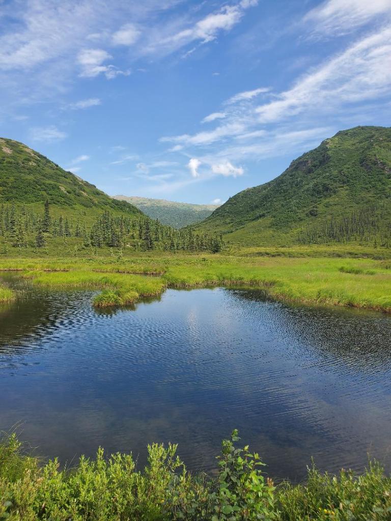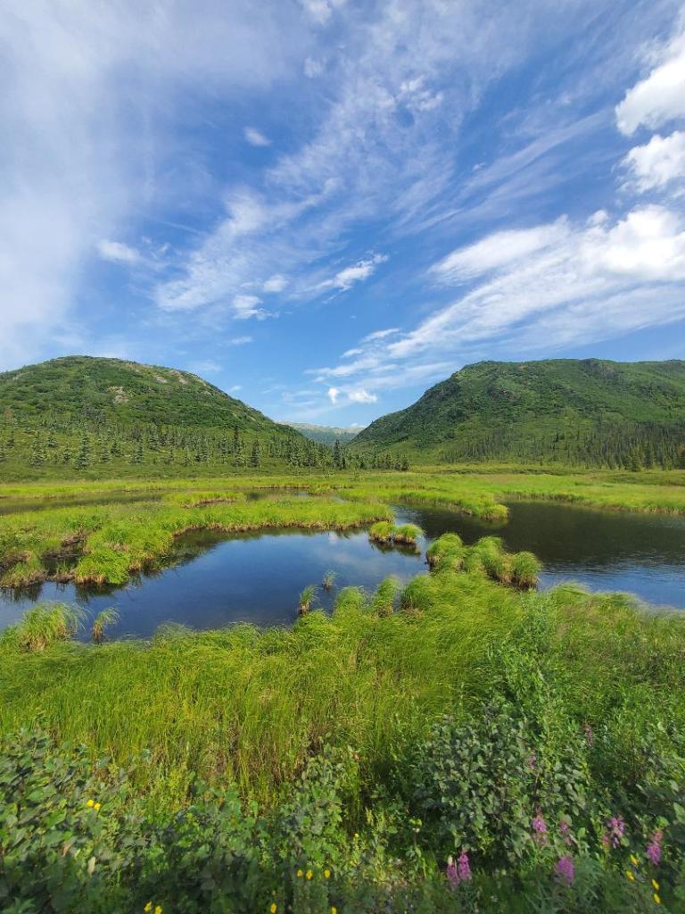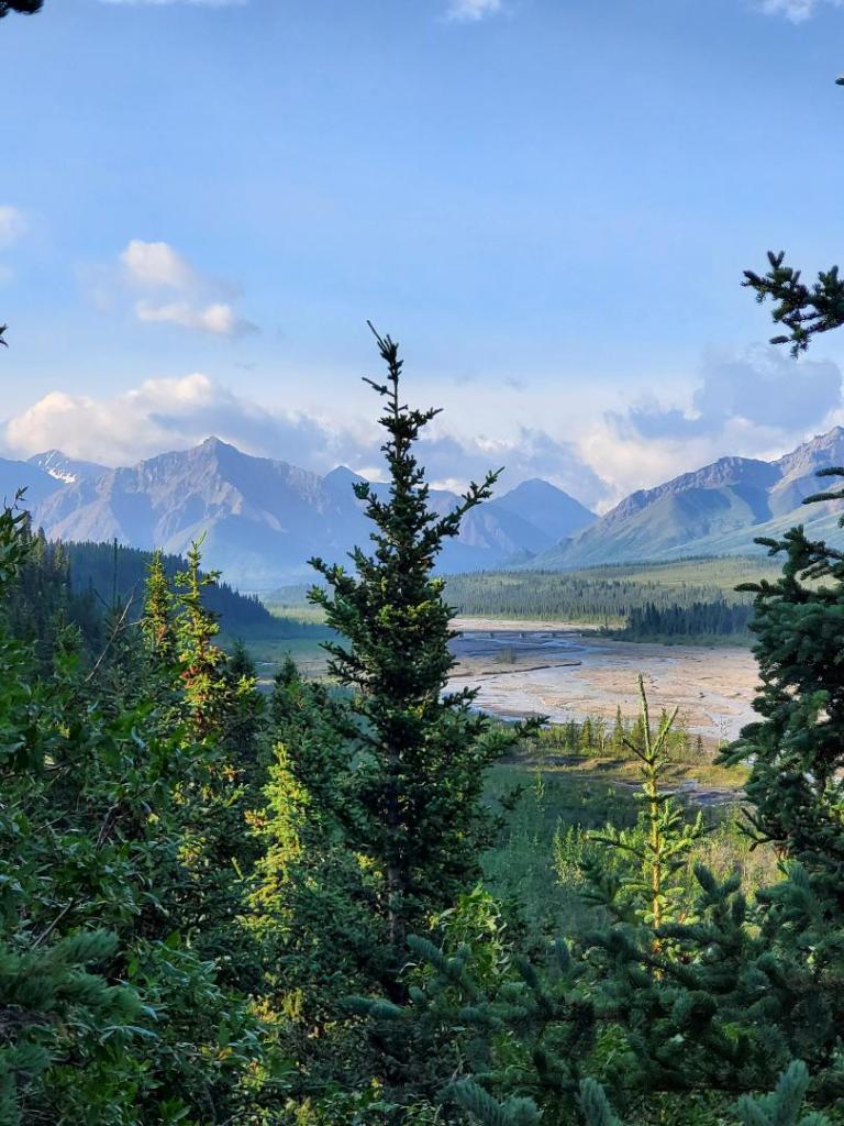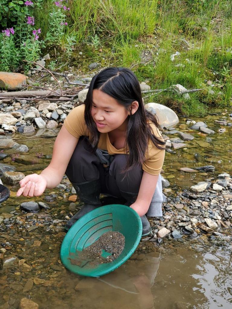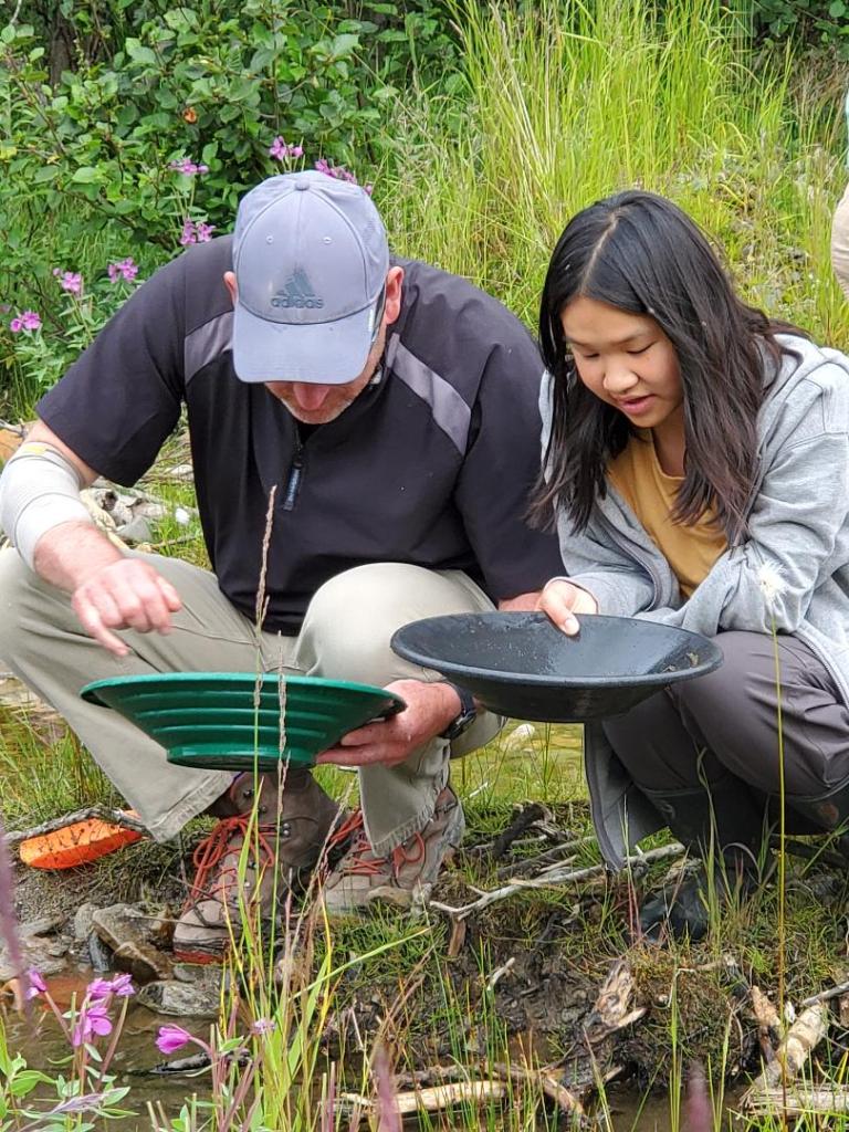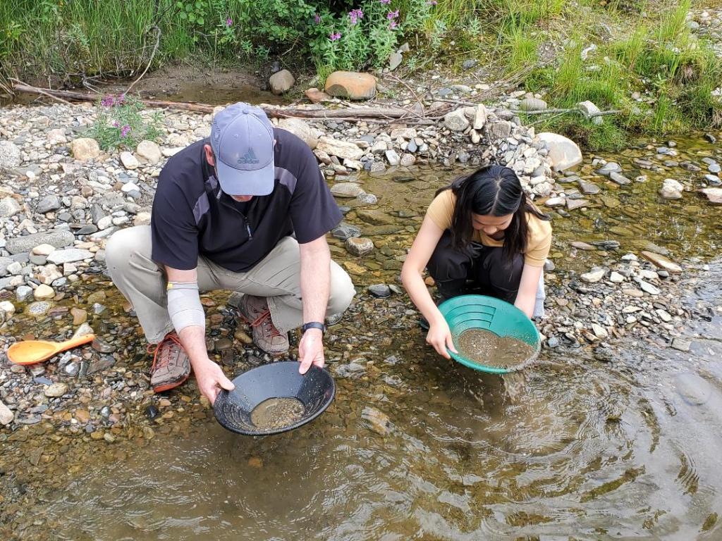 At the end of the road, there is a lodge and we had a nice lunch there and then had the option of taking a class on botany, panning for gold, or a few other informative hikes about legends from the area. Lily and Rich decided to pan for gold. They listened to a briefing and then set to work shoveling and sifting. Rich found a pretty impressive little chunk of gold colored rock that he was really excited about. His hopes were dashed when the nature guide did the thumbnail check on it and it exploded to dust. Lily, however, found a couple of flakes that were real gold. They laminated them on a card for her. They got some massive mosquito bites until I dusted them with Alaskan cologne….aka deet. They had a good time though! Watching them, I often take a step back and think that maybe they will be okay when I am gone. That they will have each other and they won’t need me to be the glue to connect them. As sad as it makes me to think I won’t watch her become a mom or a wife…it makes my heart feel good that Rich and Lily will look after each other.
