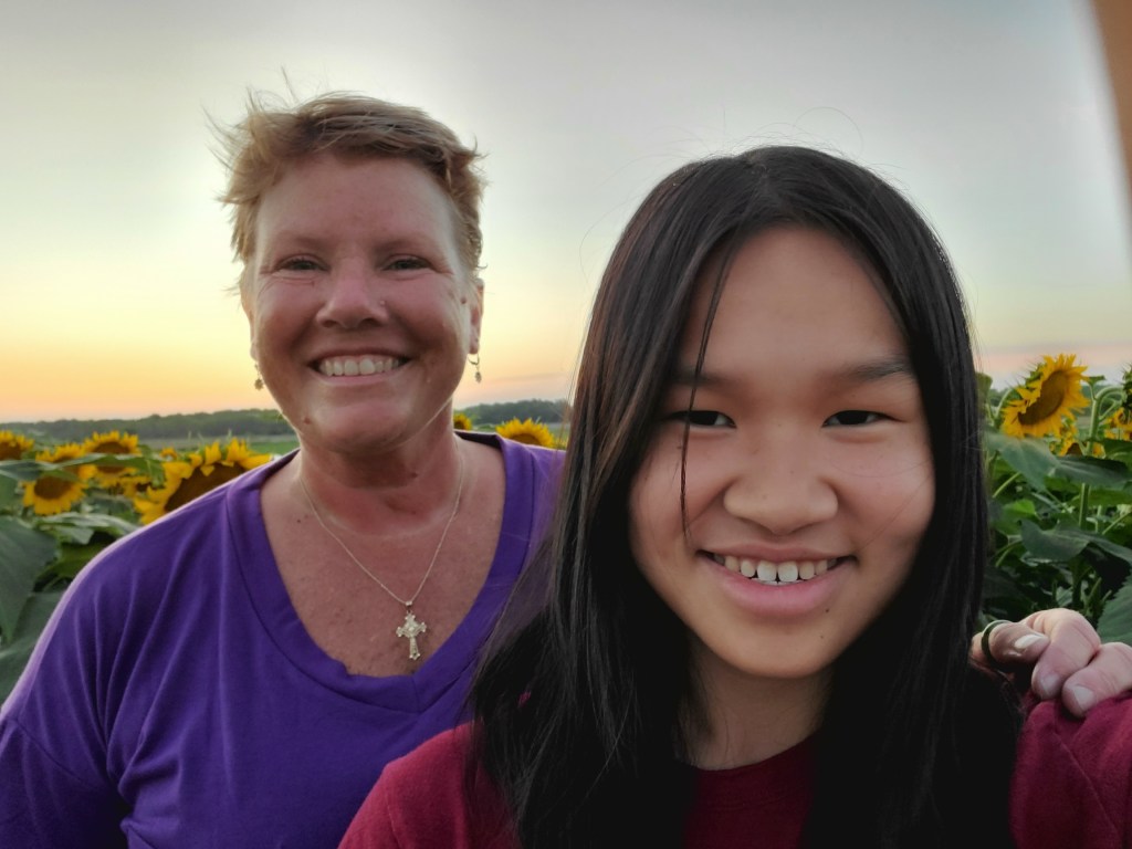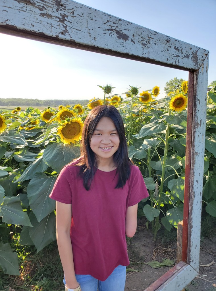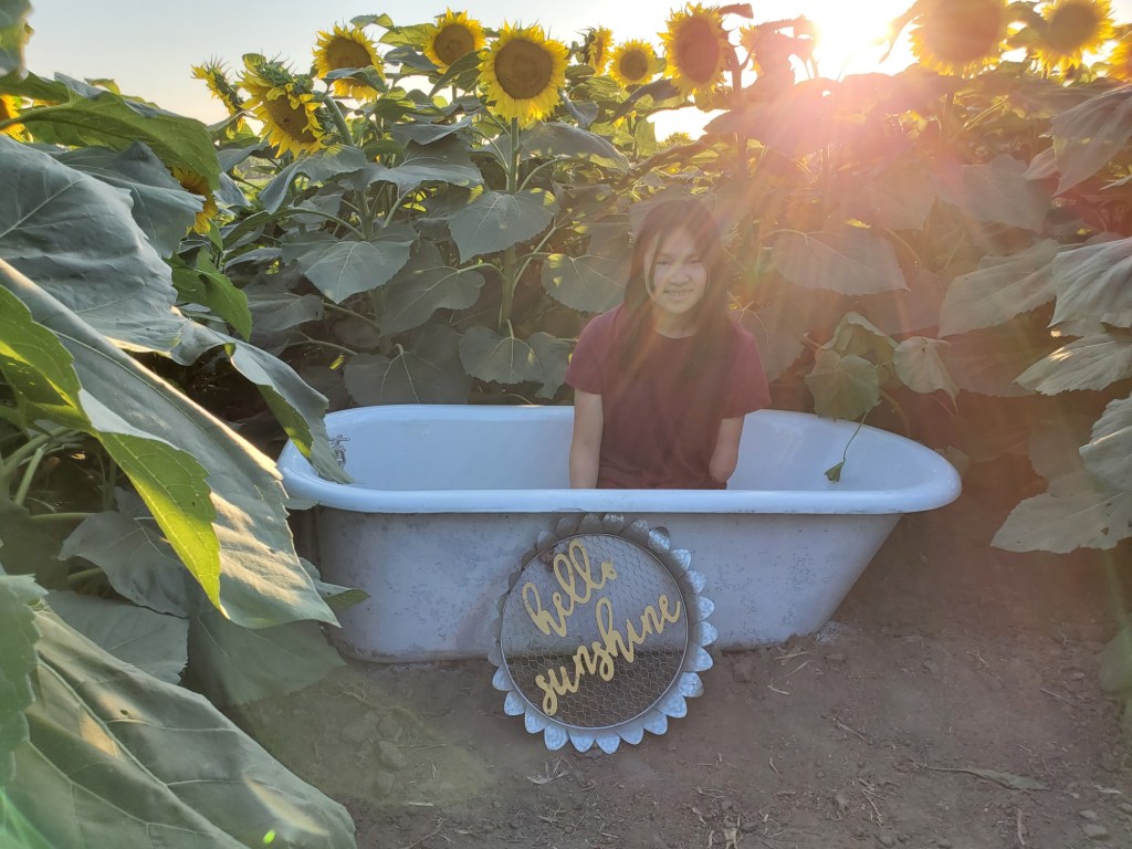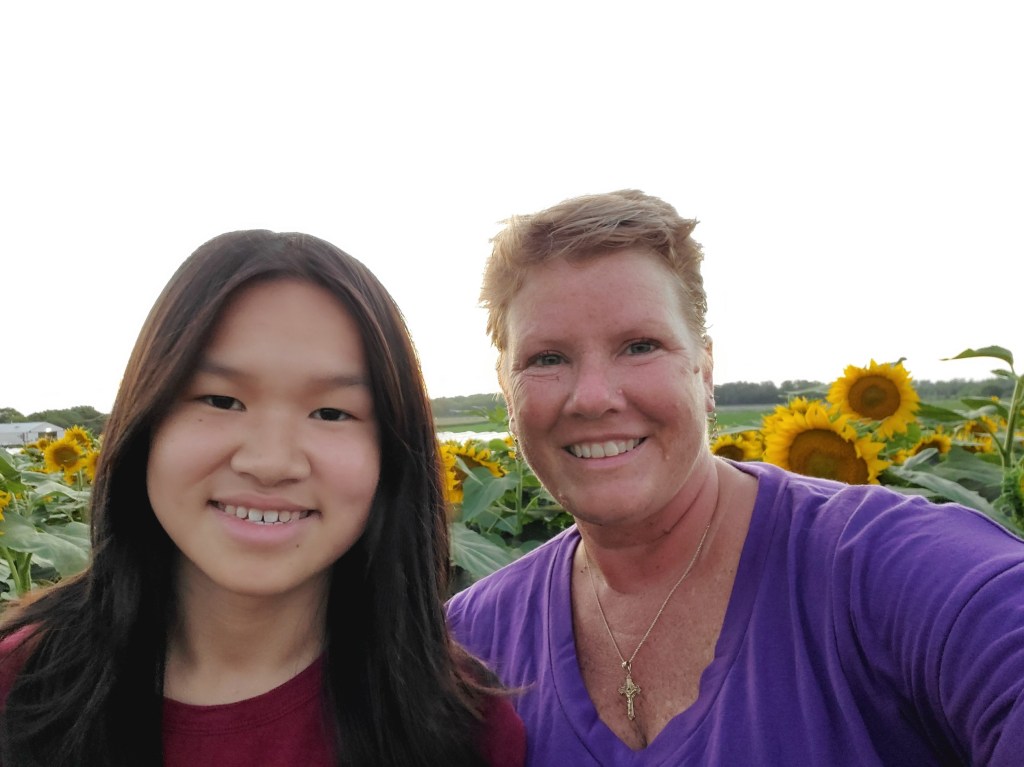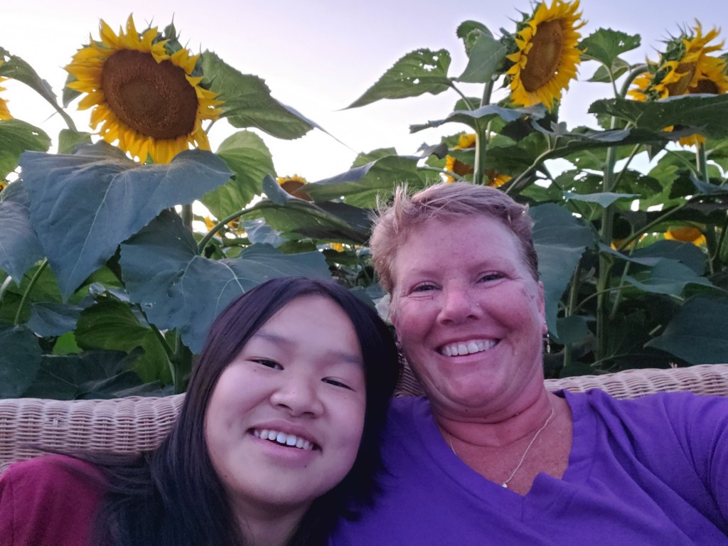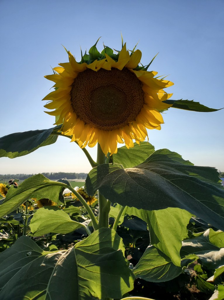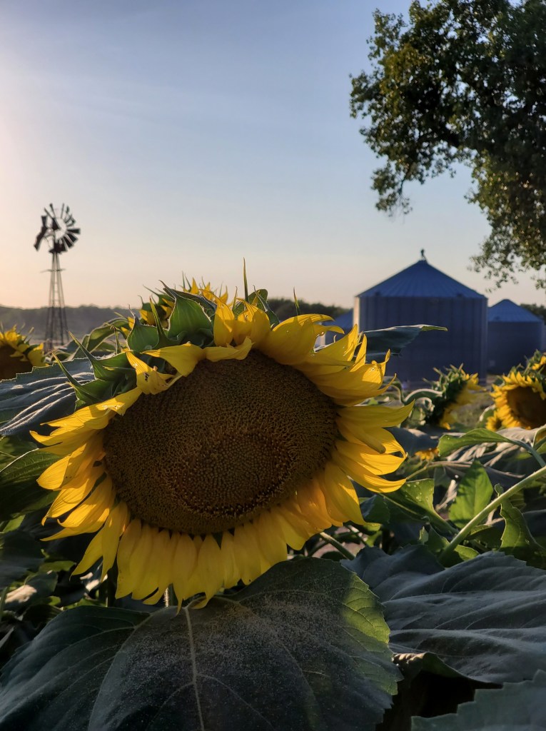 Yesterday I turned 50 1/2 years old. I figure no one really counts half years unless you are under the age of 18, over the age of 80, or have a terminal illness. Well, I fall into one of those categories so I made it to my half birthday! I celebrated by doing something I absolutely LOVE doing….taking photographs in sunflower fields with Lily. We went out to Nelson Farms in Valley, Nebraska again. This is my third year going and I absolutely love it. They set aside a few nights a week to be open during sunset hours for photographers. Lily and I tromped around the sunflower fields until it was dark last night. These are only my phone camera shots. I have yet to go through my good camera shots yet. I have been busy going through the nearly thousand photos I took in Alaska. (I would say I am blushing shamelessly stating that, but wow, it was just so much to take in while we were there!) Those photos will come soon. Until then, here are some sunflower photos with Lily and me. I wore my purple shirt as Leiomyosarcoma’s symbols are the sunflower and a purple ribbon. I decided to just embrace it.
