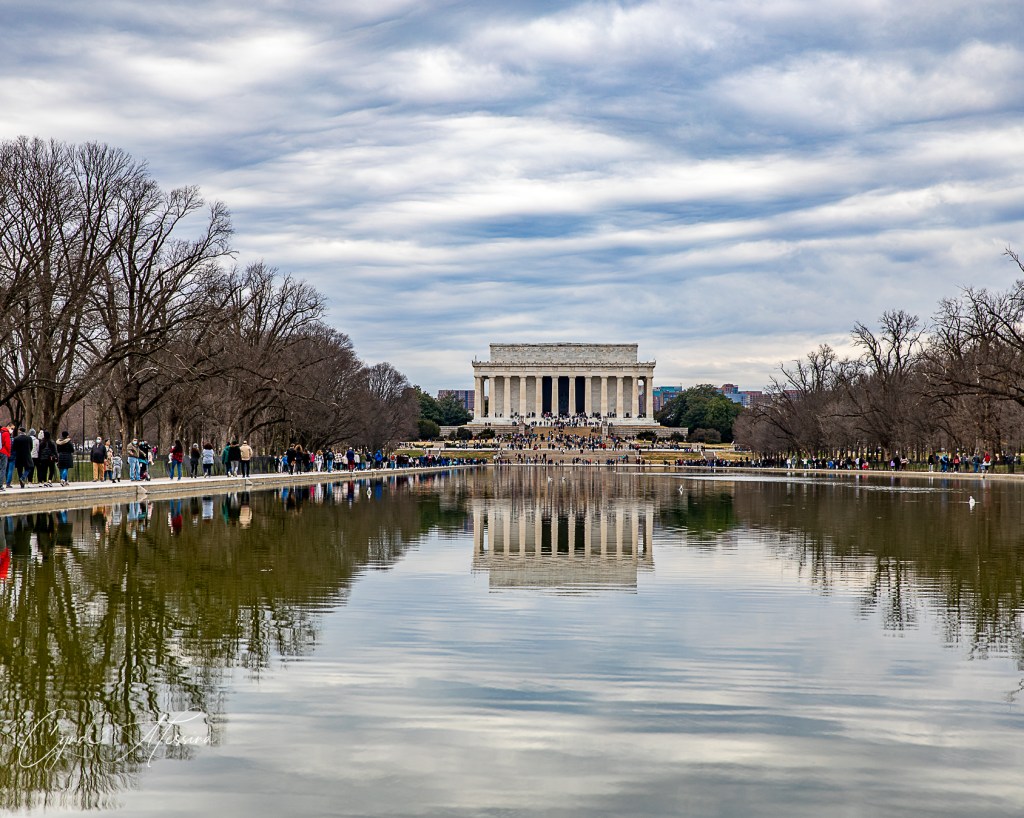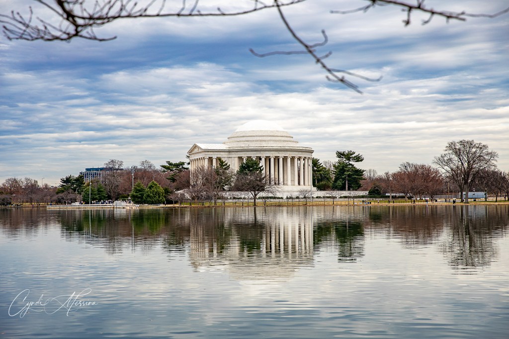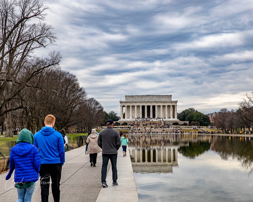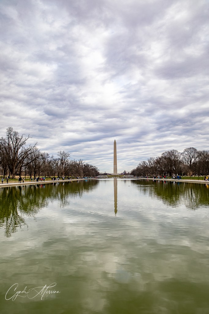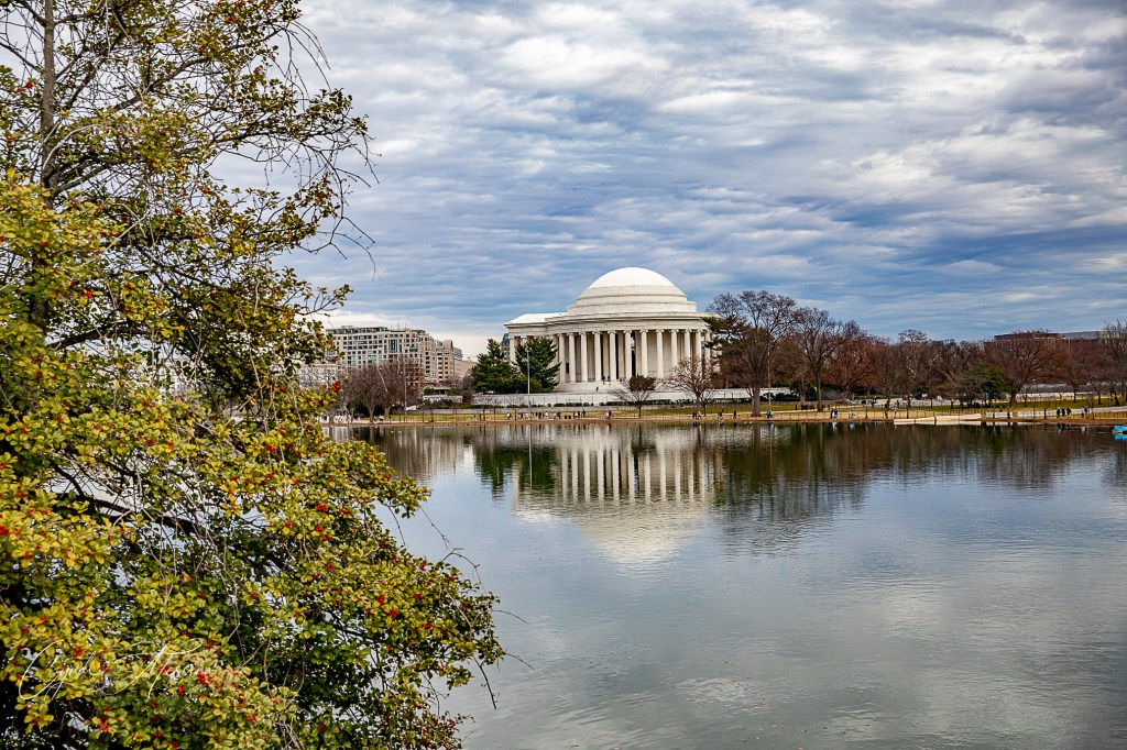 We had unnaturally warm weather while we were visiting and so spent some time outside each day. One of the afternoons we spent some time walking around the Washington Monument and some of the monuments adjacent to it. The skies were a perfect cloudy mess for photographers. It allowed the reflections of the skies to really bounce off the reflection pool and the other bodies of water. We found some awesome holly trees and with the warm weather, the cherry blossoms were confused and some were blooming in late December!