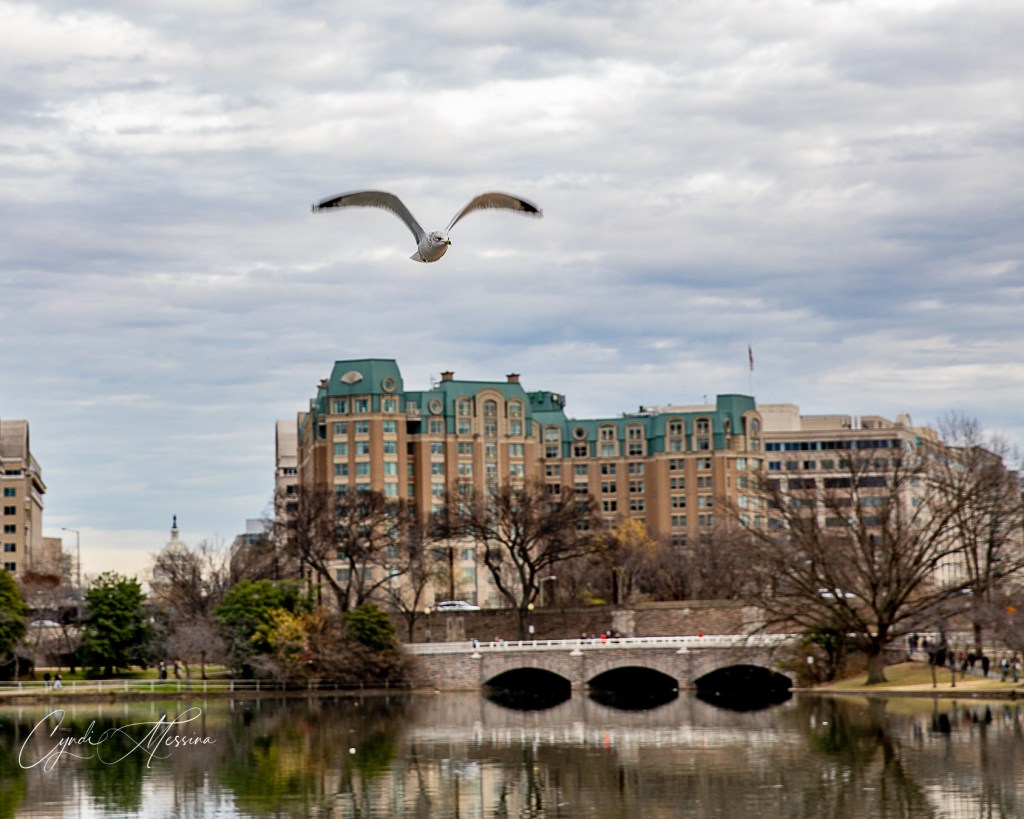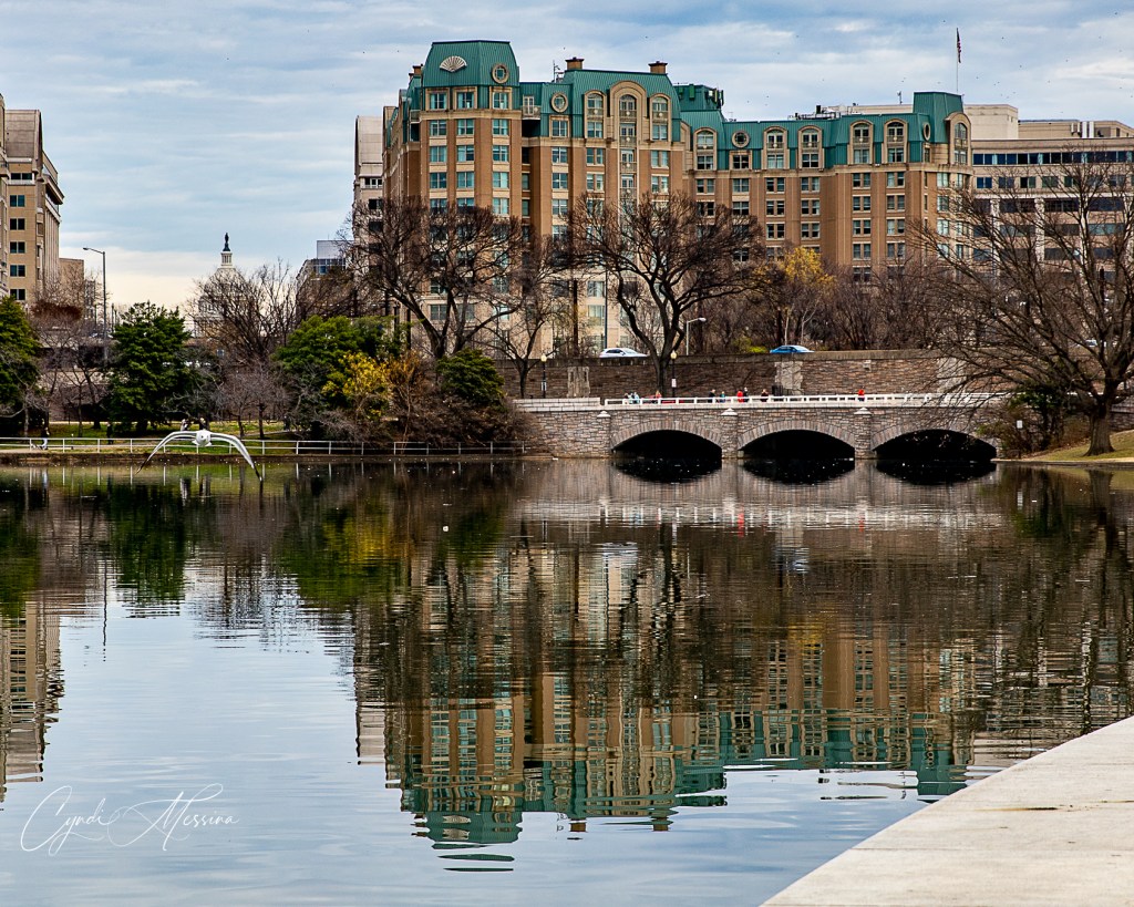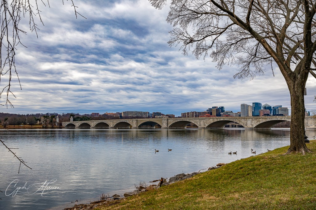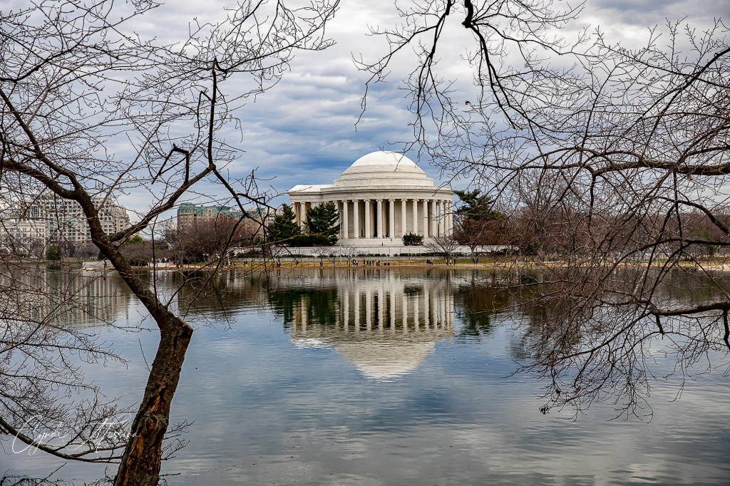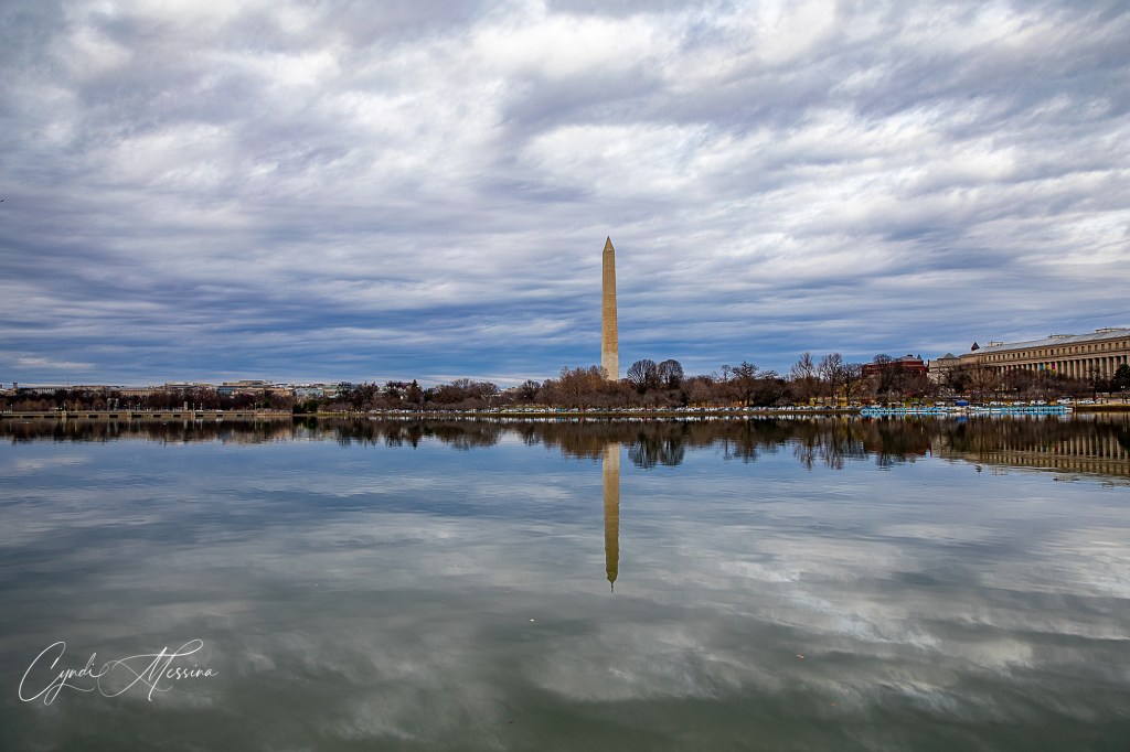 We had unnaturally warm weather while we were visiting and so spent some time outside each day. One of the afternoons we spent some time walking around the Washington Monument and some of the monuments adjacent to it. The skies were a perfect cloudy mess for photographers. It allowed the reflections of the skies to really bounce off the reflection pool and the other bodies of water. We found some awesome holly trees and with the warm weather, the cherry blossoms were confused and some were blooming in late December!