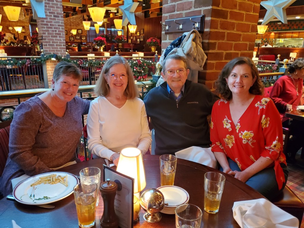 We were able to get together with some friends from my very distant past. I am not exaggerating! CPT and Mrs. Weien lived on Ft. Belvoir, VA and they were my family’s next-door neighbors when I was 3 and 4 years old. They have always told their kids that I am the reason they exist, that I was a nice little girl that charmed them when I was little. They had been disenfranchised by some other children they had met and weren’t sure they were going to have kids. Well, they did end up have two fabulous kids and when the Army brought my family and theirs back to the DC area again when I was in high school, Mrs. Weien taught English at my high school and I would occasionally babysit their kids. Kind of like a full circle type of thing. I hadn’t seen the Weiens in a really long time. They brought their daughter, Gwen, with them as well. I got to bring Rich, Lily, and Tim. We had a lovely lunch and the years melted away. I am totally blessed have been surrounded by such wonderful people from the very beginning of my life!