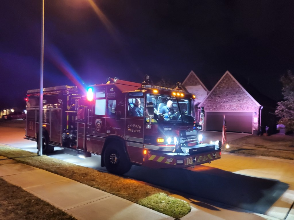 The highlight of my dad’s birthday was several calls from family as well as a mysterious knock on the door around 8:30 p.m. My brother, Craig, is a lieutenant in the volunteer fire department here in Cypress, Texas. He was on duty Monday night and decided to bring his firetruck and three crew members over to my parents’ house for ice cream and cake. When they left, they put on the lights and gave the siren a low whine before pulling out to go back to the station. I am sure the neighbors’ tongues were waggling the next day!