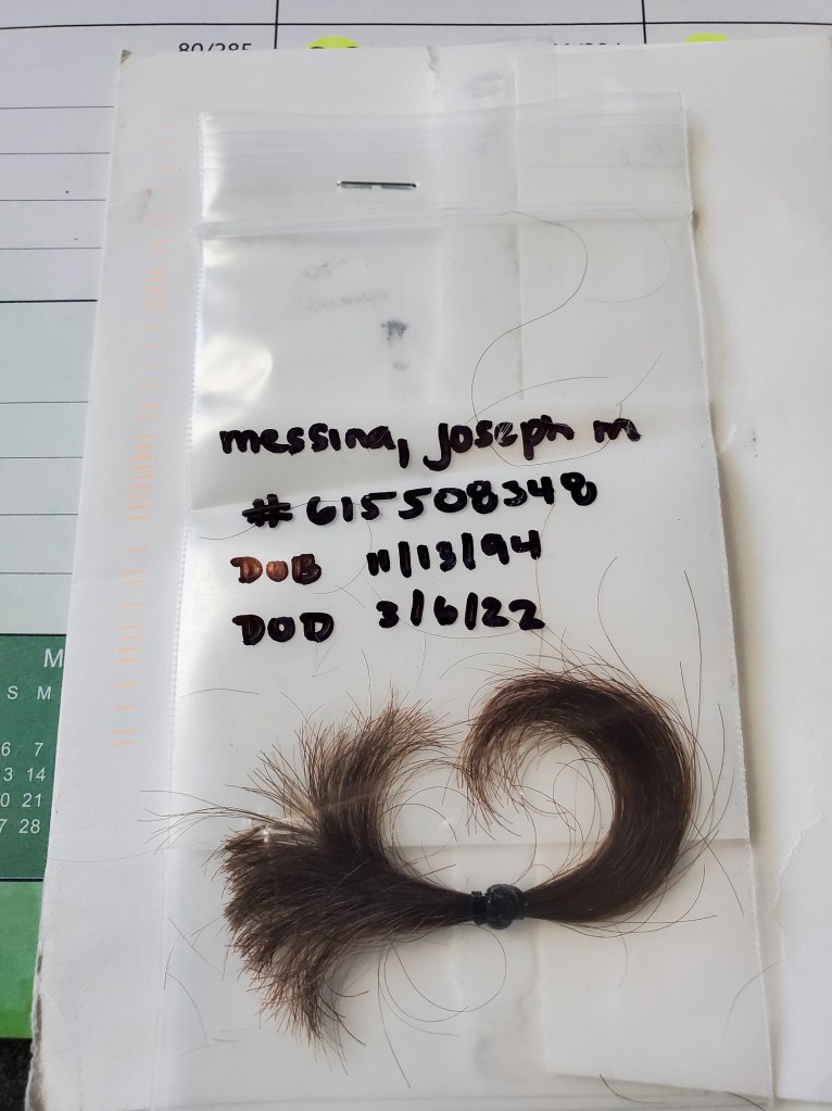 Today was a hard day. I actually am in a much better head space right now but the middle of my day was pretty hard. Joe was an adult. He was married to the love of his life and lived in KC. I am so lucky that I took so many photos of him…because I have those…but today in the mail, I received a lock of his hair that the mortuary in Colorado cut for us before he was cremated. The last day I saw Joe in person was on my birthday, February 15th. He drove up to surprise me the night prior. His hair was so long and curly on the top…I totally made fun of how he looked…like an alpaca. I even sent a photo to Michelle of him that morning. He still hadn’t gotten it cut a few weeks later, because drill weekend was another week away. Thank heaven for those long locks on top, as we were able to get a good piece of it. If he had been within regulations with the army…maybe not. It was hard to see his hair in a plastic baggy…knowing this is what I physically had left of my first born son. I went out and got something a little bit better than a ziploc with his name, birthdate, death date and case number on it. So today was kind of a hard day. Sometimes things just hit a momma’s heart just right and this was it.