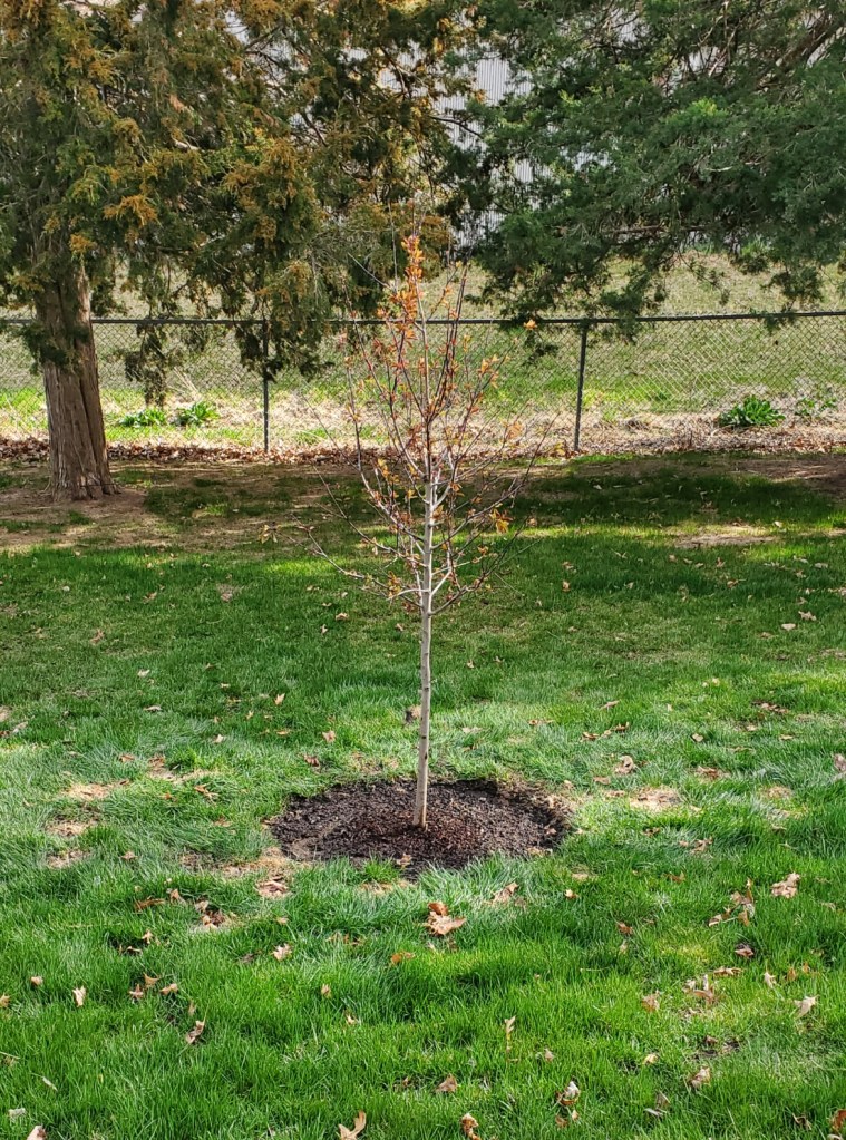 I managed to go to my church office and get 15 memorial Masses scheduled for Joe. There are so many wonderful friends who have donated for that cause…and some from around the world…having Masses celebrated in his honor and lighting candles for him in churches around the world. How can I not think our Joe is standing near our Lord and Savior with so many people praying for him? I also mailed several packages with t-shirts in them. So they are on their way if I picked yours up. I mailed 11 packages…dropped one off at a local house and have one to give in person on Monday. Whew. That was a good job done. Thanks for all who ordered the memorial shirts for Joe. They came out great and I love seeing his smile on the shirts. It is probably good the photo of him is on the back or I would be distracted and looking down at my front the whole time. Rich planted the tree were given for Joe this afternoon. We have had it for nearly 6 weeks but had to wait until it rained a bit and also warmed up a bit to put it in the ground in our backyard. There were some tears…okay, a lot of tears as we looked at it this afternoon. When Joe was born, we planted a willow tree in our front yard in Bellevue, Illinois. So it was kind of a full circle moment. This plant was gifted to us by a group of people I was student athletic trainers with back at Hayfield High School in Alexandria, VA. This would have been my 9th and 10th grade year, as I moved right after that. That these friends from the mid-80’s would gather together and get this tree to us in memory of Joe, was so touching. Even God cried as the skies opened up soon afterward and it rained big time for the first time in a long time. This tree looks small compared to the others, but those are 40 foot trees…so this one isn’t as small as it seems.