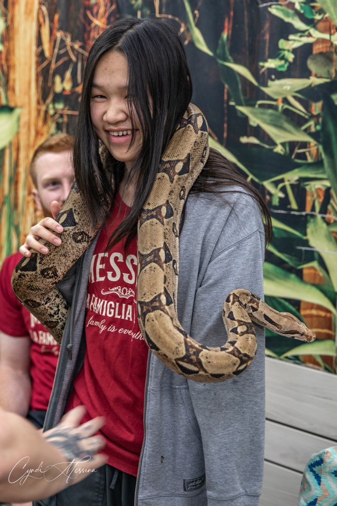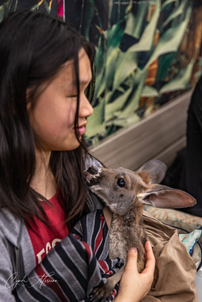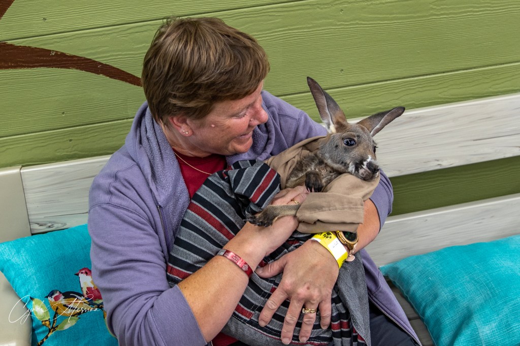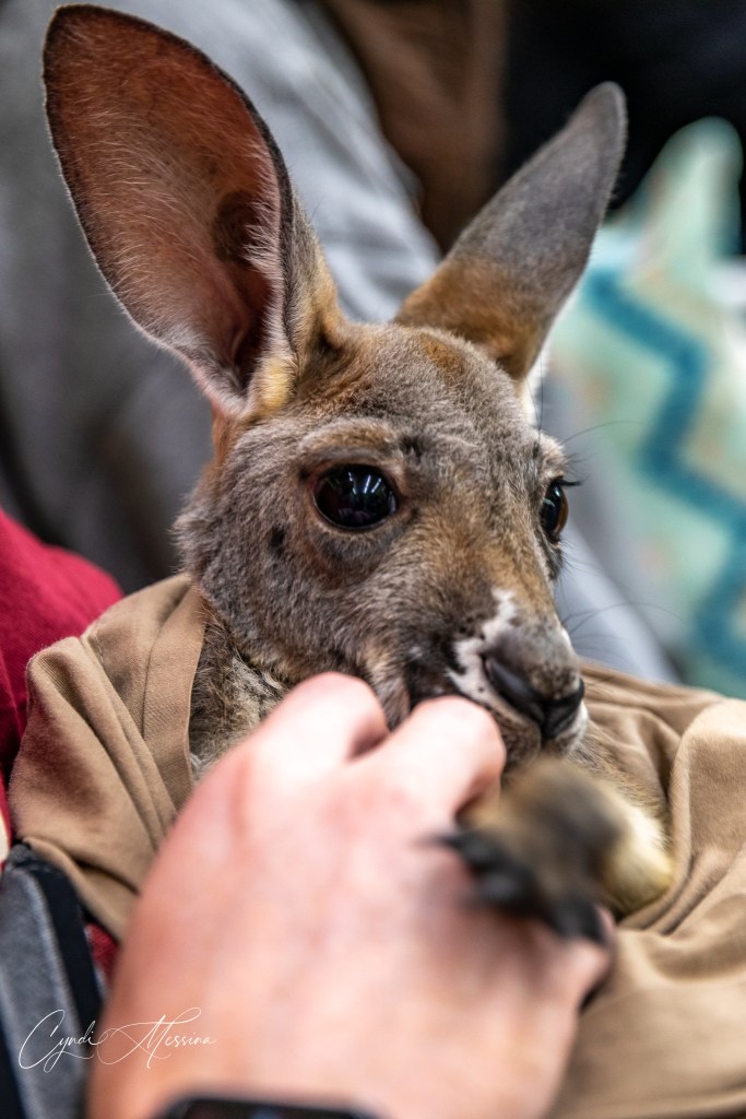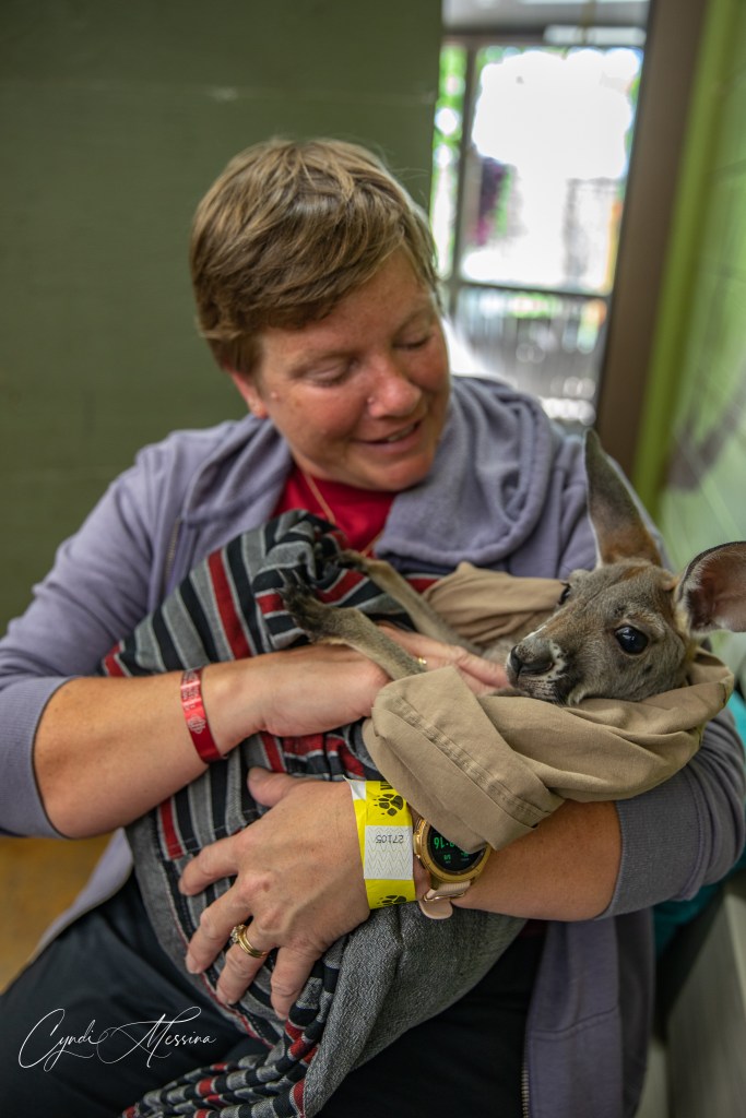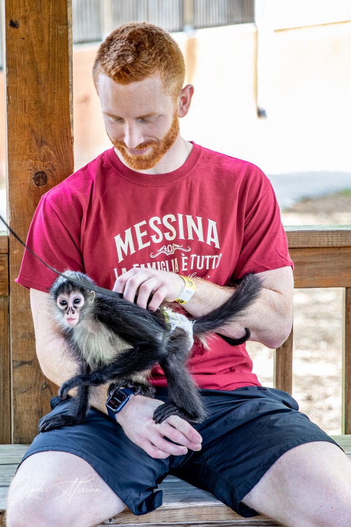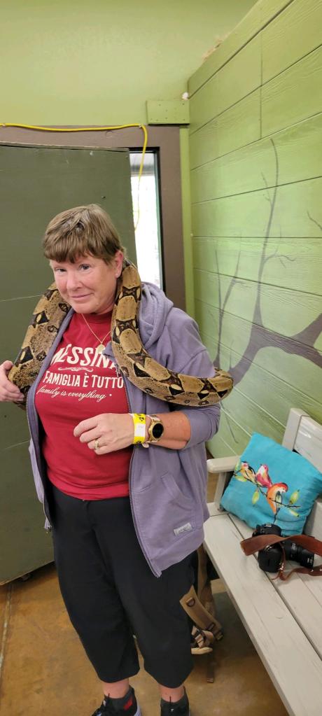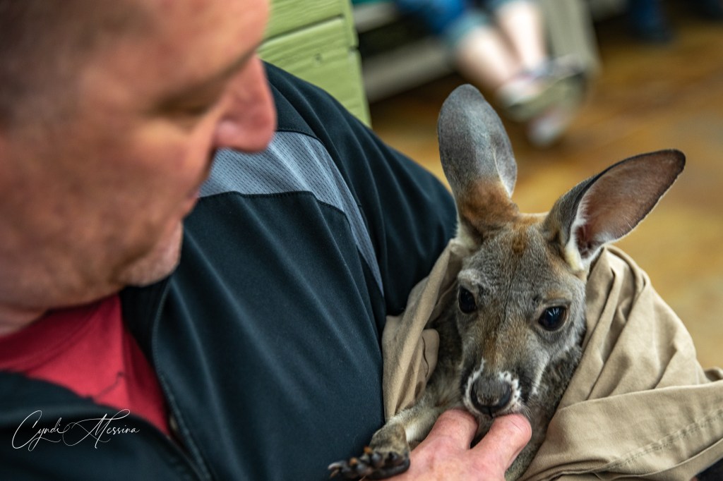 Promised Land Zoo is an interactive zoo. You can walk through a big section of it and feed the animals as you go…things like camels and goats. Lily loves birds and fell in love with the kookaburra…until I started singing the kookaburra song. There is a parakeet room you can go in and feed the parakeets. Rich and Lily did that. There is a driving section where you can see some of the larger animals and feed them from your car – deer, bison, ostriches, ponies…cattle, giraffes – a plethora of random animals from different continents. We purchased the VIP experience so we could spend some time holding, touching, and feeding animals in very small groups with their zoo staff. We got to hold a python (again, not my favorite but the things you will do for your kids), a baby kangaroo (got to hold a joey on Mother’s Day whilst really missing my own Joe), feed a sloth in its enclosure, Tim got to wrangle a baby spider monkey named Bobo, and Rich and Lily got to hold and feed two Eurasian owls. We also got a driving tour of the zoo in their big van while the driver told us about the various animals. All in all, a very cool visit. Did I think some enclosures were too small? Yes. I am used to the Henry Doorly Zoo in Omaha. However, it was quite evident that the people that worked there loved the animals and they were well cared for. The joey’s name was Reuben. He was so stinkin’ cute! If Joe and Michelle would have been there with us, I can guarantee Joe would have left trying to convince Michelle they needed a baby kangaroo. He loved animals, so being there on Mother’s Day was special…and to be able to see the smiles on Tim, Lily, and Rich’s faces were awesome. For the photographer in me, it was great. I had a bucket list of taking photos of owls. Being able to take photos of sloths and baby kangaroos weren’t even on my radar….but I loved every moment of it.