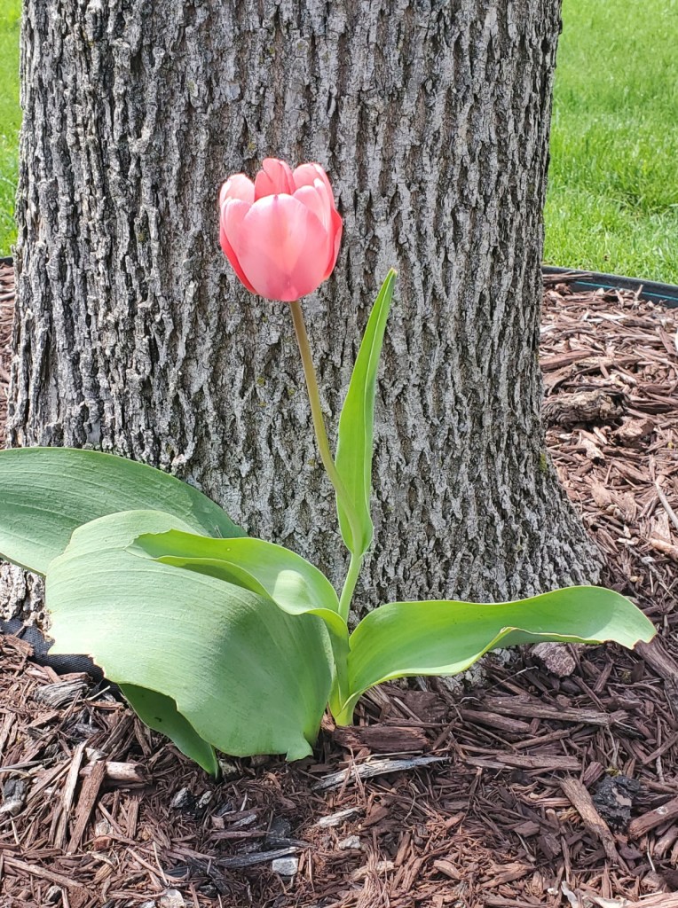 When we first moved to Omaha, Rich dug up a bunch of tulip bulbs around a tree in our front yard. That was almost 7 years ago. This year one pink one managed to come up. It only bloomed for one day before wind and/or rabbits took off the bloom. I told Lily it was Joe giving me a mother’s day gift from heaven.