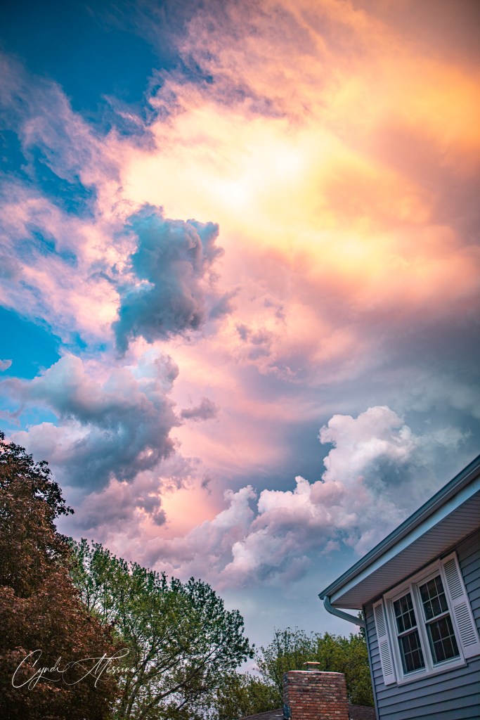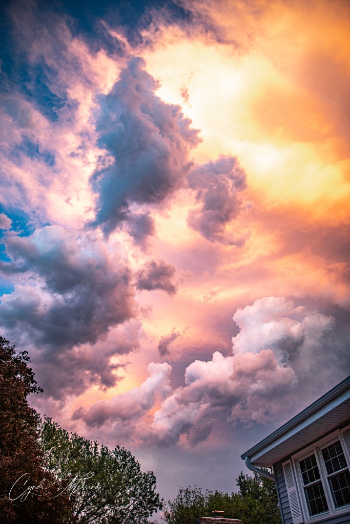 It has been REALLY hot in Omaha the last week…and it will continue, unfortunately. However, this means as a part of tornado alley, we have lots of pop up severe storms, especially in the evening. Thursday night, I looked out the window and the outside was orange. I walked outside and it was hot and humid and ORANGE…like I was wearing orange colored glasses. I grabbed my camera and took a few photos. The sky and the clouds were amazing. So these are all from my front yard or back deck. God’s beauty.