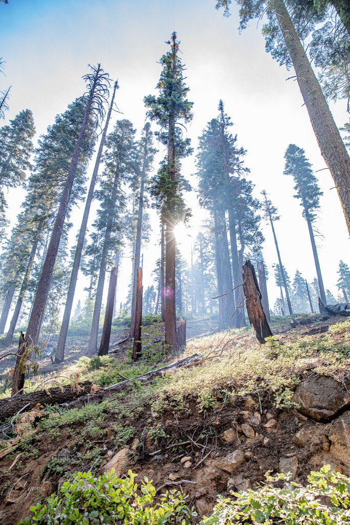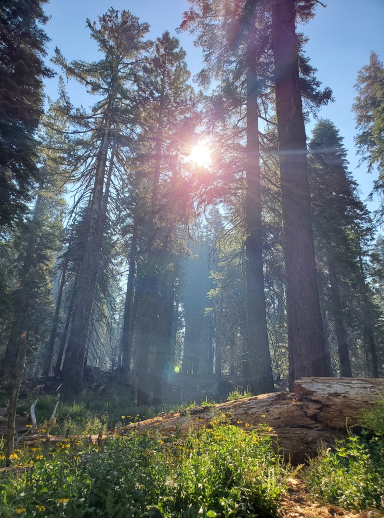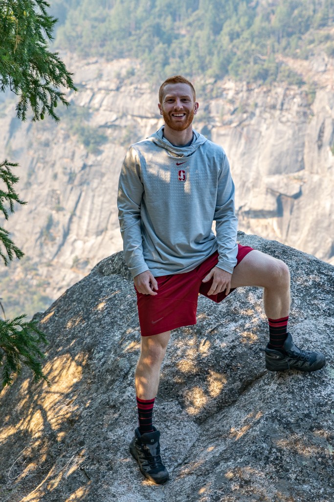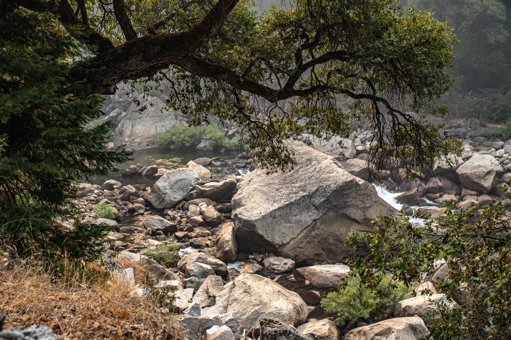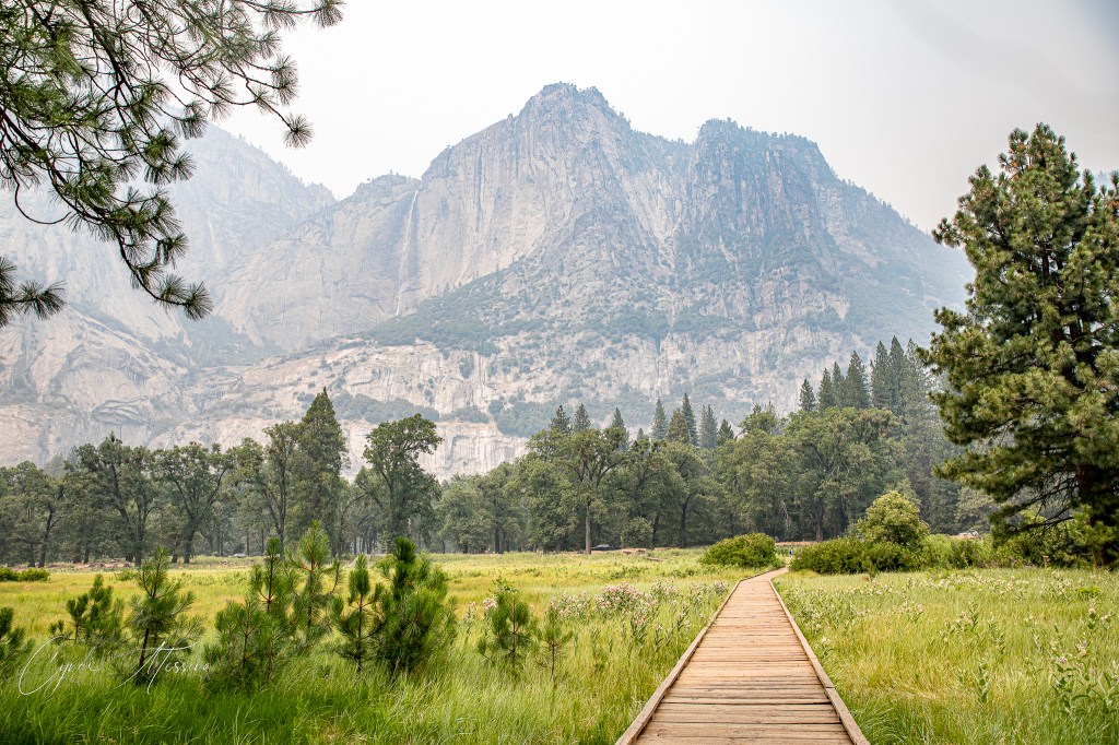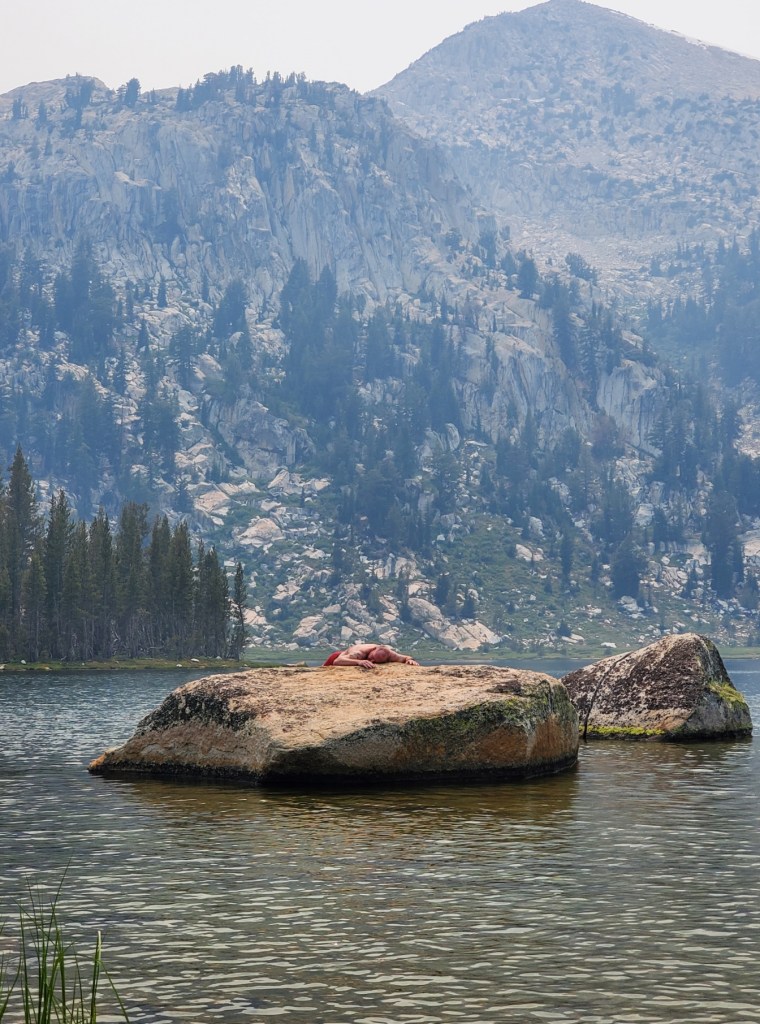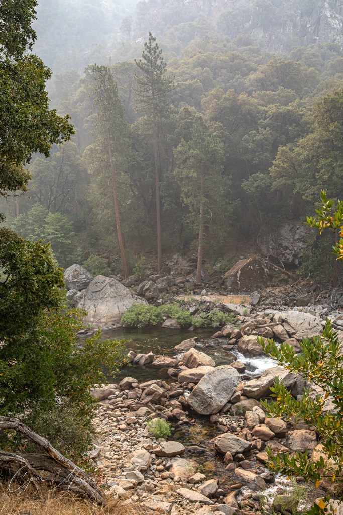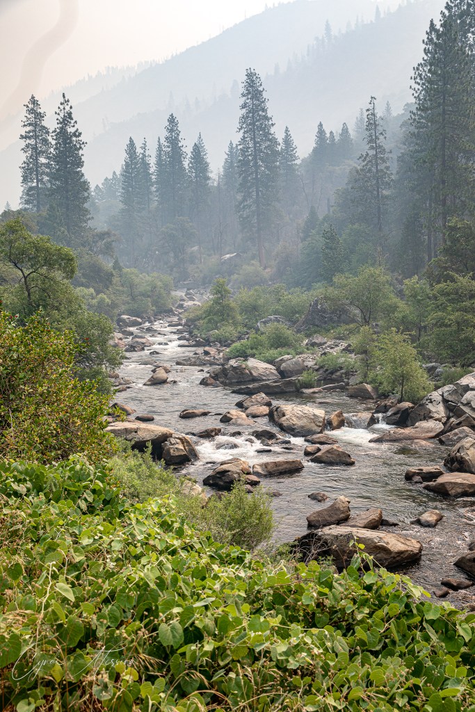 The first day in Yosemite was Sunday, July 10th. We went to the valley in Yosemite National Park and it was pretty smokey. I was almost rethinking our plan when we arrived as the smoke was pretty thick. You will see it in the photos. It isn’t that I developed them to look moody and dramatic. That was the smoke hanging in the air. In several photos I took, I couldn’t even see anything in the sky, but when I pulled the levers in Light Room to process the photos, a mountain would pop out of the soupiness of the gray sky. We did two hikes each day. The first day we went to the valley and hiked the loop. We also hiked to the lower falls. The main road in Yosemite is closed all year for much need reconstruction. That will make it nice for future travelers, but made it a little inconvenient for us. Many sites we could have driven to were relegated to 13-15 MILE hikes in steep terrain. It was triple digits already and the air quality wasn’t great. That was a hard pass for us. We went to the eastern part of Yosemite the second day. The smoke was better because we were further from the wild fire. We were also a much higher elevation. Our second hike of the day was to Elizabeth Lake, a beautiful alpine lake that we saw a total of 3 people on the trail. That hike started at 8000 feet and went to 9200…in the first mile. The second mile or so was flat…just in thinner air. I have to admit, I thought I might die on that hike. It was labelled a moderate hike but I think that is all 4.5 miles averaged together. That first mile just about did me in. I participate in a cardio class at the YMCA maybe 5-6 times a week. Zumba did not prepare me for this elevation. I was breathing but it was like there was no oxygen in the air for my lungs to latch onto. I felt like a fish flopping on a dock, stunned and trying to breathe. I had to gently remind myself that I am not a spring chicken. I am on lots of meds. I have stage IV cancer, to include spots in my lungs. I was going to make it to that lake if it killed me (and it almost did). I also envisioned that if I had a heart attack or a stroke and was unable to walk down, that none of my family could carry me. I could just see Rich with one of my legs, Tim with the other, pulling my body down the mountain trail with my head bouncing on the rocks as they try to get me to safety. That would be awful for all involved. So I took a breathing break every 100-200 yards. It made it slow going up, but I was still upright and conscious. That was my goal at the end of that first mile. Going done? Piece of cake! I could feel the oxygen flooding my lungs with every step down. It took about 1/3 of the time to go down compared to going up. I ended the day with 27,000 and change steps. Long day, great views, even better company. I love watching my kids interact now that they are adults. Lily was only in the 3rd grade when her youngest brother left the nest and made her an only child at home. So it is fun to watch them banter back and forth because she was pretty little when Tim left home and he is shocked at her being a senior now. Joe’s name was mentioned a lot because of course we felt a piece of our family was missing. It was good to talk about him…to tell stories of random ridiculous things he did as a kid (or better yet, as an adult).