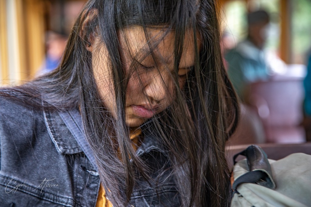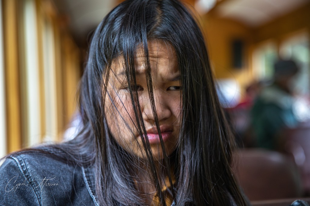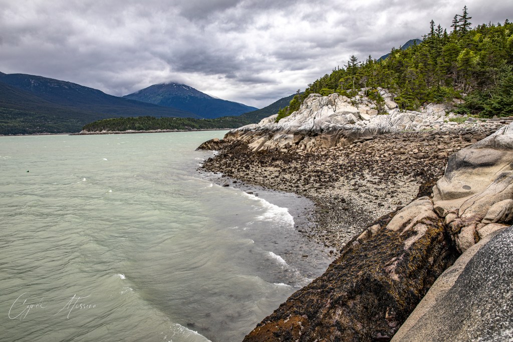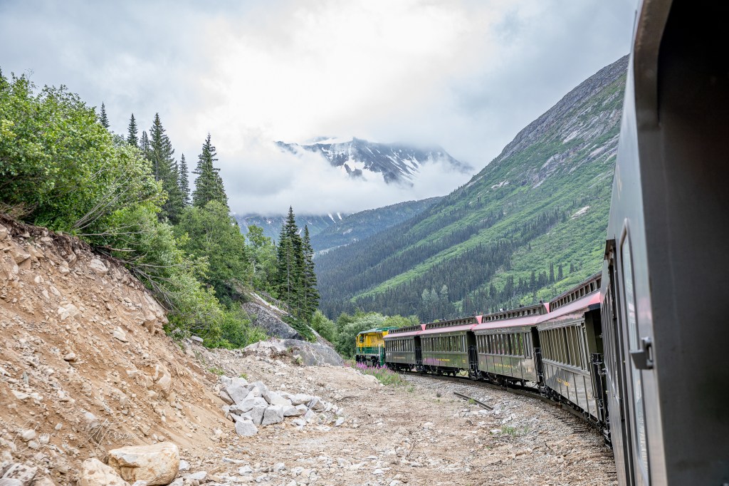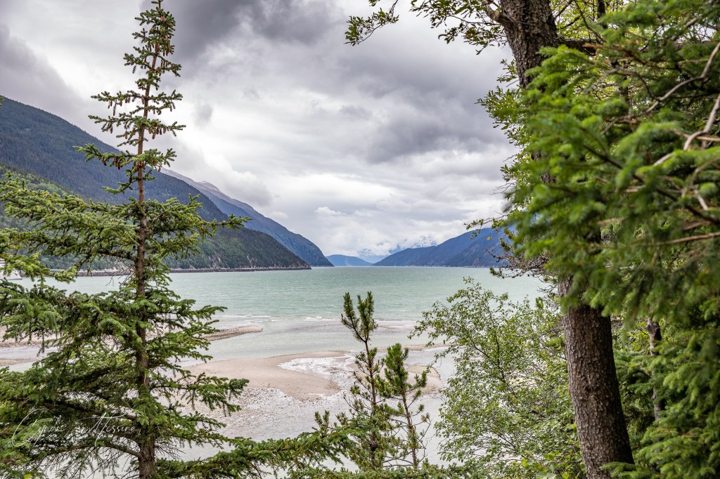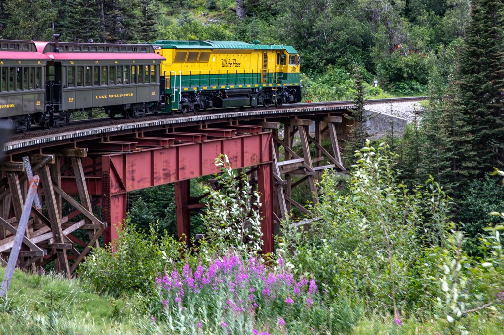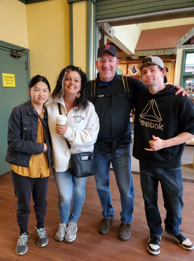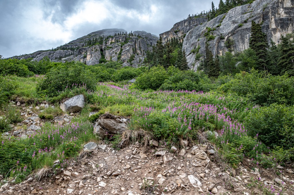 Skagway is a little Alaskan town that looks like it stepped out of the wild west. We had one of our longest stops in this little town, and some of the worst weather. It got pretty rainy and windy throughout the day. However, all this worked in our benefit, because our nephew, Dante, was working there as a seasonal worker in the town. His mom, Tammie, Rich’s sister, was there visiting him as well. So we had a little Messina reunion in Skagway. We went on a hike with Dante leading us along, and then on a long train ride up through the mountains. This town was booming during the Klondike Gold Rush and we followed the train through the White Pass and the Yukon Rout Railroad track along the steep Chilkoot trail. It goes all the way up to the Canadian border. Lily can sleep anywhere…and fell asleep on the train. The second photo of her is the look we get every morning. She is not a morning person. We then walked around the town and had a nice dinner before heading back to the ship.