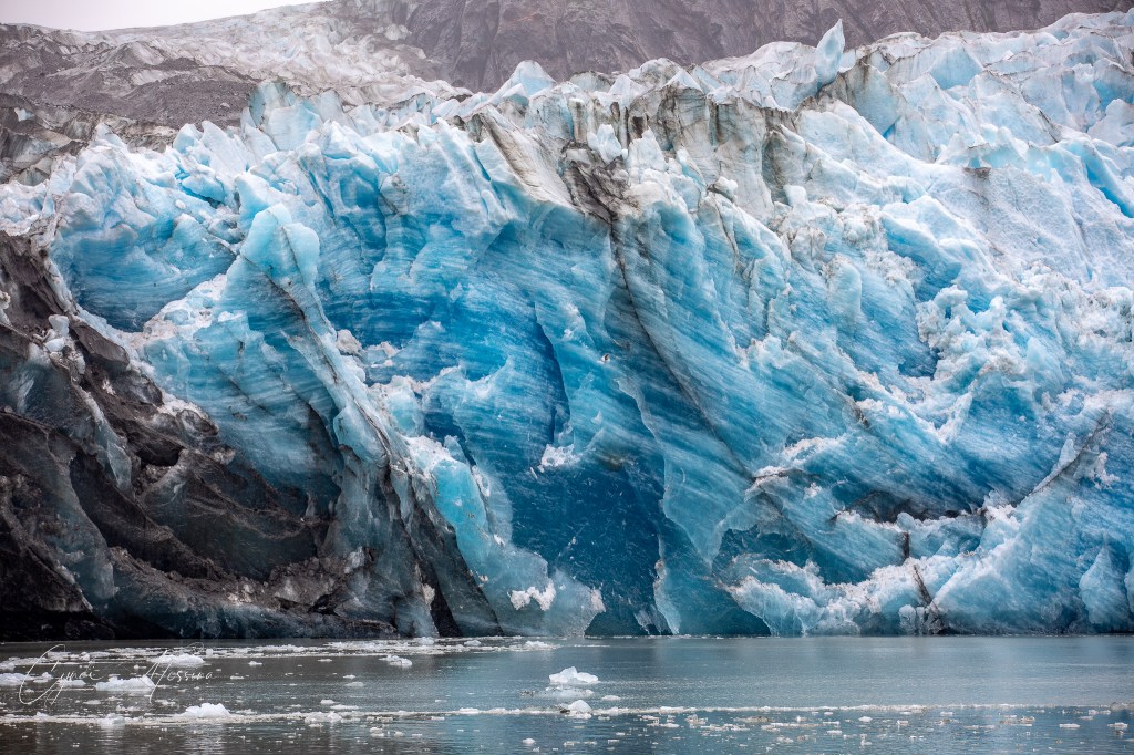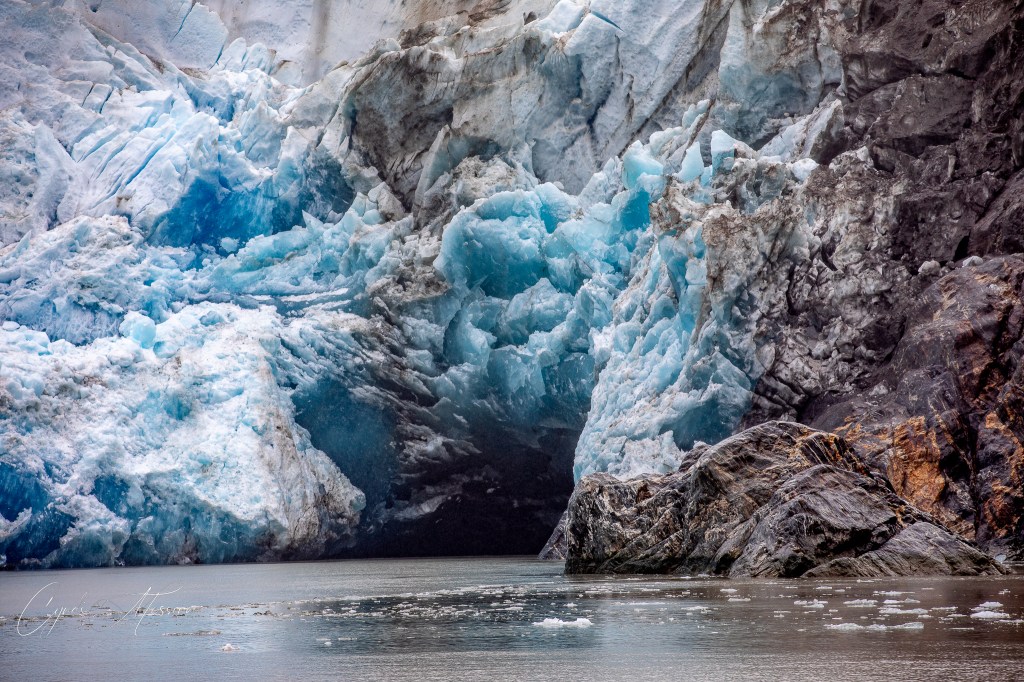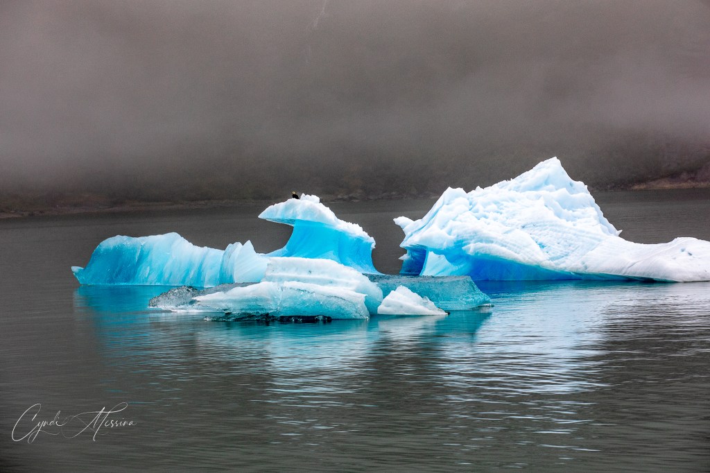 On this day we had an excursion but we did not ever put our feet on land. We met a bunch our group of fellow adventurers at 6:30 a.m. to wait for our smaller boats to arrive and board them. When I woke up I looked at the temperature….knowing I would have to dress warmer being closer to the water and close to glaciers. The ambient temperature was 32 degrees. Layers! It was also windy and raining. Even better! I didn’t have to jockey for positions along the railing to take photos outside the main cabin.