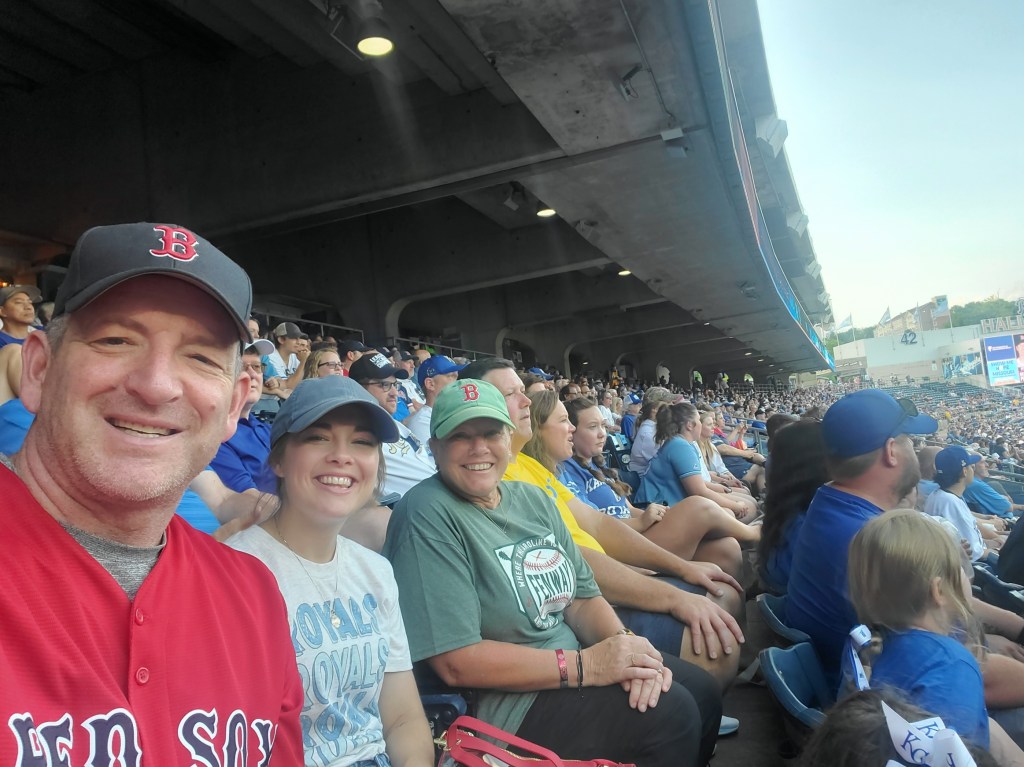 A few days after we got back from our trip out west, Rich and I drove down to Kansas City to take Michelle out to a baseball game. The Red Sox were playing and we have gone down there before with the Royals are hosting Boston. It is easier than flying back to Boston for a game…although Fenway….so worth it! We met Michelle at her house and took her out to dinner before heading to the stadium. Although Michelle is not a big baseball fan, she managed to don a Royals shirt and happily accompanied us when we bribed her with chocolate dippin dots. I was very blessed to have a friend from Leesville High School, where we both graduated together decades ago, join us. It was so great to catch up with Leif and to introduce him to Rich and Michelle. The Red Sox did not win. The Boston manager got kicked out of the game for mouthing off to the ump. Ah well. It was so great to be able to spend some time with Michelle and catch up on everything. I can’t begin to tell you all how proud I am of all the hard work she has done. Grief sucks. We lost our son and she lost the love of her life. Thankfully, we still have each other and can lean on each other when need be. Only regret? We should have had her wear the extra Red Sox jersey we brought!