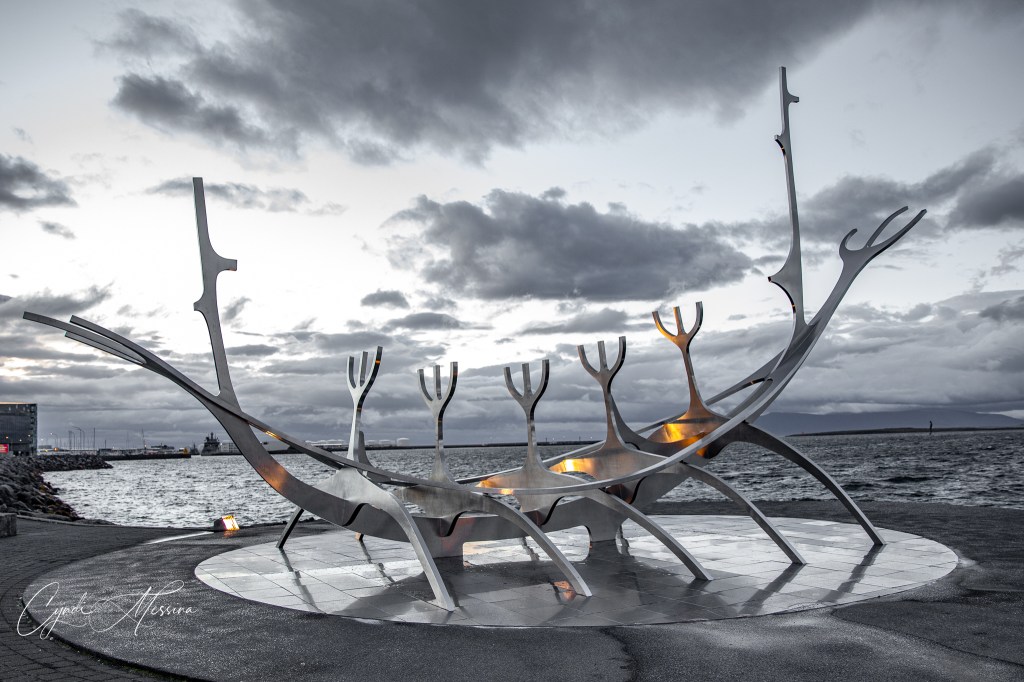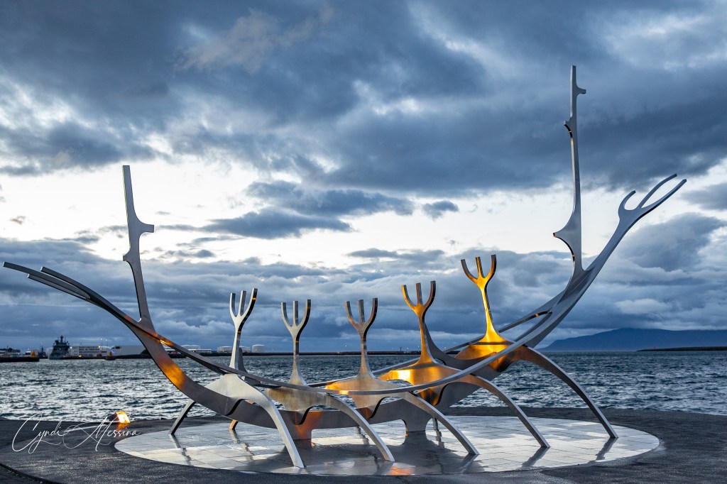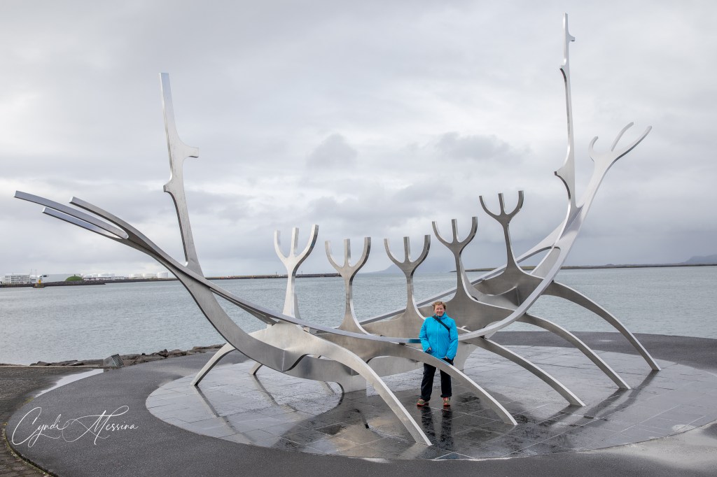 One of my favorite sculptures in the area was the Sun Voyager. It is a huge stainless-steel sculpture of a boat set on granite beside the sea. We always pick up a little token of the country we have visited to put in our “world traveling curio cabinet’ in our living room. We got a small replica of this sculpture. We went there a few times as well. The sunset reflecting on the sculpture was really striking…making it look like a burning boat. There are a lot of Viking things in Iceland…as they were also the land of the Vikings. So, this was so appropriate.