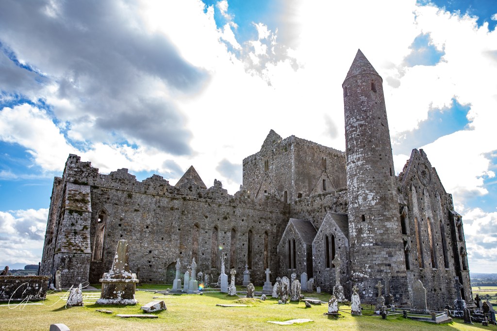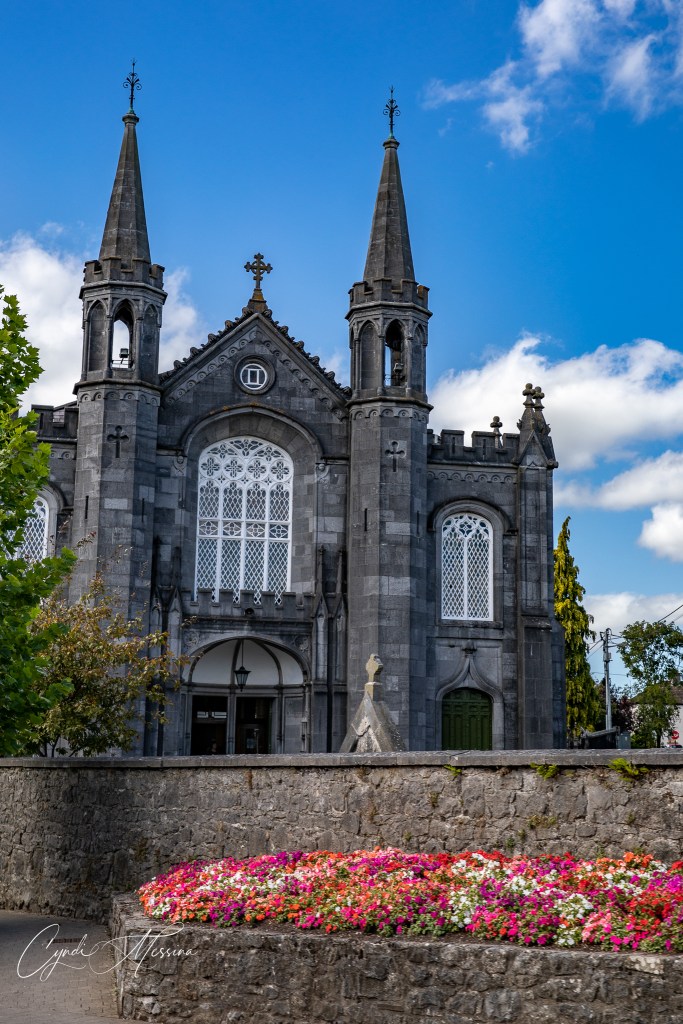 We started our 2nd day in Ireland in Kilkenny. We went into town and took a trolley ride around this adorable town. It is a 9th century medieval city with narrow cobblestone streets, castles, an abbey or two, and a lot of beautiful flowers. Actually, there were so many lovely (pronounced Loov lee) flowers everywhere we went in Ireland. I had forgotten how the Europeans really pride themselves on how their towns look and their gardens (yards). Kilkenny also has the dubious distinction of being the hottest spot in Ireland. After three windblown, rainy, and cold days in Iceland, we were sweating. Layers in Ireland were a must. I felt like I always had a sweater and then a rain jacket along with me. This made me very thankful for not being on a tour bus or something like that where I had to carry all of this all the time. Having our own car was wonderful. We took a trolley ride around the city of Kilkenny and got to hear more about the city before we were on our way again to the Rock of Cashel. This is a huge medieval church were St. Patrick baptized the Irish king. There were graveyards and a fortress on a hill that overlooked pastures of cows and lambs on the countryside. We took a walking tour of the Cashel Rock Cathedral and then made our way to Killarney, where we stayed at a Bed and Breakfast for two nights.
