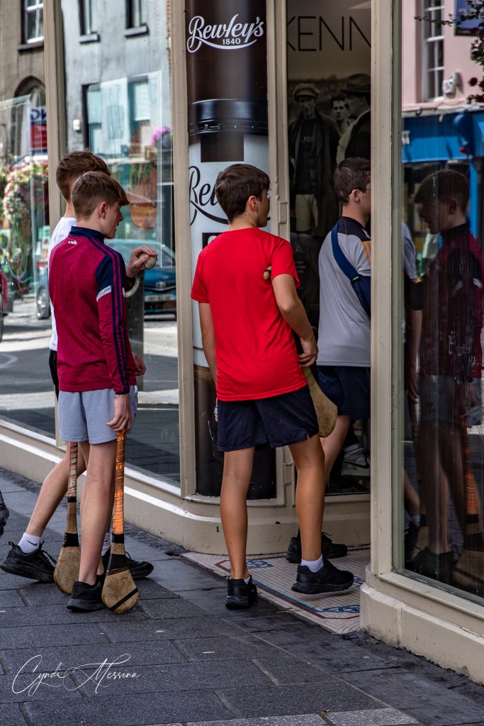 Rich and I are both big sports fanatics, so we were paying close attention to the sports the youngsters were playing while we were traveling around Ireland. We also took the opportunity to ask locals questions as well. The top three sports in Ireland in the GAA (Gaelic Athletic Association) are #1 Gaelic football (which is nothing like anything I have ever seen. They can run and carry the ball as well as kick. The rules are quite extensive, but we stopped to stretch our legs and watched some practices and then looked up the rules when we had wi-fi at night.) #2 hurling (this looks like a death wish for all players involved. The injuries received from smacking this hard ball (sliotar) with a bat called a hurley or caman in Irish language, seem like they would be plentiful. It dates back to 1272 BC. The female game of hurling is called camogie. Google it….is INSANE.) #3 Rugby (we actually know this one pretty well!). I was able to get a few boys practicing hurling.