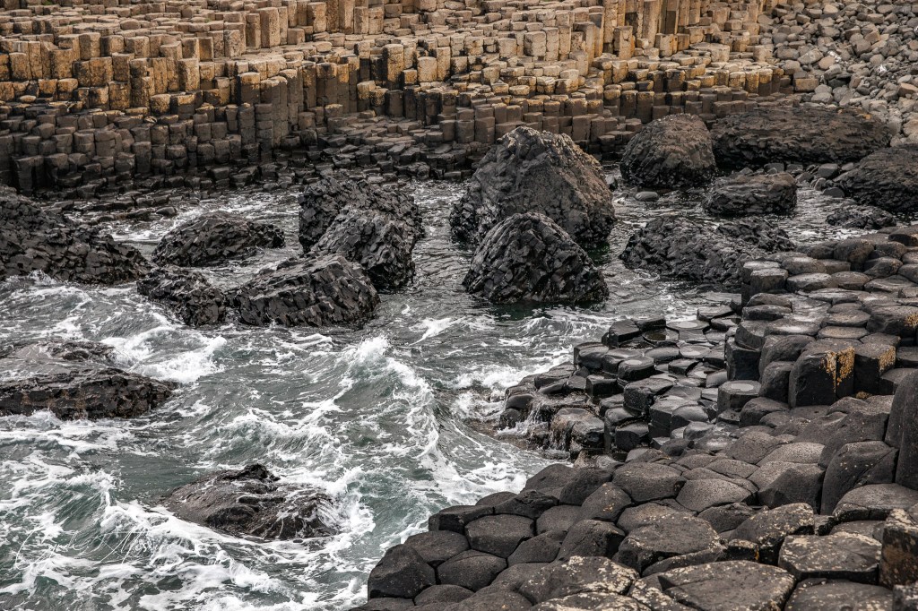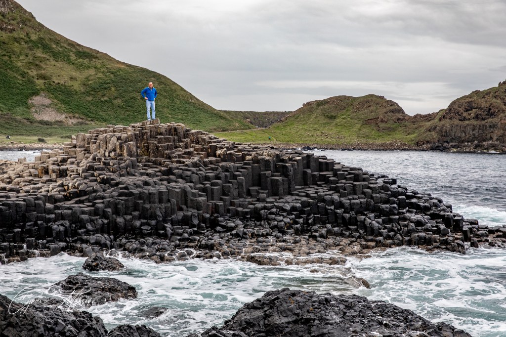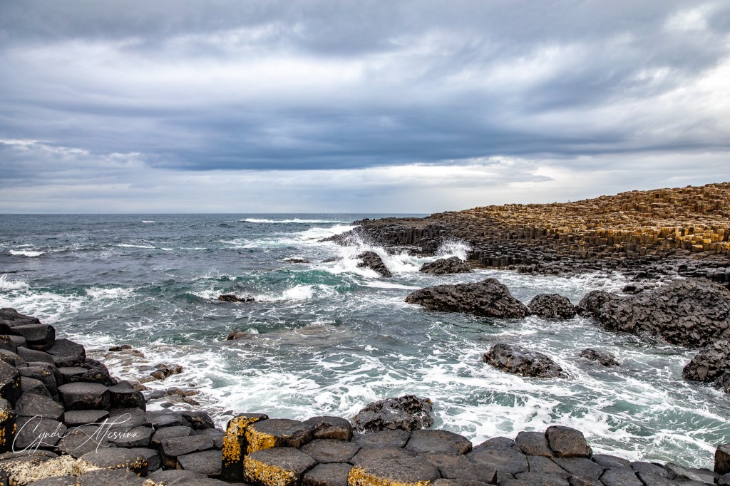There was once a giant who lived in Northern Ireland named Finn McCool. There was another giant who lived across the Irish Sea in Scotland named Benandonner. He had threatened Finn and so Finn ripped apart the rocks along the Antrim coast and flung them into the sea, making a walking path to Scotland, to attack. Benandonner. Finn went across the sea on the rocky path and spied on the Scottish giant, finding, to his dismay, that Benandonner was much larger than him! Finn went back to Ireland and with the help of his wife, donned the outfit of an infant. He curled up and pretended to be sleeping when Benandonner came to spy on Finn. Benandonner was shocked at the sheer size of the infant he saw….thinking his father must really be ginormous! He hurriedly went back to his home in Scotland, and tore the walkway away as he went, hoping the Irish giant Finn McCool wouldn’t follow him. Hence the story of the Giant’s Causeway.
