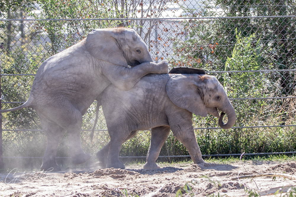 So I have to admit that I have my favorites at the zoo. There are the baby elephants…Eugenia and Sonny, both born in January of this year. They are just adorable. They are best friends and I love to watch them play. I have had the pleasure to see them learn to roll in the mud holes (and get stuck and have to have their moms pull them out) and to spray dust on their backs. I have some photos of that in this post as well as Eugenia piling hay on Sonny’s back….just to annoy him. There will be two more elephant calves born in 2023; one in the spring and one in the fall. One of the times I was there, the zoo train went by the elephant enclosure and something must have set the adult elephants off. They trumpeted and immediately surrounded the two babies and faced outward to protect them. Lily was with me when this happened. It was quite impressive. Watching the love between the mother elephants and their calves is amazing. It just gives me all the special feels. They are my favorites. Others that I enjoy looking at are the big cats: the leopards, lions, and tiger. The red panda is so stinkin’ cute, but likes to hide. If he is out and about, I will spend a lot of time waiting for him to look up and get out of his tree house. A lot of the birds are fun to look at as well. Pelicans just are so very different…they have been off their exhibit due to avian flu for much of the year. It is great to have them back. I have a few other random shots in there of animals that caught my eye. Enjoy!