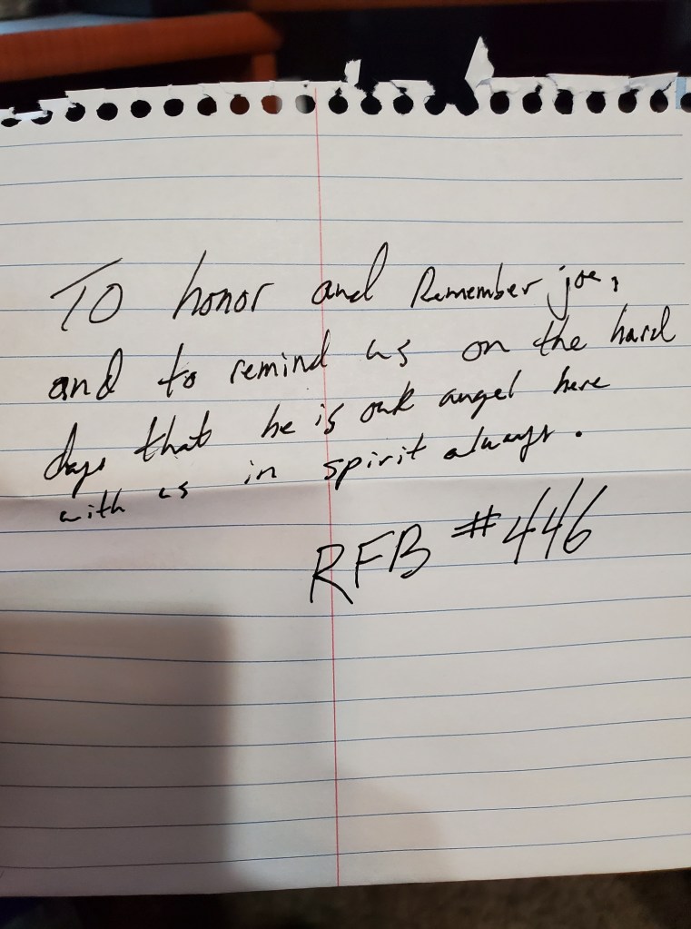 1. God is so good and works through others so beautifully. The fact that these guys and gals remember your family and hold you in their hearts and loved Joe like they did just warms my spirit. Have a beautiful day my friend