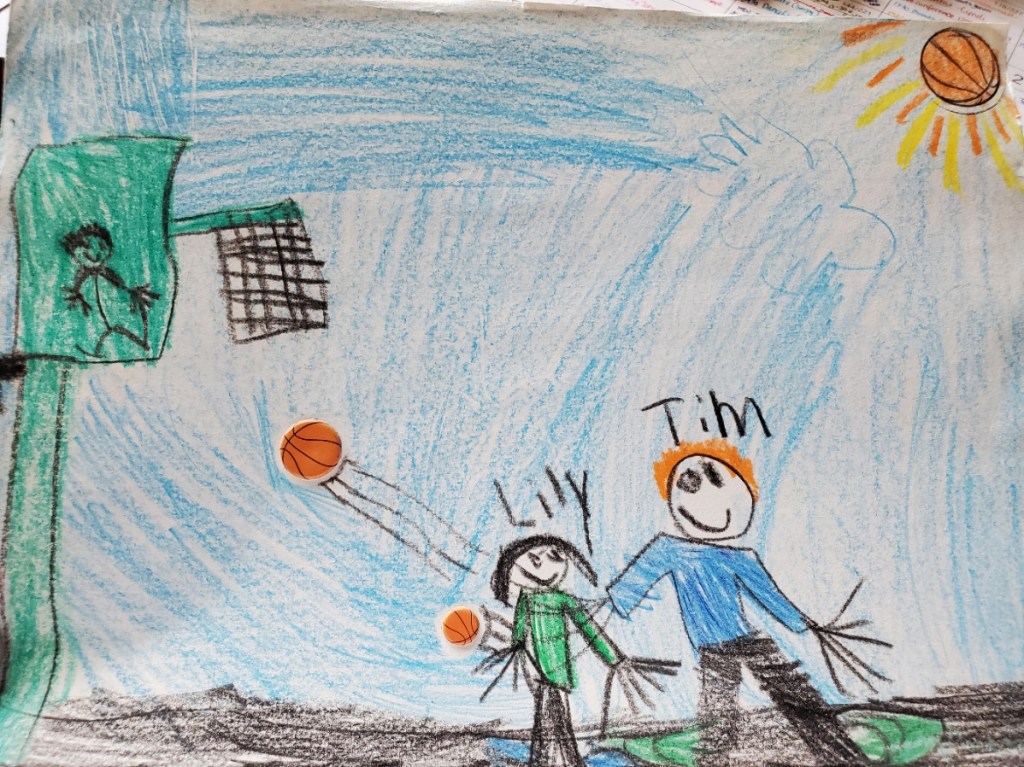 Lily graduated from Westside High School this past Sunday, May 21st. She had a lot of events running up to graduation. Before I get to that, I want to share some early photos of Lily and some of her very early artwork. Lily was dragged to all of her brothers’ sporting events and she was fine as long as she brought her art bag with her. She rarely saw a minute of their games or matches, she was coloring and drawing the whole time. Most of the photos of Lily are from kindergarten, but there is one of her and Joe when she was four and lived in Norway. She kept calling him “Joey” and he hated that. He would grab ahold of her overalls and press her up and against the wall telling her forcefully, “Don’t call me Joey!” as she laughed hysterically and kept saying “Joey!”.