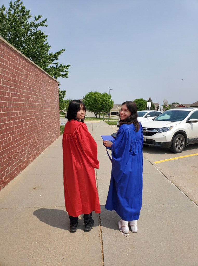 They have a wonderful tradition here in Nebraska where all the graduates go back to their elementary schools and march through the school and getting cheered on by the elementary school kids. The boys never got to do this because they did not go to elementary school in this area. Lily made up for them and went to two elementary schools. She went to Fairview Elementary School in Bellevue, Nebraska from Kindergarten through fourth grade. She called the school and asked if she could come down for the graduation parade. They said, “Of course!” We had to hightail it down there (about 25 minute drive) from her high school (where she had just picked up her cap and gown) to Fairview Elementary. She hadn’t seen her classmates in 8 years. They were all so very happy to see her! So many smiles and hugs…it was so nice to see her so happy. There were lots of photos and selfies and the principal and teachers just let the graduates who lingered walk around the school and visit teachers. I used to volunteer at Fairview in the library. The librarian, Mrs. Gibson, is a student favorite, so they all came in to show her their love, which made her tear up a bit. She is a pretty special teacher and I have kept in contact with her over the years as well. A group of them decided to make a snapchat group so they could talk and keep in touch. In fact, Lily drove down to Bellevue the next morning to have brunch with a few of her former classmates. They are such a great group of kids…and I know their parents….so I was happy they reconnected. Here are some photos from the Fairview graduation celebration:
