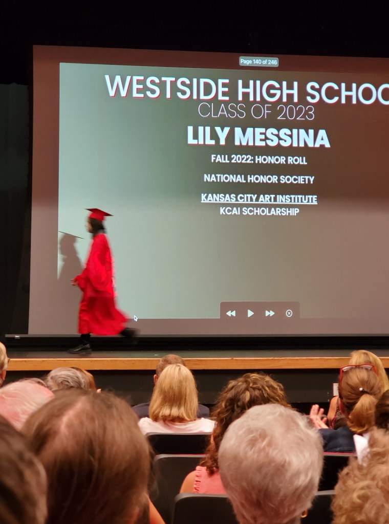 We then moved on to the scholarship and honors night. Lily was invited to attend because she has a scholarship to KCAI. She was also on the honor roll for the fall of her senior year. She was NOT however, in National Honor Society. She was pretty impressed that someone at the school thought she was smart enough to give her that honor on her slide show on stage!