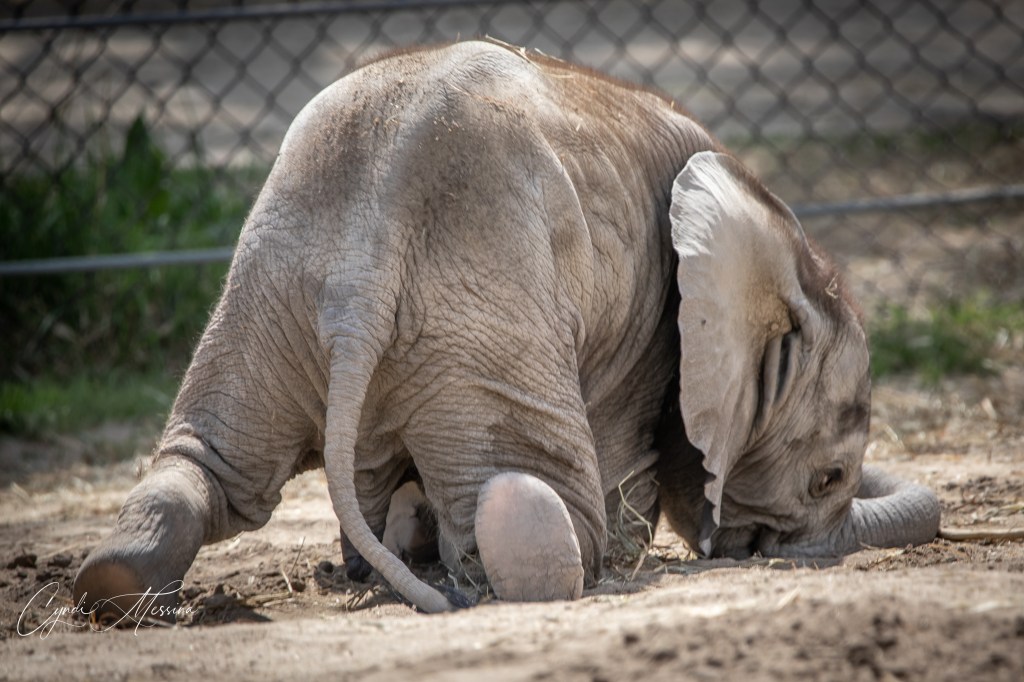 Okay, so I have been married for nearly 32 years….so I know that I have been in love with Rich for a long time. I have three wonderful children and one daughter-in-law who I know I love. I even have a dog who has my undying love for his unconditional love for me. BUT….there is this new little guy at the zoo that makes my heart swell…and his name is Mopani. He was born March 2nd and he is adorable! His mom, Lolly, is one of the most beautiful African elephants I have ever seen. Mopani has a half brother and sister who are 14 months older than him. I thought they looked little. He plays the role of little brother so well that I find myself in fits of laughter at their antics together. He wants to be with the big kids and he isn’t always welcome yet by his half siblings. Mopani does have another half sibling due at the end of summer…so he won’t be the baby for long. There is yet another elephant calf due in the spring of 2024. I may need to plan a trip back to see 5 baby elephants together. Elephants are a matriarchal society, and the moms and babies often hang out together, along with the herd matriarch and her daughter, who are both the pregnant ones. Callee, the bull elephant that has fathered all of these baby elephants, was recently transferred to the Sedgwick County Zoo in Wichita, KS, where I have visited this year. Love that zoo! They hope that he will continue to grow their herd as he did here in Omaha. The zoologists mentioned that this is how it works in the wild…bachelor bull elephants have a herd of their own and tend to move on to another herd of female elephants after a time. Hopefully this sweet boy will be able to do his magic in Kansas as well. Anyhow, I took some photos of my newest love, Mopani, along with Sonny, his brother, and Eugenia, his sister. I got a few photos of the cheetahs and then a lioness who was hysterical snoozing in the sun on her back. Then a few close ups of the takin (the yak looking animal). There are even a few shots of a rabbit in my neighbor’s yard. He isn’t big on mowing and enjoys dandelions….and so does the little rabbit who stopped in the munch on them. Anyhow, if you aren’t infatuated with baby elephants, this may not be your post. You have been forewarned. :o)