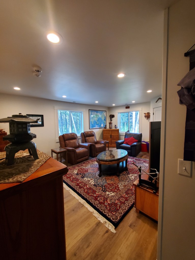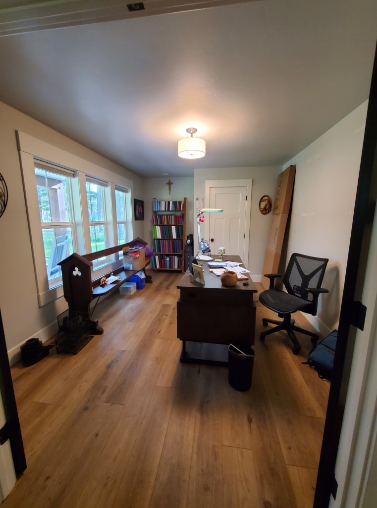 Sorry for the crazy order in which I posted this…but it is a lovely house and we love it. Now if we could only CLOSE on it! I refuse to name on my blog who the company is until it is all said and done, but man, I do NOT recommend them! We are still waiting for our mattress to arrive, so currently we are using Lily’s queen mattress on our king size platform. It is a little hinky getting in and out of bed with 8 inches or so of extra wood on either side of the bed, but it will work until we get back. It should be in by then. Rich doesn’t have a desk yet. We have looked at the furniture stores here….all three of them. We have traveled around the Flathead Valley looking at desks on Craig’s list. Still no joy. We will get it figured out. Unfortunately, there is only the two of us and it is supposed to go upstairs, so it can’t be a beast of a desk.