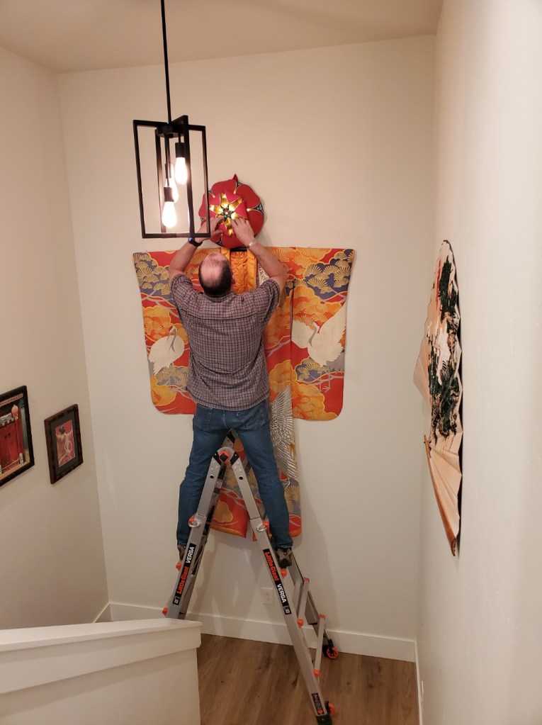 Alright…we have been here 10 days and we leave to head back to Omaha tomorrow morning. EVERYONE has been asking for photos of the house. We have been working really hard to get all the boxes unpacked and put away most of the things. The three bedrooms upstairs are still a work in progress, but all the other living spaces are set up. Thanks to Rich, we even have things on the walls. So here are a few photos of the house….inside and out.