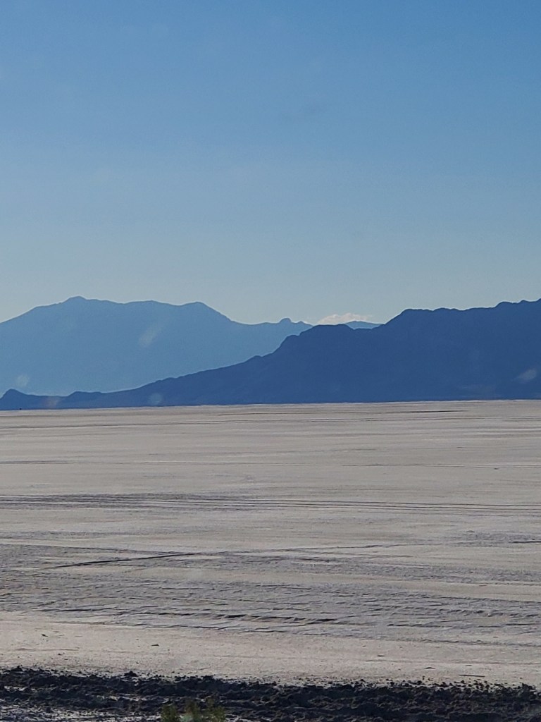 Here is the final shot with Tim and the Stanford women’s basketball team during one of their summer lifts. Several are missing because they are playing with their country’s national team during summer play. Also a view of the desert as we drove across the country….and then the Utah salt flats.