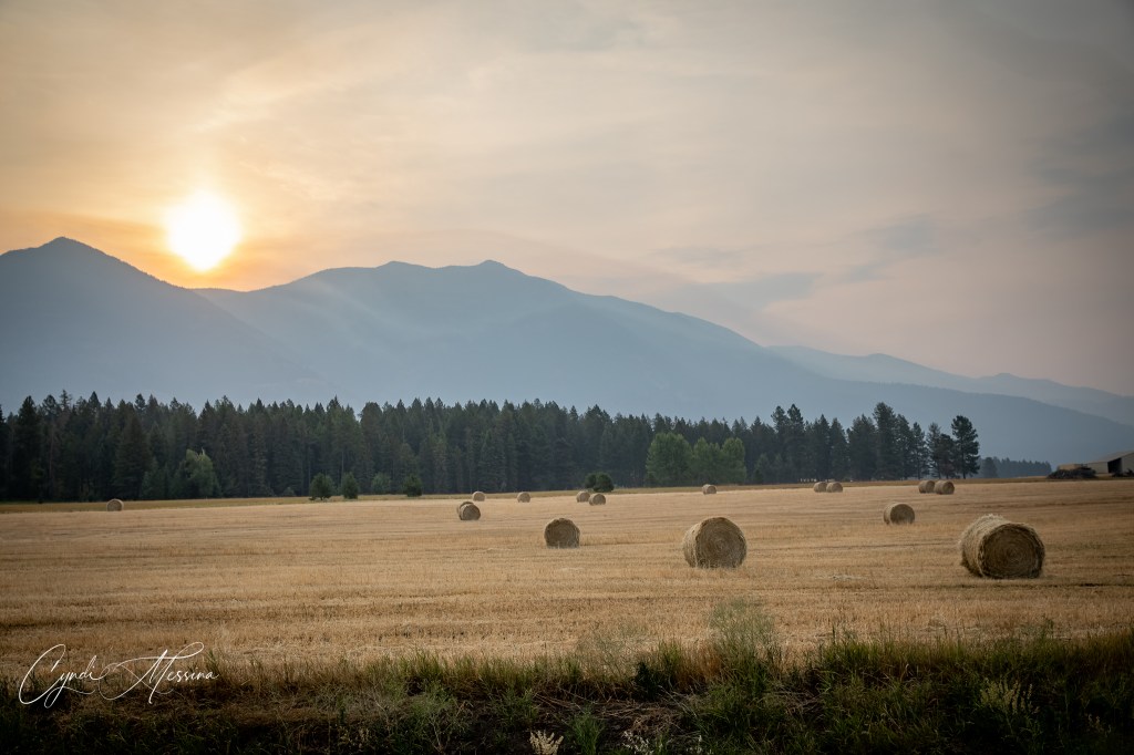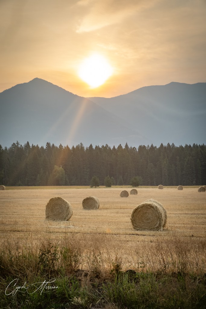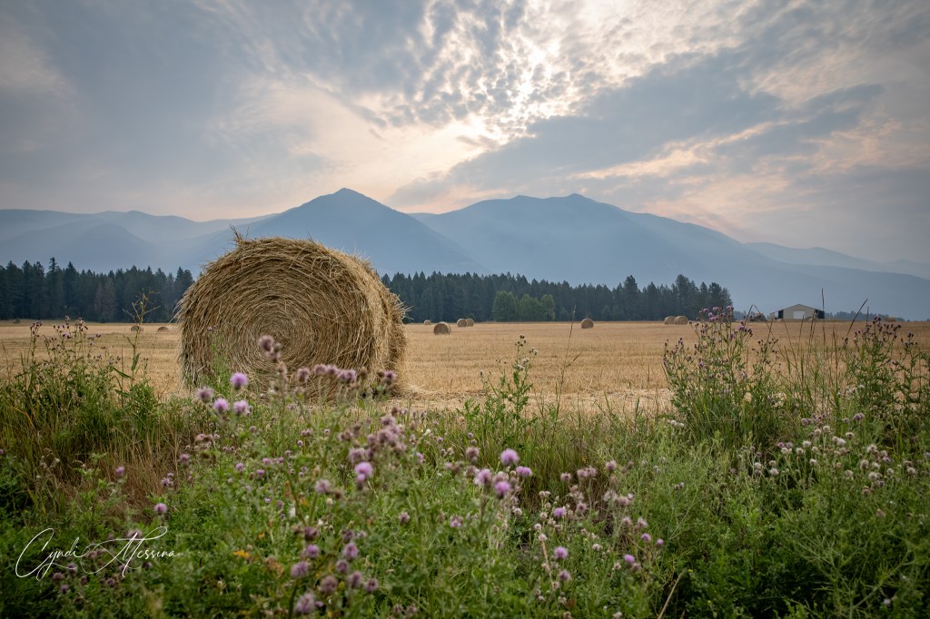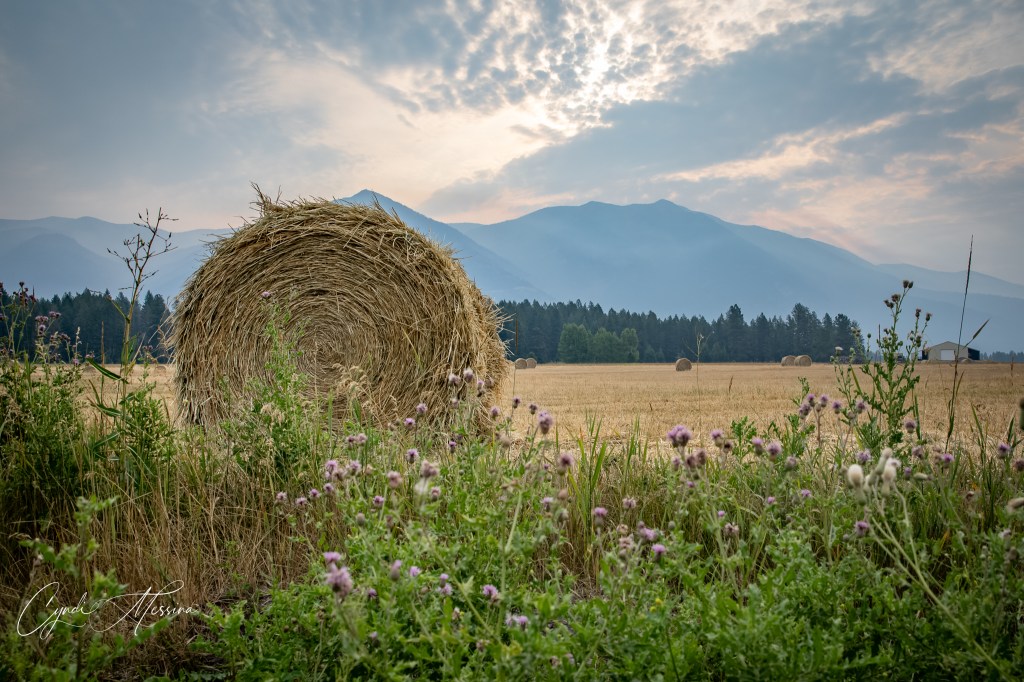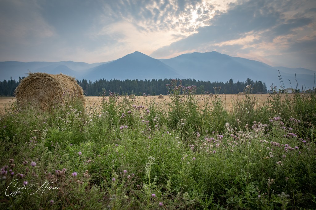Last weekend I got up early and went down the road to take some sunrise photos. I had several things that I loved in these photos….haybales….mountains….dramatic clouds (and some smoke as well-not my favorite but dramatic nonetheless), and purple flowers. How can you go wrong when you mix those things together with a rising sun? You can’t! God’s glory just smacks you in the face!