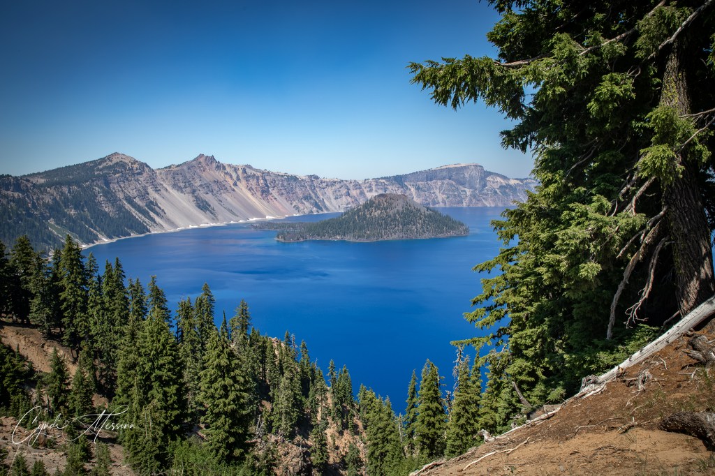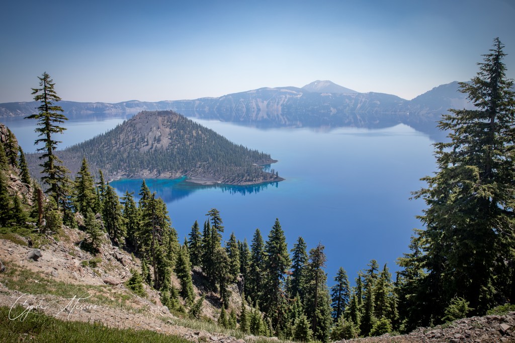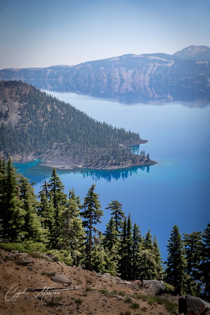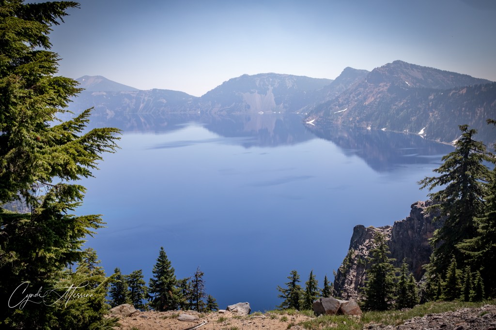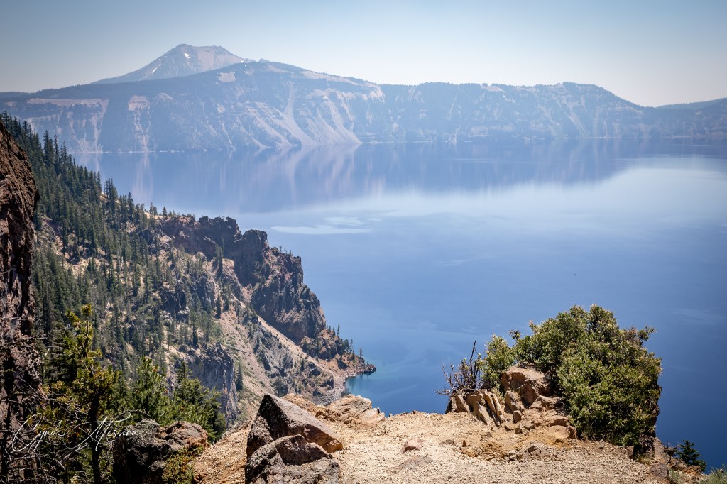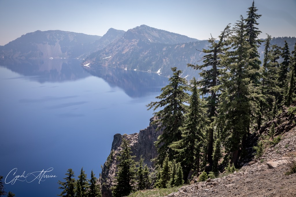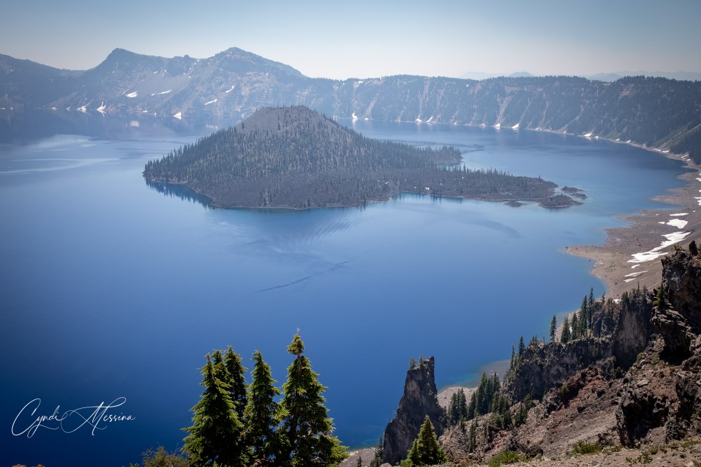 When Tim, Rich, and I went to visit Crater Lake National Park in March, we couldn’t really see anything. There was 130% of the annual snowfall on the ground at the time…over 13 feet of snow. We went snowshoeing and had a blast, but didn’t get anywhere near the rim or the lake. While I was driving home to Montana from San Diego, I decided to take a brief break and do a 2 hour trolley tour around the rim and see what we missed in the early spring. Even though there was a lot of smoke in the air from wild fires in western Oregon, I thought it was absolutely mesmerizingly beautiful.