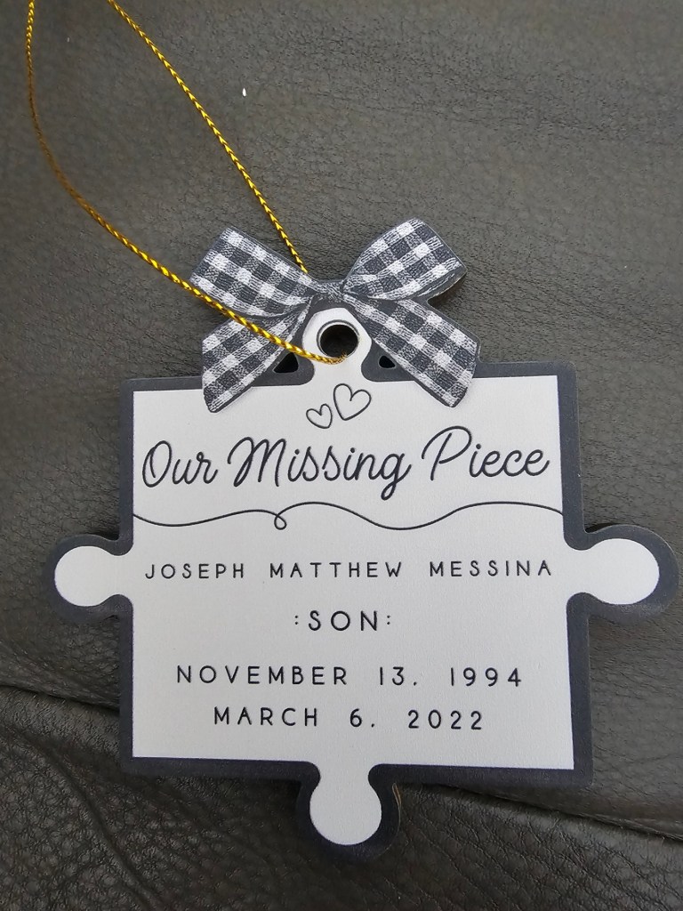 This year’s addition. It just seemed to fit. We have a firefighter one, an army one, and a silver heart with his thumbprint on it.