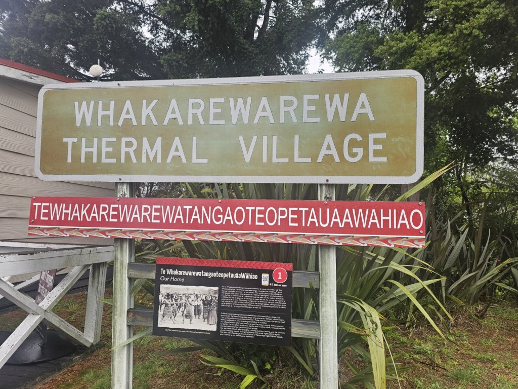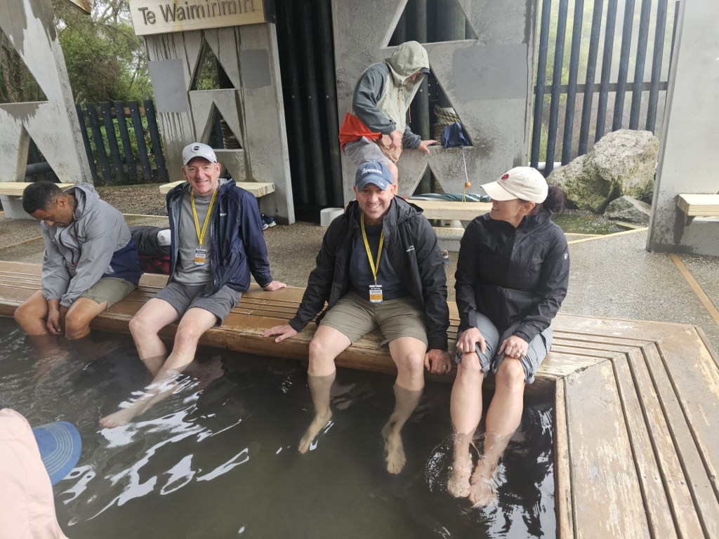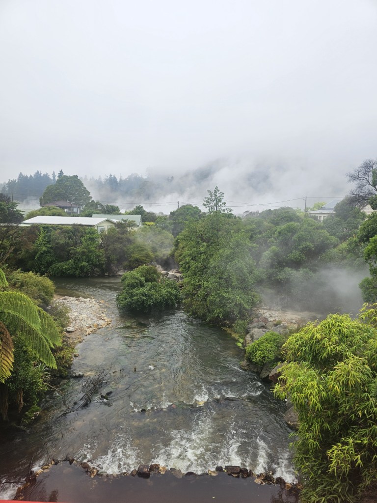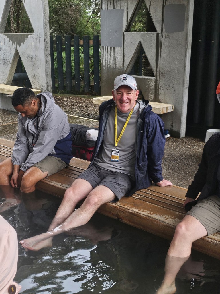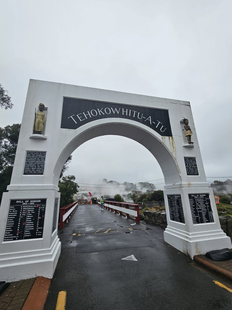 Our first stop of the day was at Kuirau Park. This area of Rotorua is where there is a lot of geothermal activity – lots of boiling mud pits and steaming lakes. There is a public park where you can walk around on a board walk amongst the steam and even a place for you to sit down and put your feet and calves into the warm water. I sat pretty close to an inlet pipe which was allowing the natural hot water into the foot pool. I am pretty sensitive on my hands and feet due to chemotherapy in the past. It was pretty hot for me! Rich traded spots with me and it was much better. He felt it was pretty hot too. We sat for about 10-15 minutes and I was amazed at how good my feet and lower legs felt the rest of the day. We then also stopped at another geothermal park called Sulphur Point on the edge of Lake Rotorua. Rotorua is known for its sulphur smell. Tauranga is the port we docked in and Rotorua is the nearby city. Lake Rotorua is a caldera filled with water. The volcano erupted 250,000 years ago. There are 10 lakes in this area caused by volcanoes. There are currently only 2 active volcanoes in all of New Zealand. The last eruption was on White Island in 2019 and 21 people were killed. There are lots of earthquakes in New Zealand. The South Island, especially, has some major fault lines running through it. There are an average of 14-15,000 earthquakes per year in New Zealand. Most are not even noticed. During COVID, New Zealand had one of the lowest mortality rates in the world. They closed their borders for a year. This was horrible on their economy because they deal mostly in tourism.