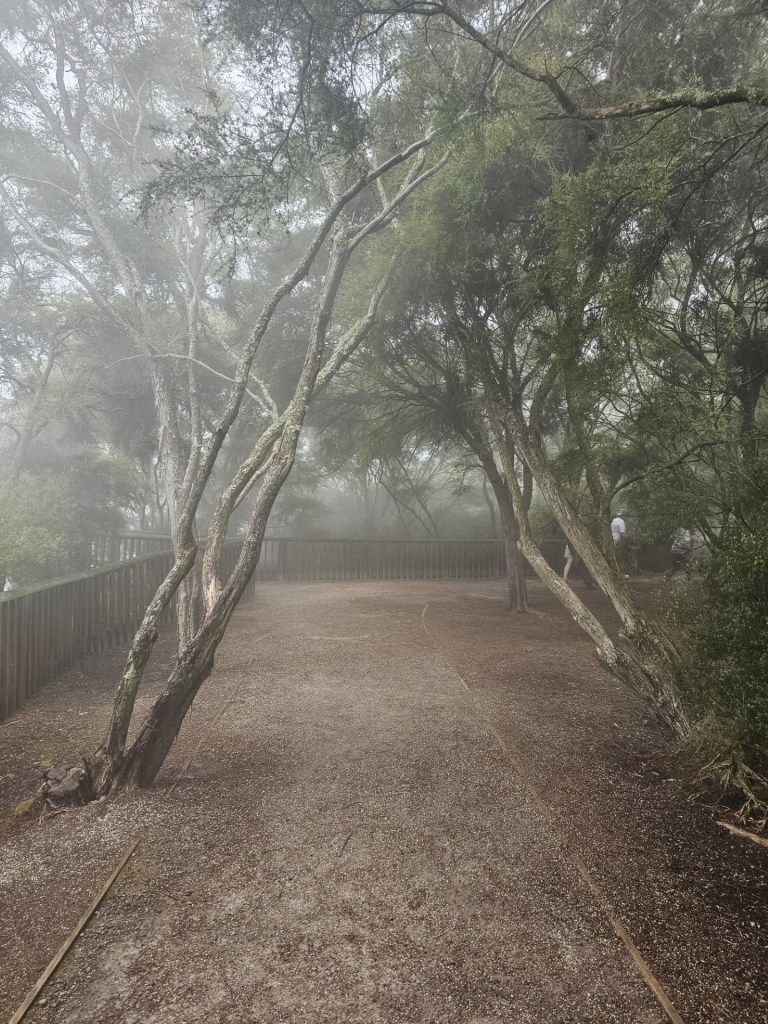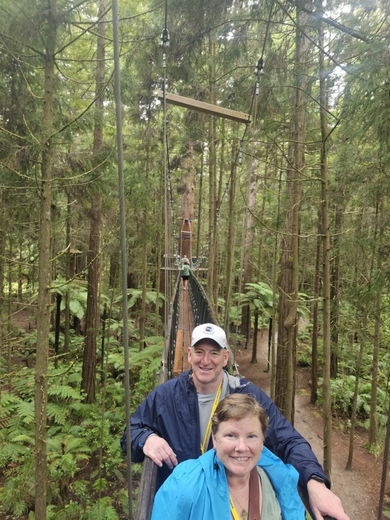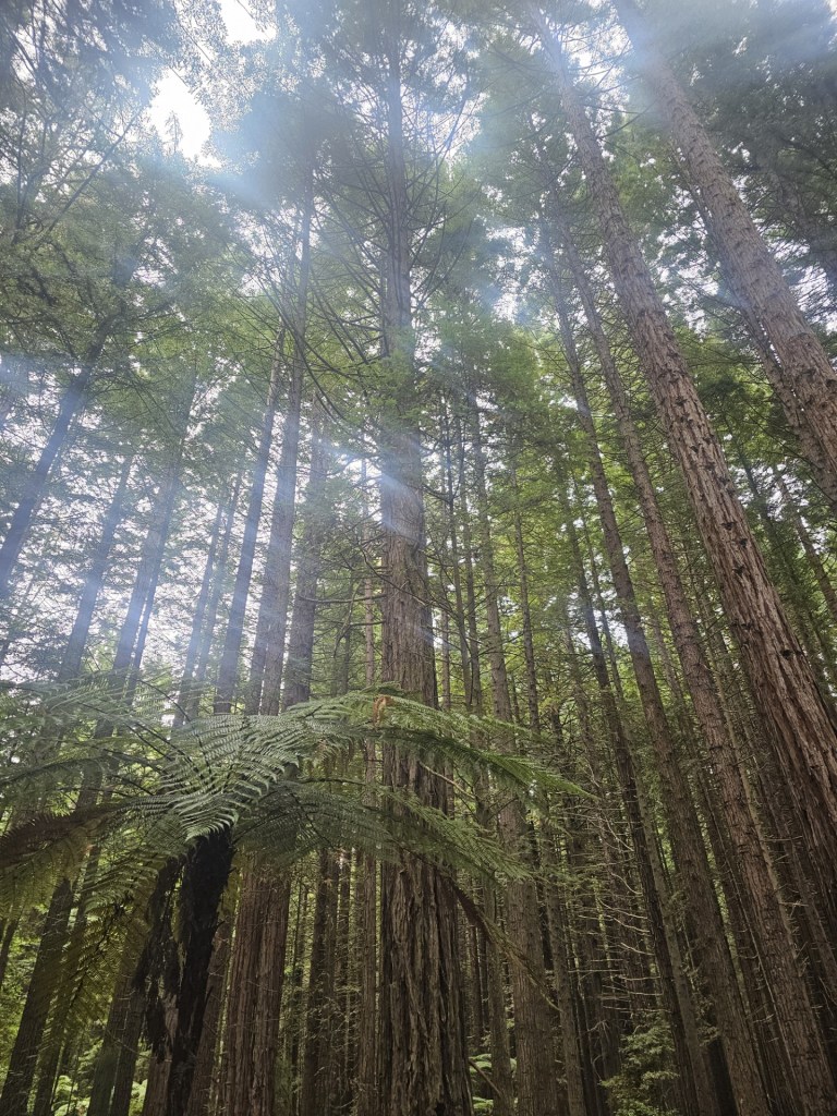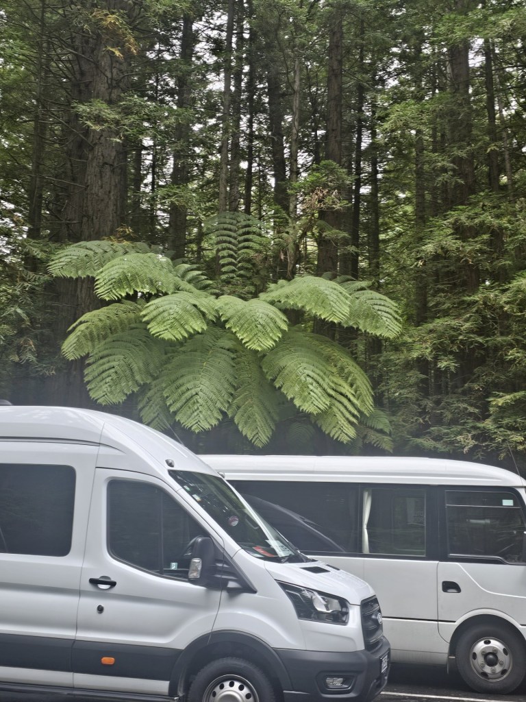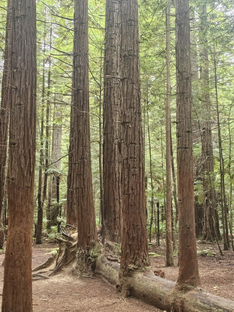 Richie was a principal, so we got some low down on education in New Zealand. Kids start school on their 5th birthday. Literally on the day they turn 5. That makes it a hot mess for that level teacher – having kids that have been in school for months with kids who have been there a day. Ideally, they will go to preschool first, to give them some sort of idea of what school is about. They have preschool available for 3 and 4 year olds for 20 hours a week. If you want them to go longer, the extra time will cost you $4/hr. Primary school is age 5 to 11/12 years old. There are no private primary schools, they are all state funded. Secondary schools are about 5 years and you can go to private or public schools. There are no private secondary (high schools) in Tauranga. Private schools are expensive. They average $30,000/yr and $12,000 a year additional for boarding. Going to the other end of the spectrum, when a New Zealander turns 65 years old, they are automatically put on pension. It is not dependent on the money you earned in your lifetime. Everyone gets the same pension. Each person would get approximately $830 every 2 weeks. You can choose to still work and also get your universal pension. Everyone pays into the ACC tax, which will pay out 80% of your medical bills. All in all, a pretty sound system. We had a really good time traveling through the area and walking through the giant redwoods.