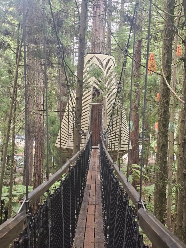After lunch, we went to the Redwoods – the Whakarewarewa Forest. They have amazing redwood trees (from America) that have grown into giants. They were planted 70 years ago on 3.5 thousand hectares. They have walk ways higher up into the trees so you can see the fern trees from the top and enjoy being high in the air. It was a lot of fun walking the course! There was also an area where caves were set aside and you could go inside and see the famous glow worms. (which are really larvae). It was so interesting!
