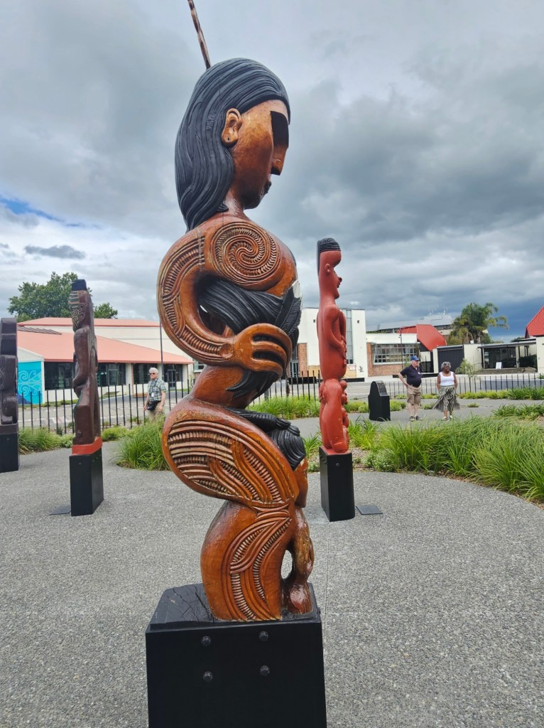 Our next stop was in Napier. In 1931 they had a huge earthquake here. They gained 40 square kilometers of seabed that became part of the land during that earthquake. It reshaped the map of land of the North Island of New Zealand. What was once a lagoon was lifted up over 2.7 meters and became dry land. It is now the site for the local airport. It destroyed the city and when the town decided to rebuild, they rebuilt the entire city in art deco (like 1920’s Paris). They built 112 buildings in 2 years. This city is considered the Art Deco capital of the world. The art deco trust was founded in 1985 and many of the buildings are on their register. They also have a vintage car tour where you can be driven around in vintage car of that art deco era. They had them parked next to our ship when we returned for the day. They have a wonderful national aquarium and a wonderful botanical garden in Napier, but those were not one of our stops. If you have ever been to Copenhagen and seen the statue of the little mermaid on coastline, they have one similar not far from the port which the locals call the Pania of the Reef.