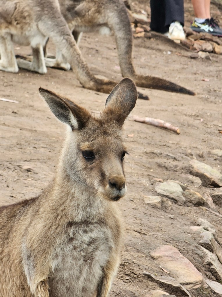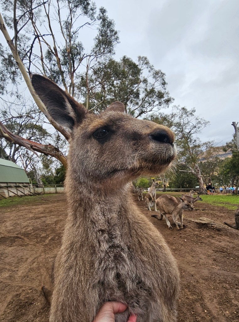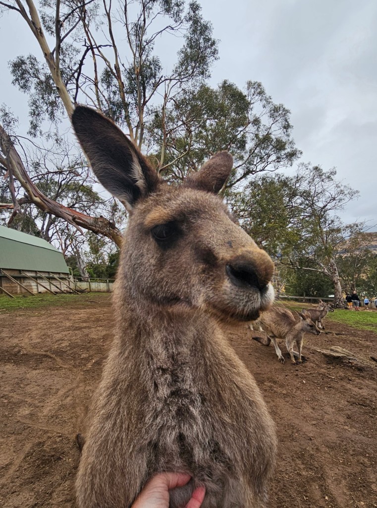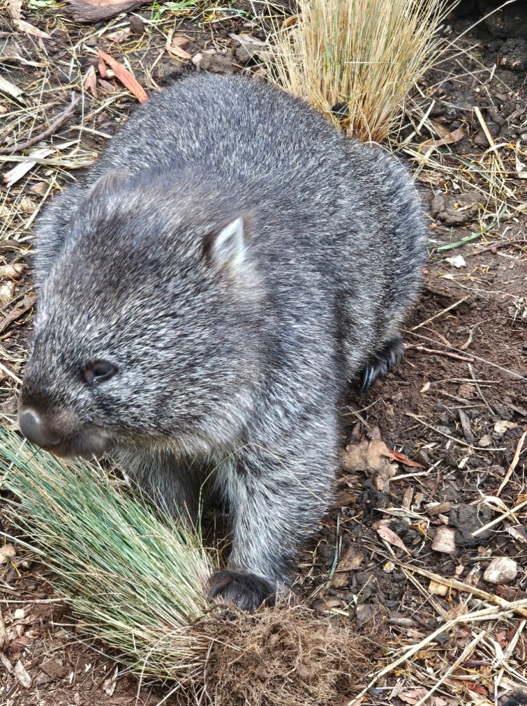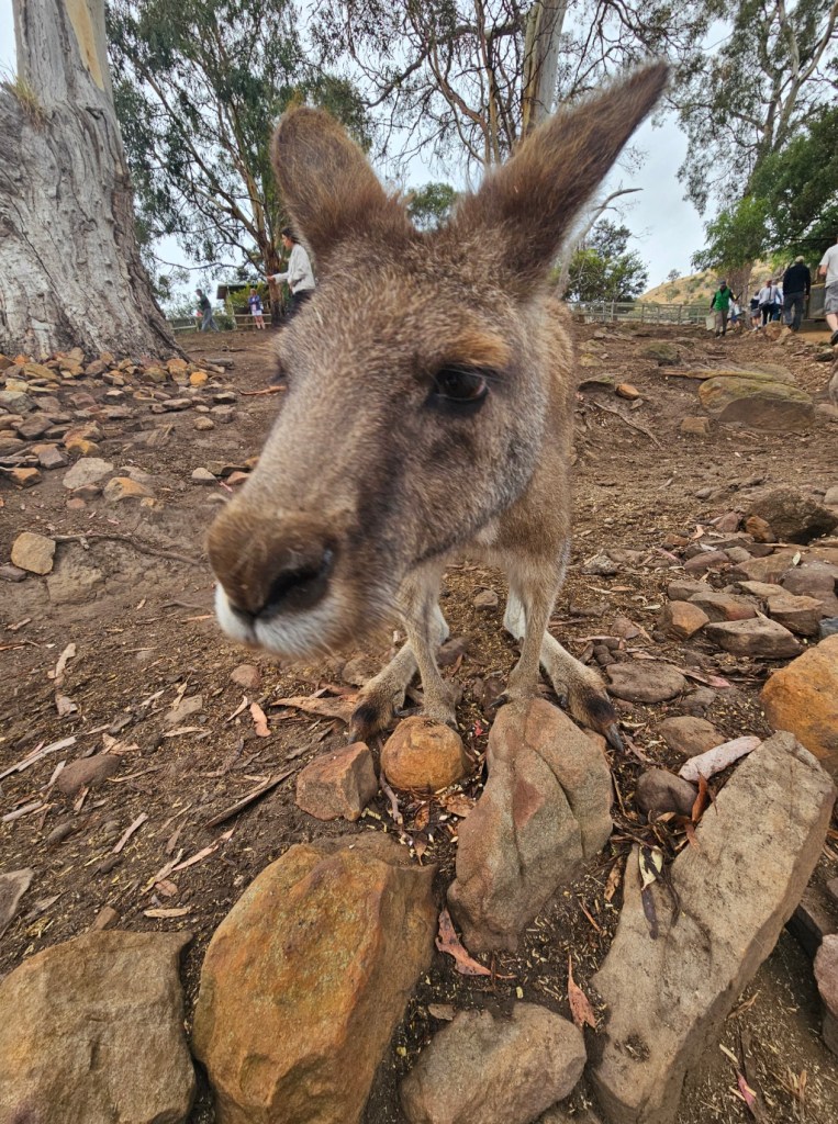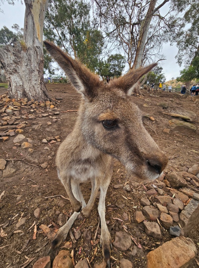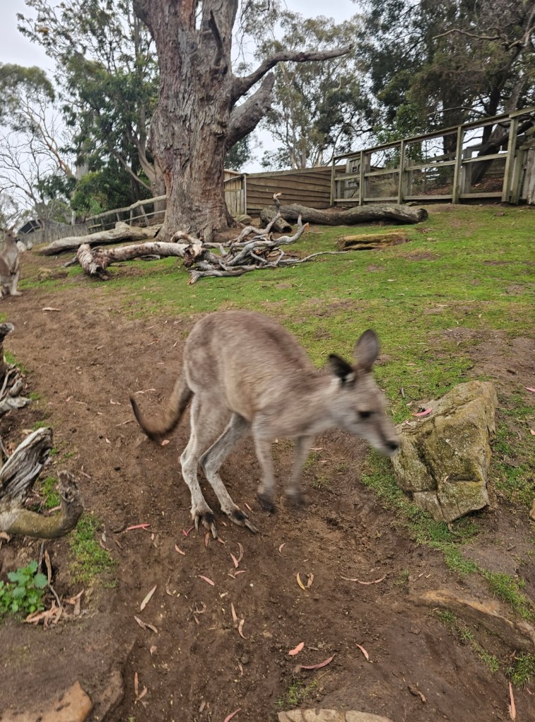 Our first stop was at Bonorong Reserve. Bonorong has 400 volunteers statewide who save animals injured or abandoned. Bonorong is an Aboriginal word for sanctuary. There were kangaroos hopping around everywhere for you to feed and to scratch their chest (they love that because they can’t do it on their own). The back foot of the kangaroo has a long nail that looks like it could disembowel you if they tried hard enough. Wombats with their steel plates in their behinds behind their fur to protect them from predators. Tasmanian devils that look like cute overgrown rodents. They have the strongest jaw strength per pound of any animal in the world. They lost over 70% of the Tasmanian devils in the last 10 years due to a contagious deadly facial tumor disease. They isolated healthy Tasmanian devils to try to build up the population again. Tasmanian devils are marsupials and give birth to 40 young at a time – all about the size of a grain of rice. They only have 4 teats though, so only the four strongest young, able to latch on, are able to survive and grow. The rest are eaten by mom. Tasmanian devils are not predators. They are scavengers. They are the Dyson deluxe of the Tasmanian animal world. They have a great sense of smell and are nocturnal. They eat …. the bones, the teeth, the fur, everything. Many think of the Kookaburra bird when they think of Australia, but they are not native to Australia. They are meat eaters and will eat baby koalas. The three most deadly snakes in the world are found in Australia. In Tasmania, there is also an ant that can be deadly. This was not comforting. There is also the echidna, which looks like a porcupine/anteater cross with a pouch.