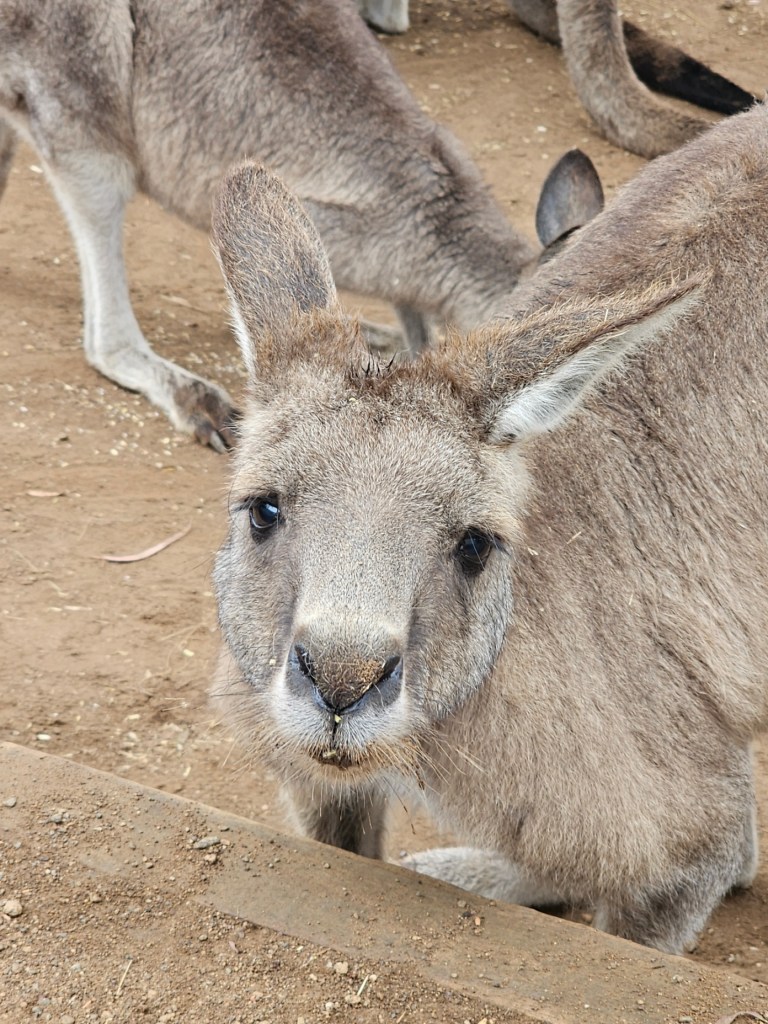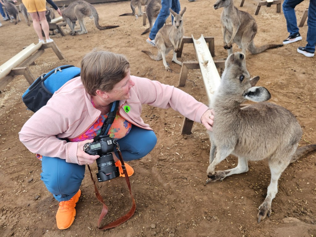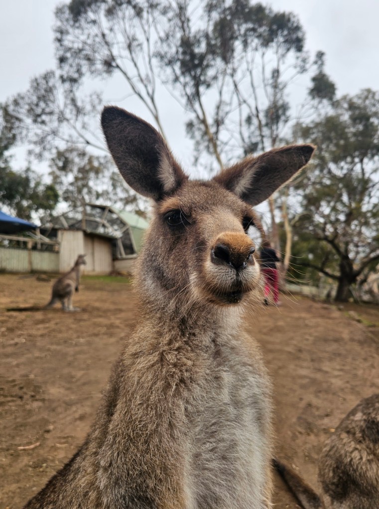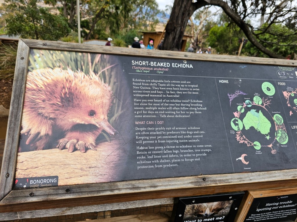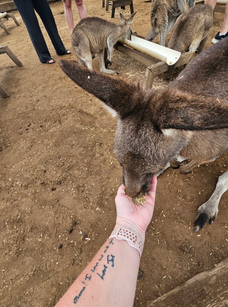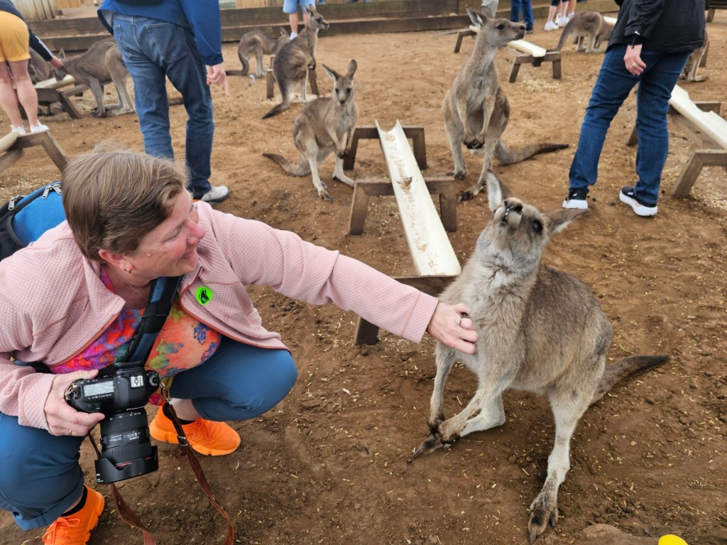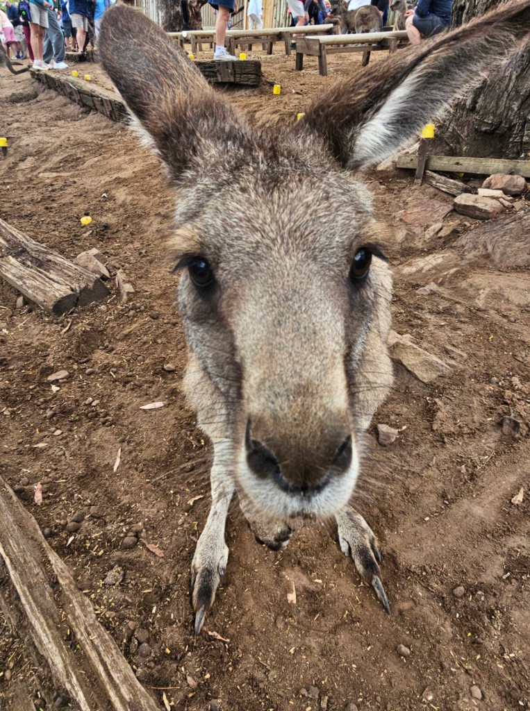 Our first stop was at Bonorong Reserve. Bonorong has 400 volunteers statewide who save animals injured or abandoned. Bonorong is an Aboriginal word for sanctuary. There were kangaroos hopping around everywhere for you to feed and to scratch their chest (they love that because they can’t do it on their own). The back foot of the kangaroo has a long nail that looks like it could disembowel you if they tried hard enough. Wombats with their steel plates in their behinds behind their fur to protect them from predators. Tasmanian devils that look like cute overgrown rodents. They have the strongest jaw strength per pound of any animal in the world. They lost over 70% of the Tasmanian devils in the last 10 years due to a contagious deadly facial tumor disease. They isolated healthy Tasmanian devils to try to build up the population again. Tasmanian devils are marsupials and give birth to 40 young at a time – all about the size of a grain of rice. They only have 4 teats though, so only the four strongest young, able to latch on, are able to survive and grow. The rest are eaten by mom. Tasmanian devils are not predators. They are scavengers. They are the Dyson deluxe of the Tasmanian animal world. They have a great sense of smell and are nocturnal. They eat …. the bones, the teeth, the fur, everything. Many think of the Kookaburra bird when they think of Australia, but they are not native to Australia. They are meat eaters and will eat baby koalas. The three most deadly snakes in the world are found in Australia. In Tasmania, there is also an ant that can be deadly. This was not comforting. There is also the echidna, which looks like a porcupine/anteater cross with a pouch.