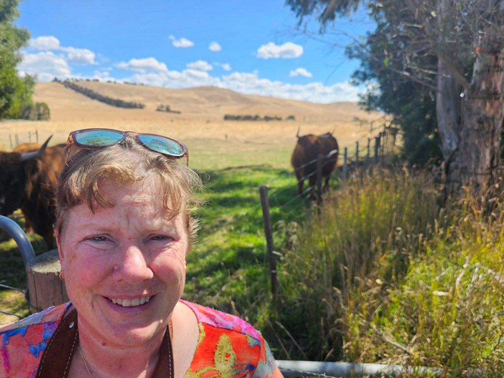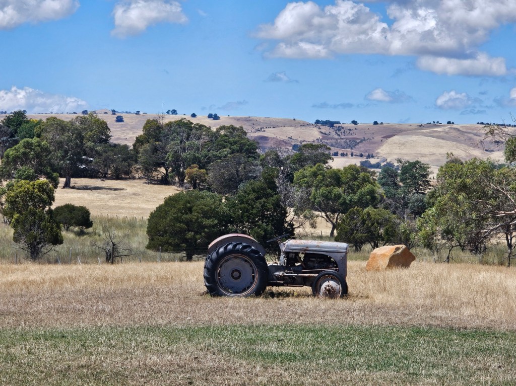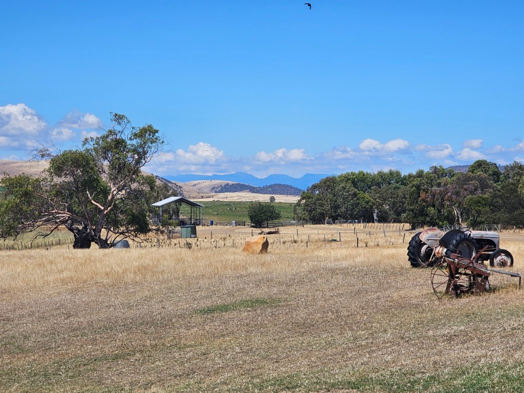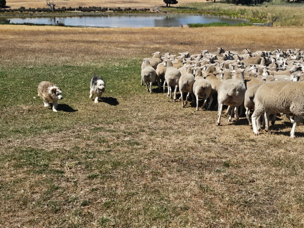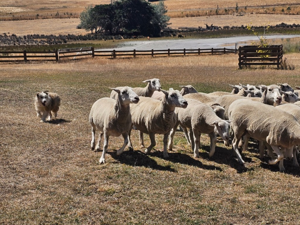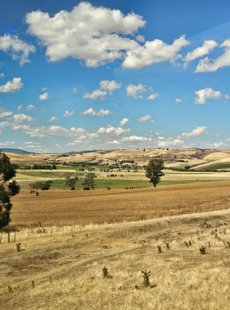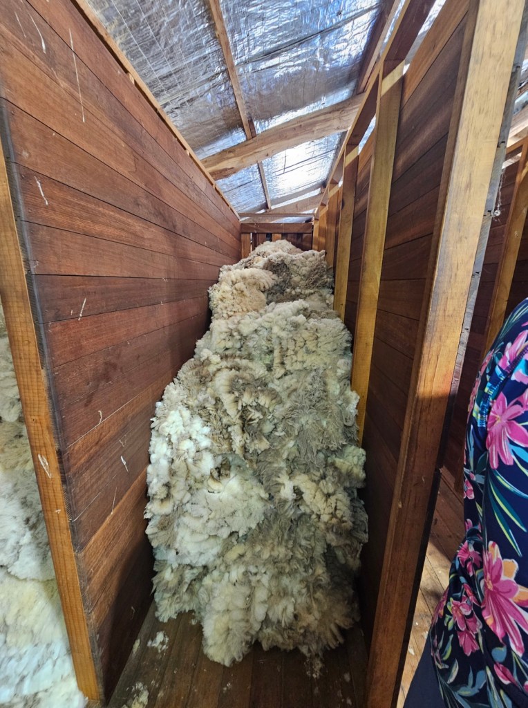 The next place we stopped was really fun: Curringa Family Farms. Tim is the man in charge right now of the working sheep farm and hundreds of acres of other crops. He is the 6th generation on this farm. His son Jacques, is now working the farm as well as the 7th generation. We watched a sheep shearing demonstration and a sheep herding demonstration with their Smithfield/border collie mix dogs. Some of their crops are: pyrethrin (crops that are used to make insecticides) onions, poppies, carrots, cabbages. They have 100 hives that come yearly from a professional pollenating service. They breed vegetables and then sell the seeds. They handpick 1 million seeds for their onions and export them globally. Tim’s wife, Jane, opened farm stay cottages on the farm in 1984 and has won a lot of awards. They shear their sheep in Dec and they are able to do the whole herd in 3 days, with 4 shearers working all day. Each shearer is about to shear 200 sheep each day…so 800 total a day. Most of their sheep are not grown for wool but for meat. They still need to be sheared and the wool gets used as stuffing in pillows and coats. They are in an area called fire storm alley. The area is very fire prone and is a high risk area. If you want to read more about this farm, the website is Curringafarm.com. Tim greeted us on the bus and talked to us about his farm and what he does. He manned the huge grill and made steaks for all of us, which were great. We had a really nice time spending time on his farm.