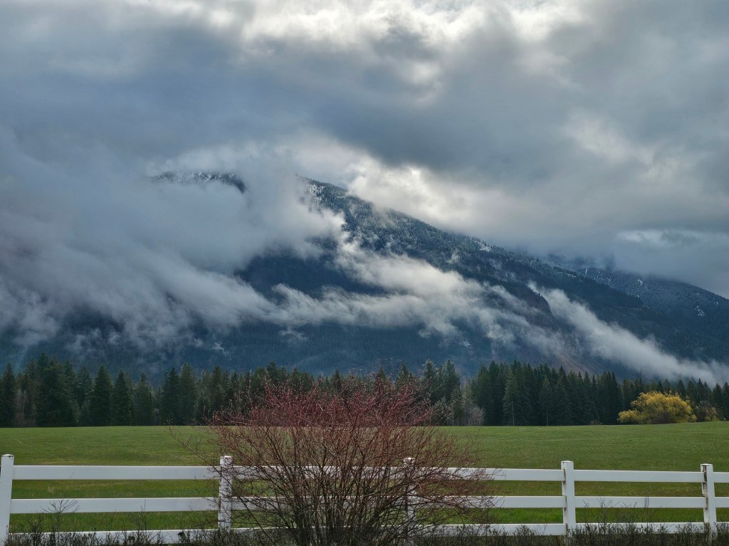 I always need to start off with a smile…I had to pull down a dirt road to take this picture just a few miles from my house on the way to meet the radiologist today. There were lots of low-lying clouds by the mountains but there was a ray of sunlight trying so hard to break through. These are Joe signs for me…bright rays of sunlight coming through clouds. It is hard to see, but there was a solid ray of sun peeking through and shining on the snowy mountain.