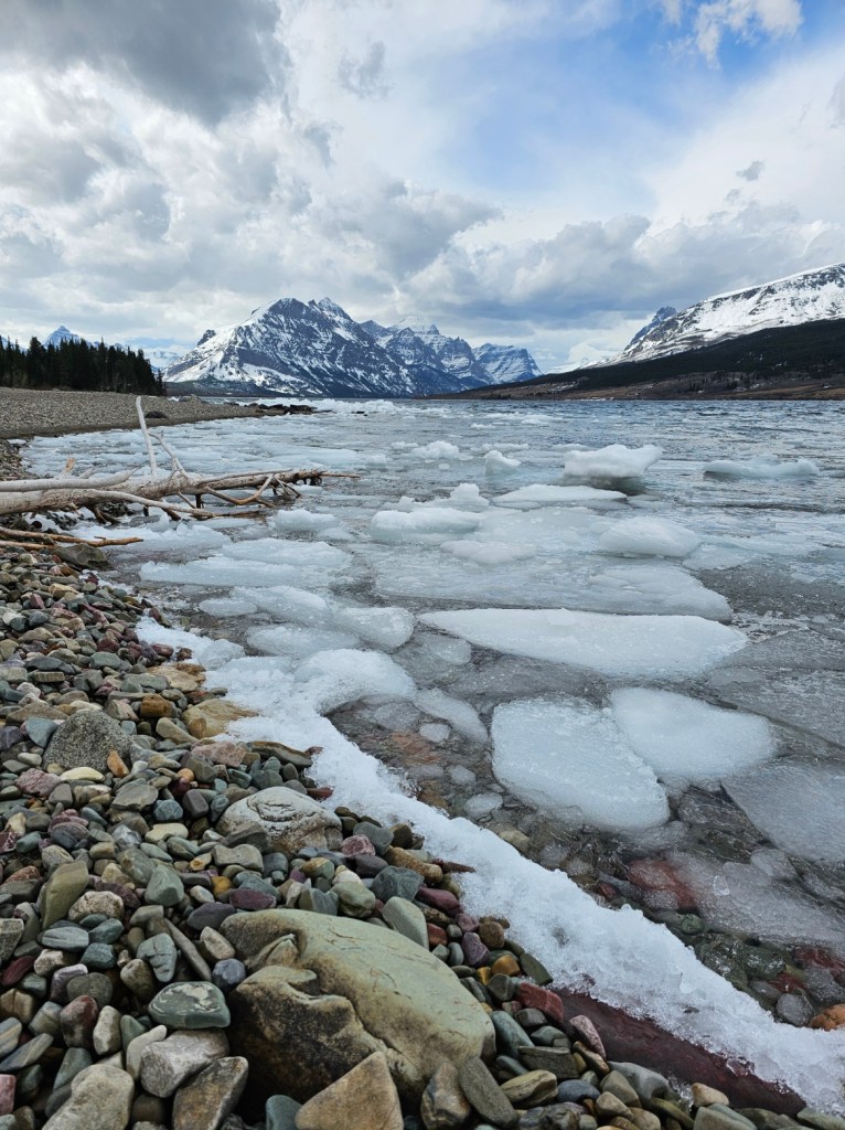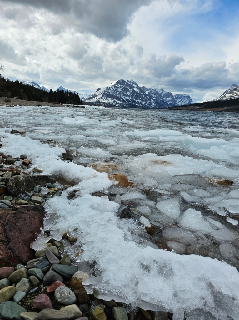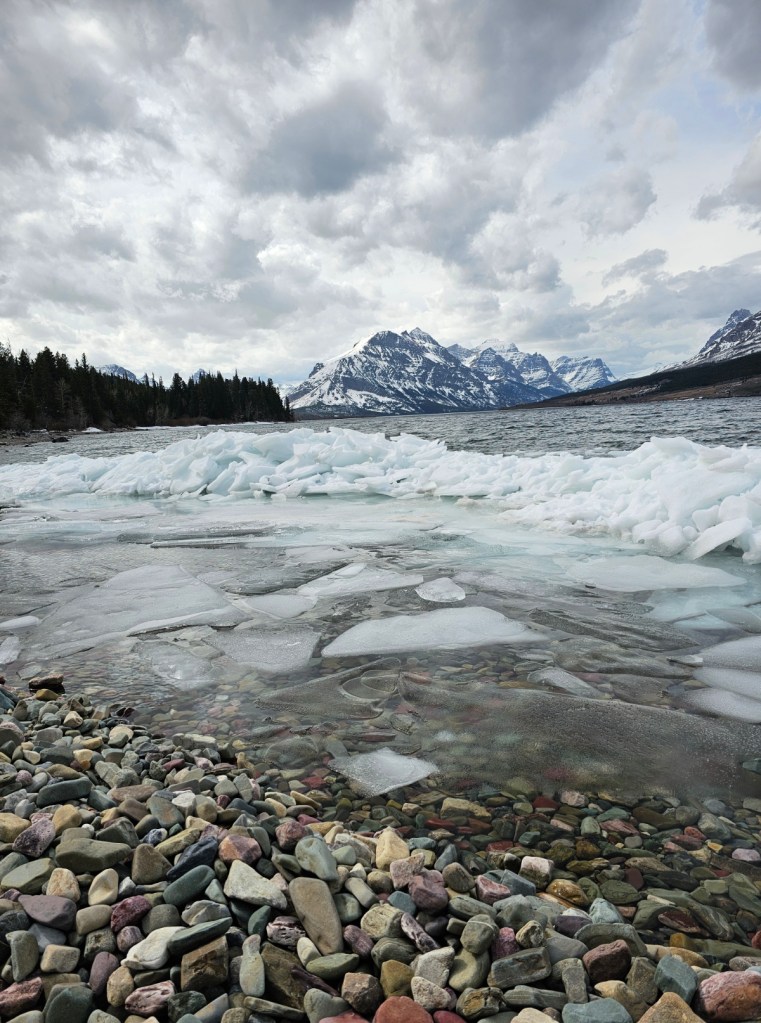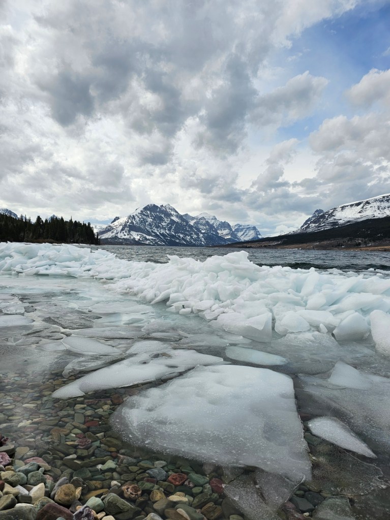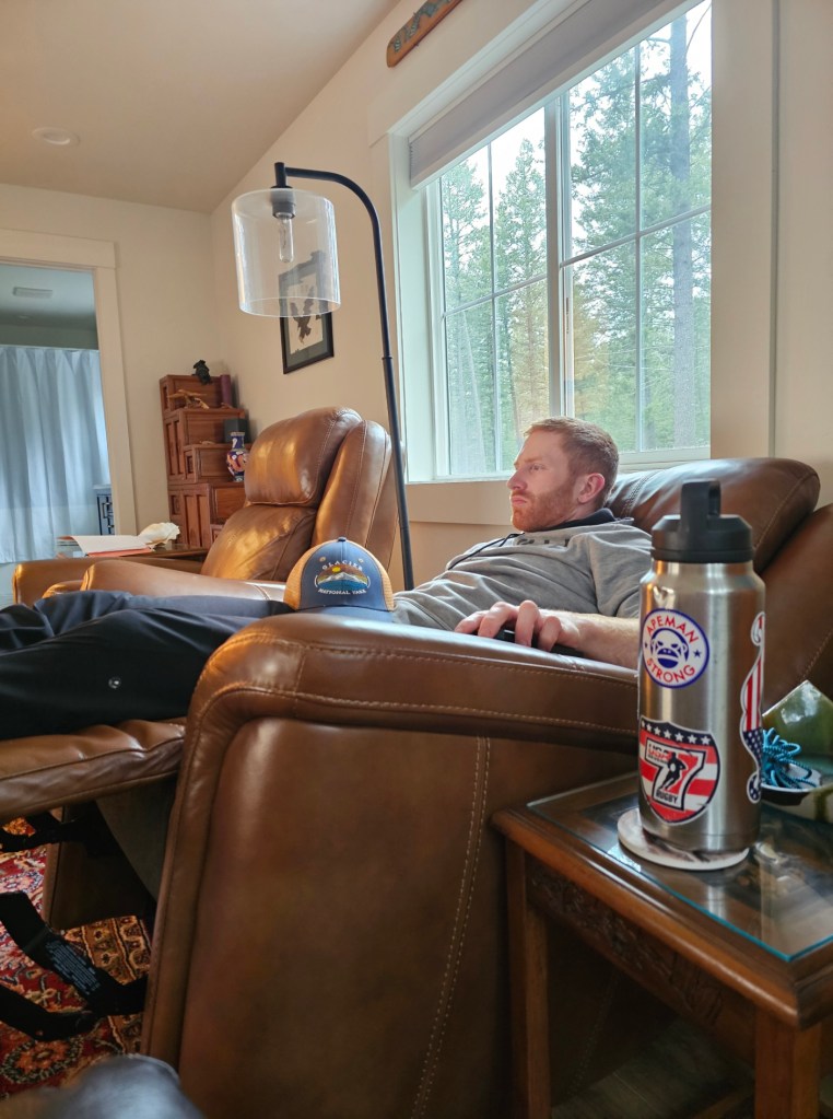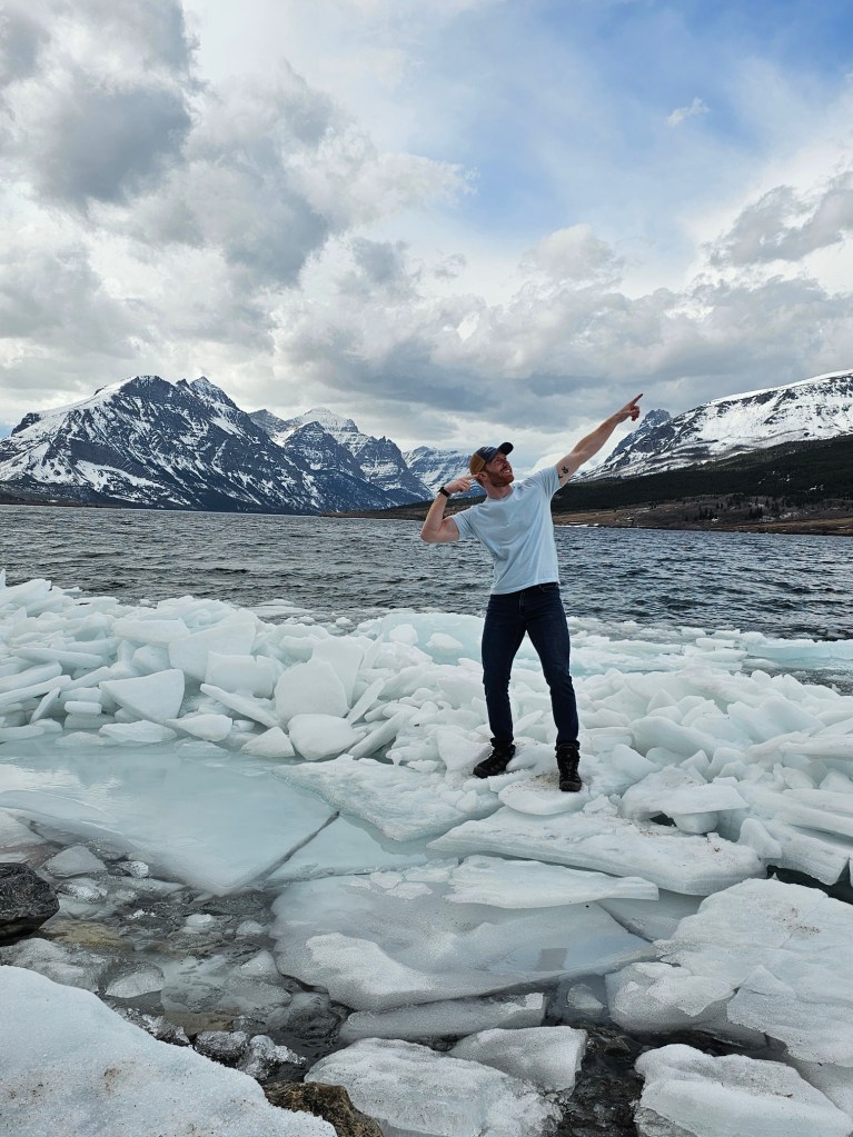 With Tim’s basketball season over, he was free to come and spend a week with us in Montana. Our week together consisted of 5 games of Settlers of Catan, a pretty difficult 1000-piece puzzle, a day of skiing in Whitefish, a trip to hike on the east side of Glacier National Park, homemade meals every day, and LOTS of NCAA basketball! It is so much fun to watch NCAA basketball with Tim because he is in the business….he knows some of the coaches and some of the players. If he doesn’t know them personally, he knows about them and can impart tidbits of information that I wouldn’t have known. It makes watching the men’s and women’s tournament so much more fun than watching on my own. Tim gave me his Big West Championship shirt, which I will treasure. He assured me he got other swag and will get a ring, so he could let me have his shirt I saw him wear on TV when they won. We also used his young, strong body to help spread 13,000 lbs of river rock in the flower beds around our house. We got about 3/4 of it done with those 13,000 lbs. We did this once before in our house in Bellevue, Nebraska and it costs hundreds of dollars for less rock than we already used here. In Montana, home of the river rock, it cost $87! Can you believe that? Crazy, right? Rich and I will finish out the last couple of areas on our own when the weather warms up again. The weather was great while Tim was visiting. The day they went skiing, it hit nearly 70 in the valley. However, winter is going to return this week for a bit. Our snow is gone but the ground is pretty soft and wet still. Anyhow, as Tim wings his way back to San Diego, I wanted to share some photos of while he was here. It is always so awesome to have your adult kids visit, and so sad to see them leave again.